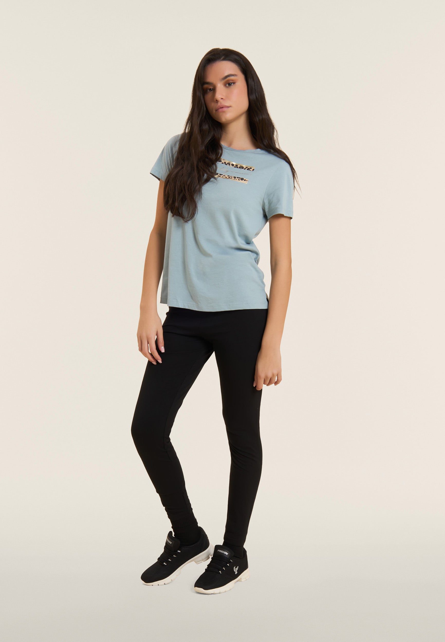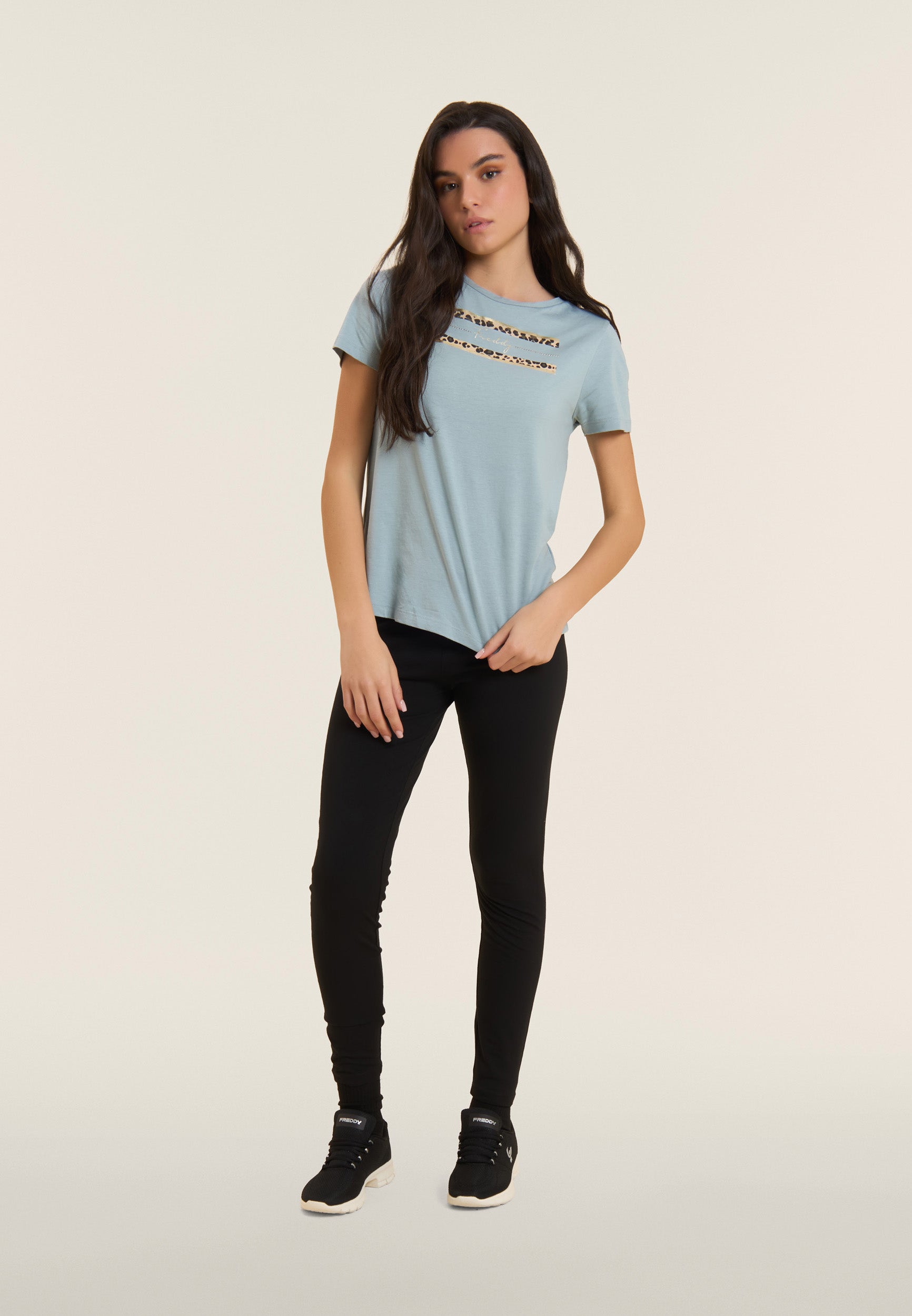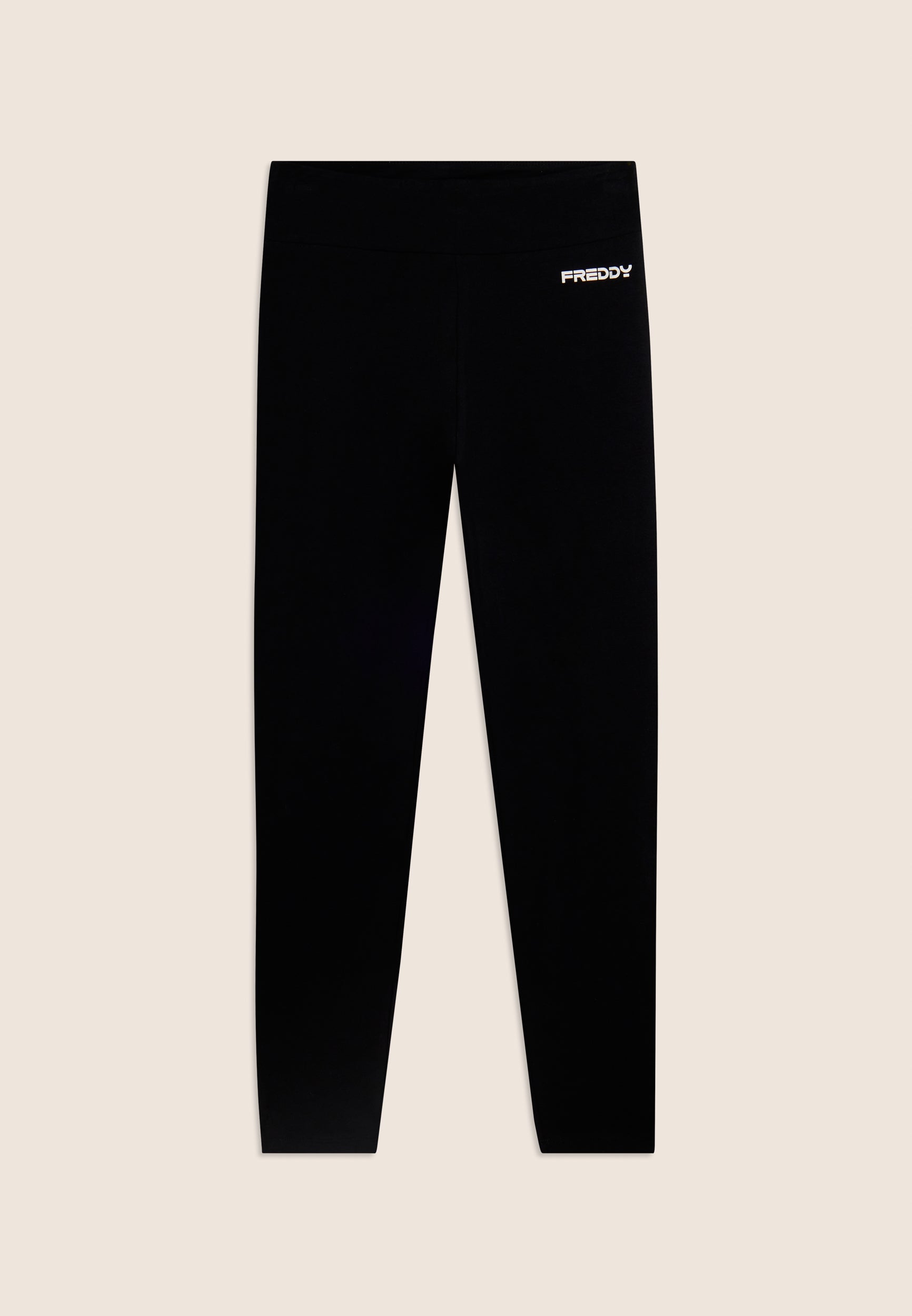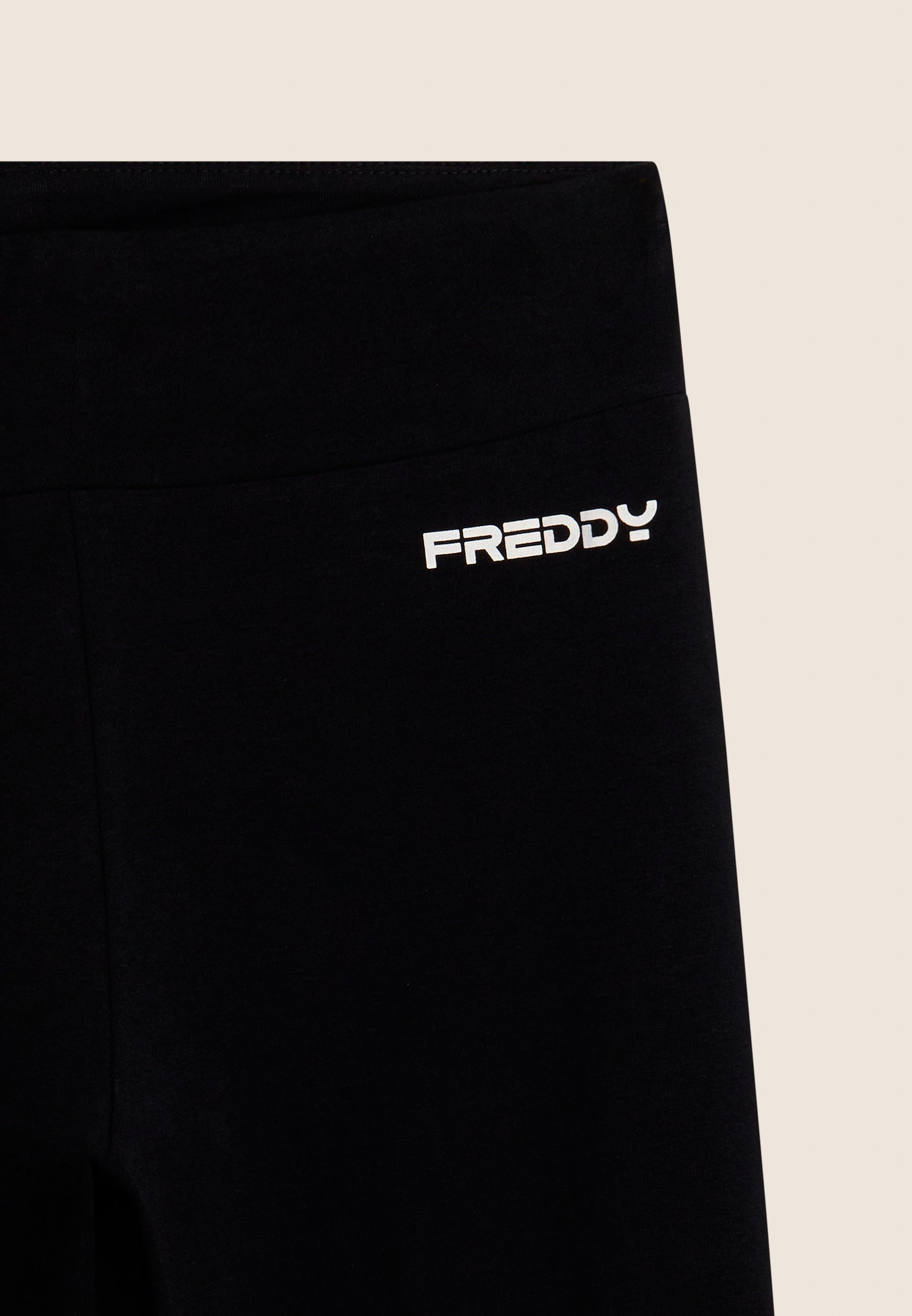 Eng anliegende und dynamische Leggings, perfekt für jede Art von Bewegung. Sie sind aus schwerem Baumwoll-Stretch-Jersey gefertigt und garantieren Passform und Komfort dank des hohen Taillenbund, die stützt, ohne einzuengen. Die 7/8-Länge macht sie ideal für Aktivitäten drinnen und draußen. Ein vertikaler MOV-Print mit Perlenverzierung sticht auf dem hinteren rechten Beinende hervor, während ein kleines FREDDY-Logo auf der vorderen linken Hüfte für einen unverwechselbaren Touch sorgt. Sie sind perfekt zum Trainieren oder Entspannen mit Stil.