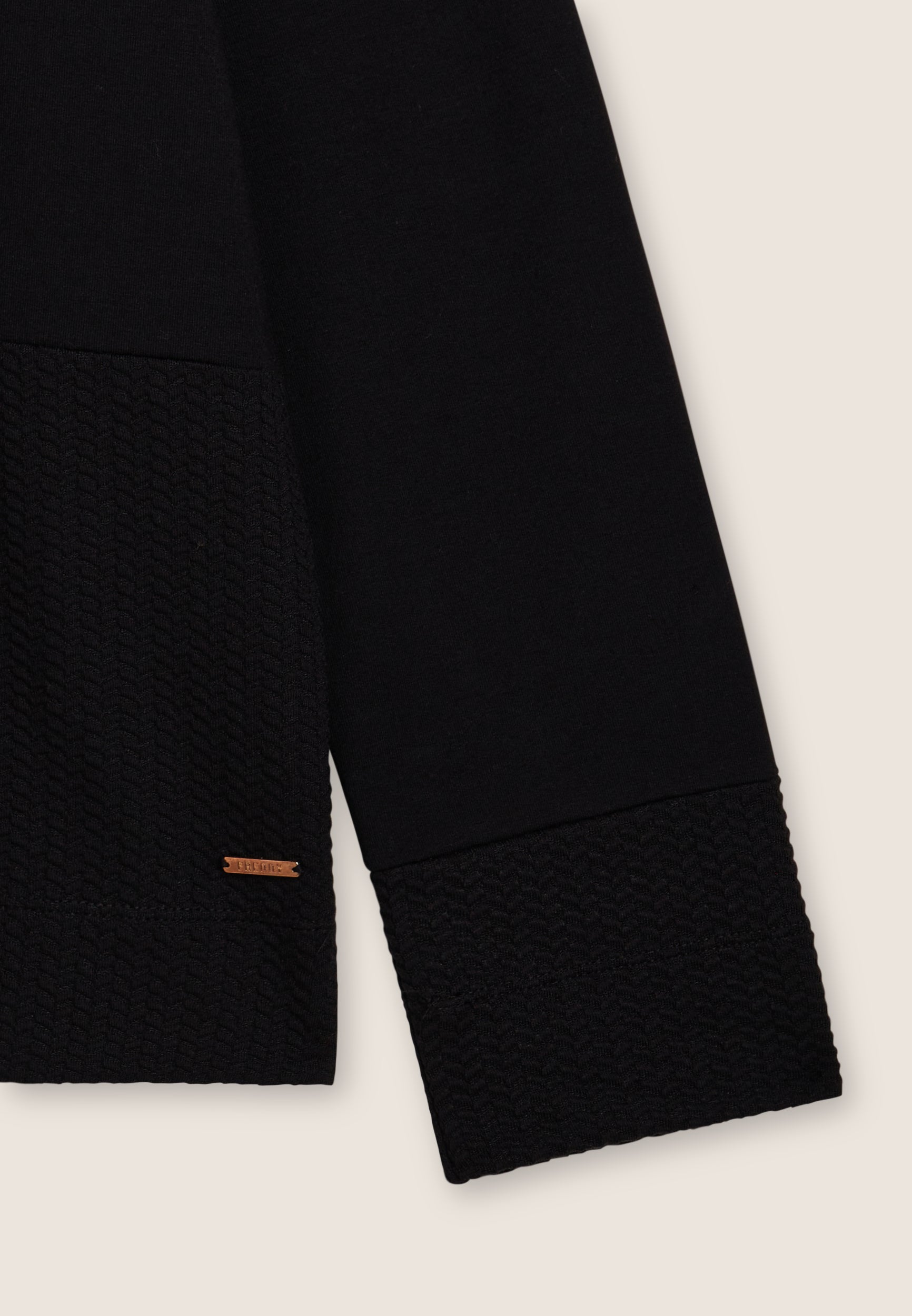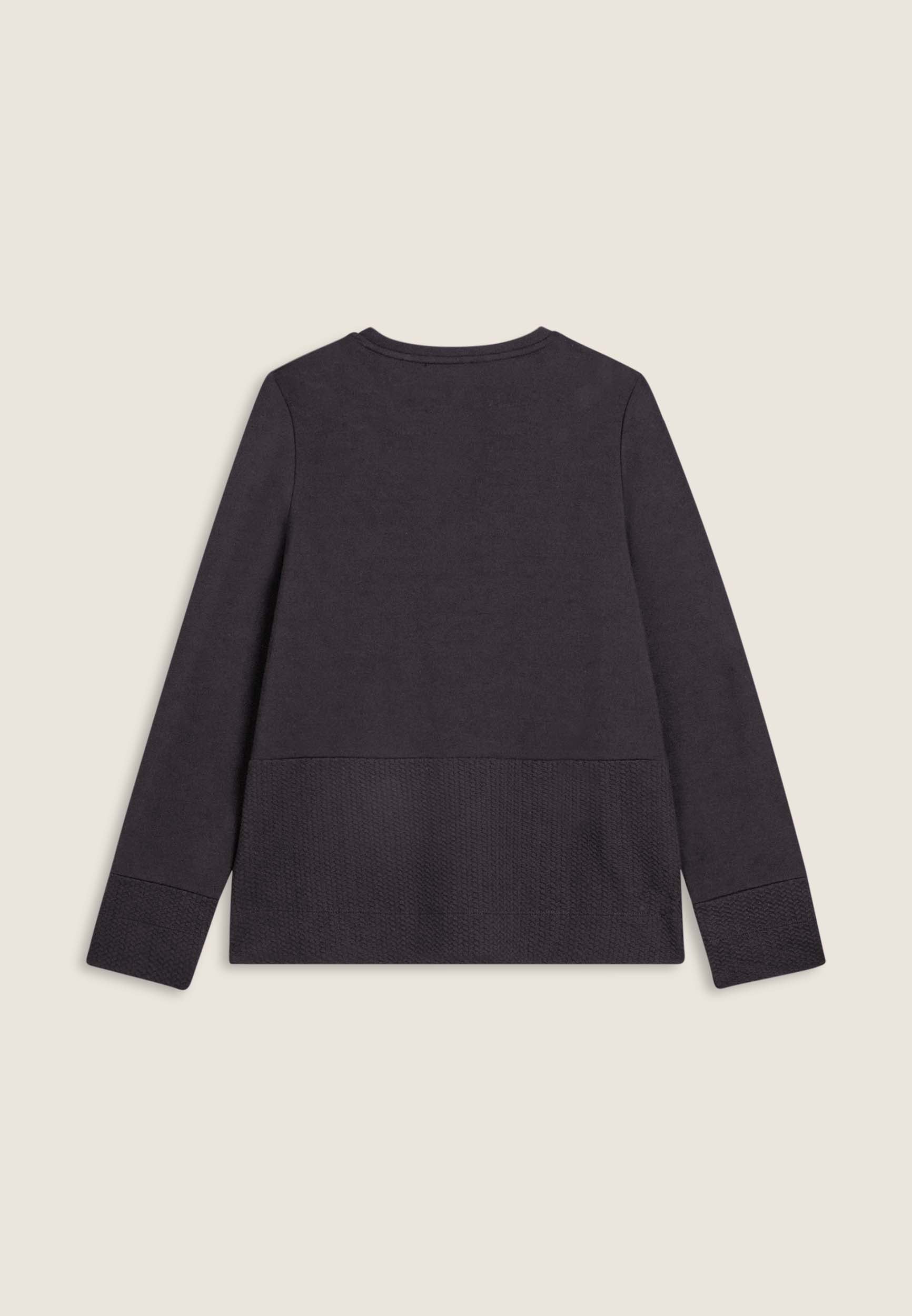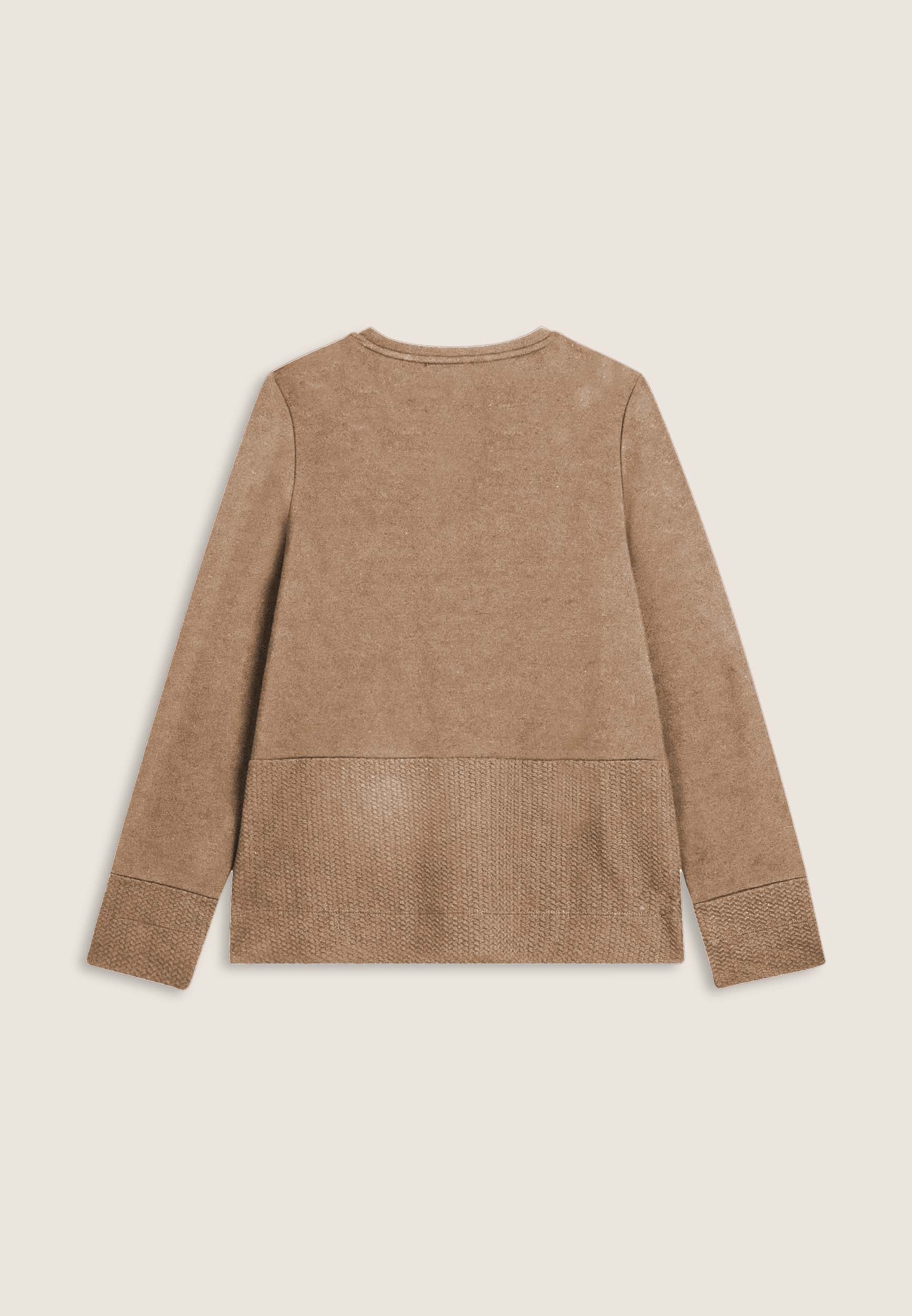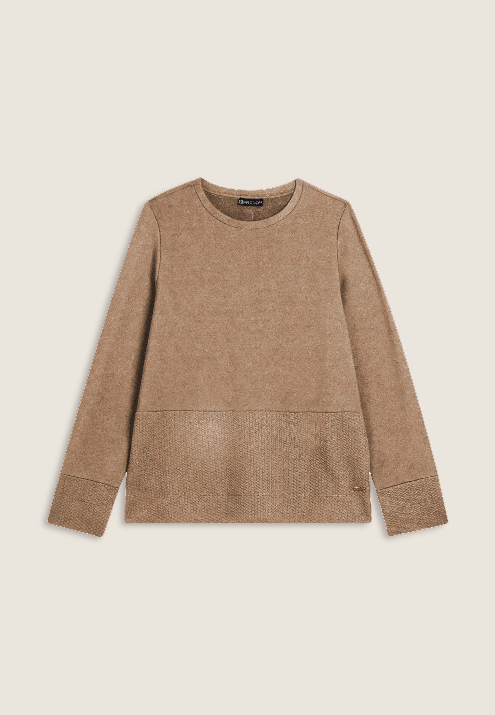 Damen-Sweatshirt mit normaler Passform aus angerautem Stretch- Modal-Sweatshirtstoff, der für Wärme und Weichheit sorgt. Das Design wird durch eine Grafik aus Strasssteinen mit der Aufschrift „Here and Now“ auf der Vorderseite und eleganten Details unterhalb der Brust und an den Ärmeln aus doppellagigem Techno-Sweatshirtstoff mit Mikro-Zopfmuster abgerundet. Rundhalsausschnitt, Ärmel ohne Bündchen und Logo-Plakette von FREDDY am linken Bund.