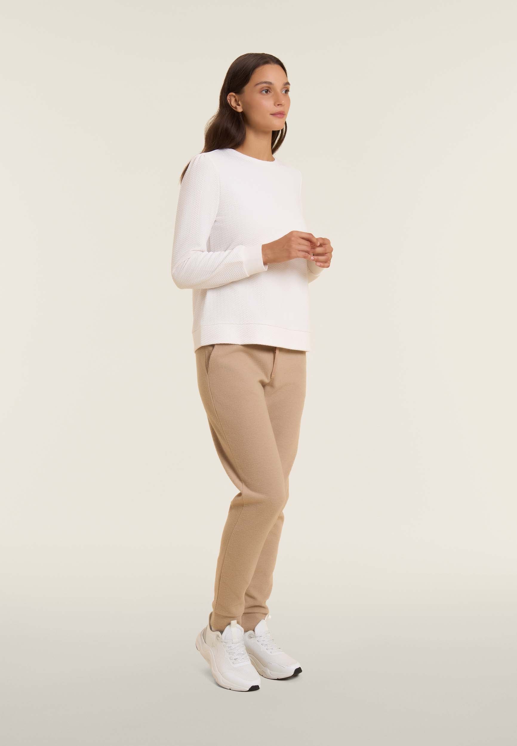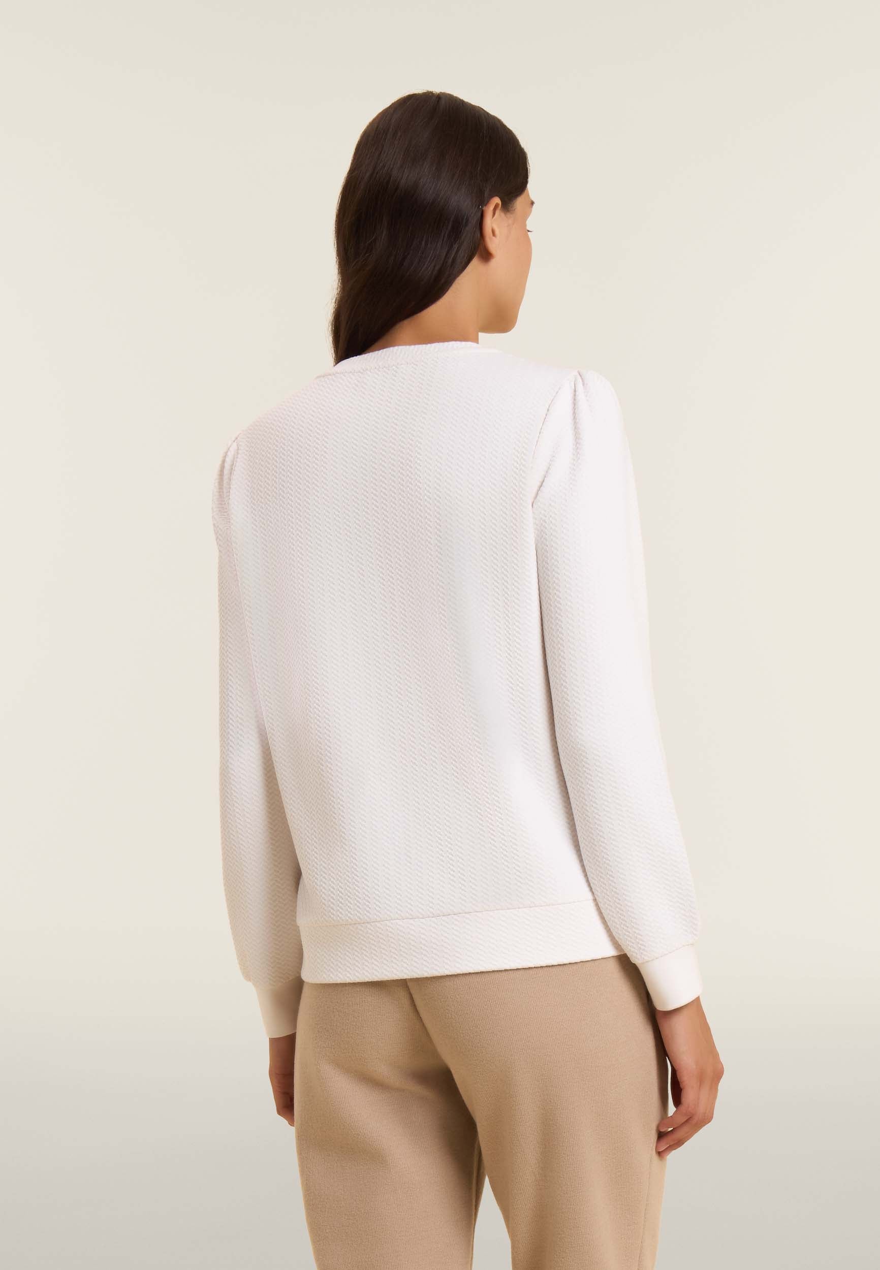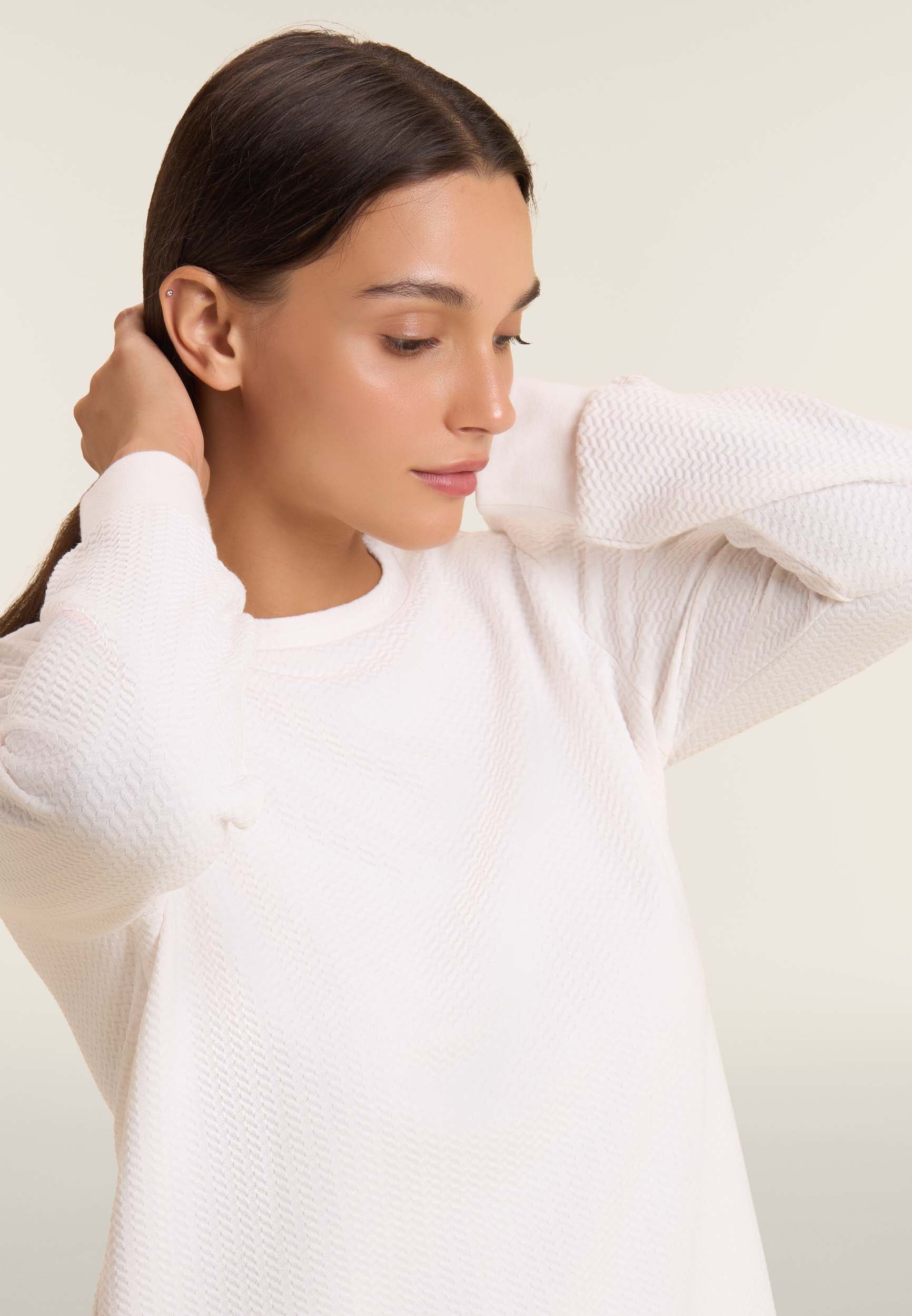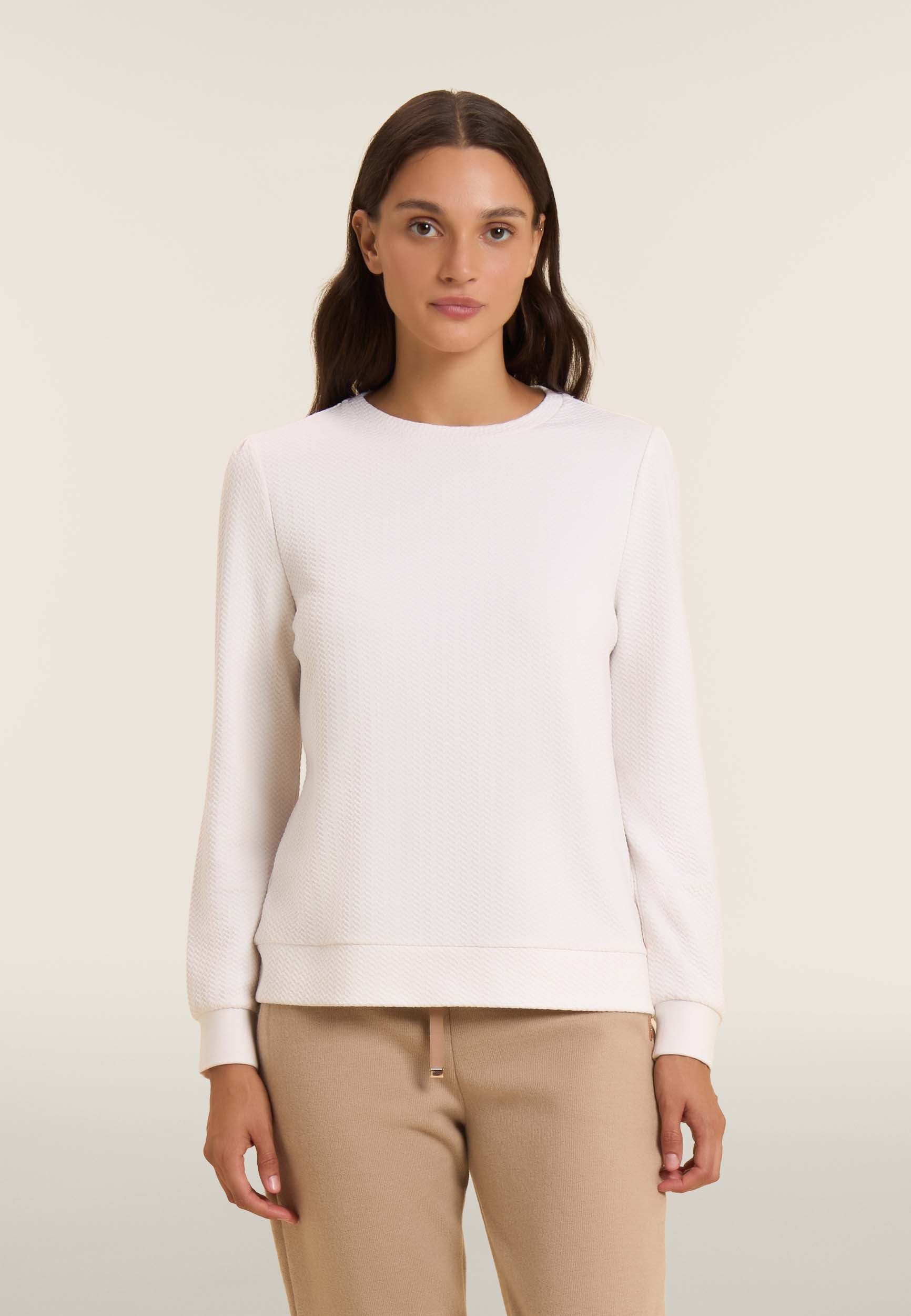 Damen-Sweatshirt mit Rundhalsausschnitt aus Technostoff mit Mikro-Zopfmuster