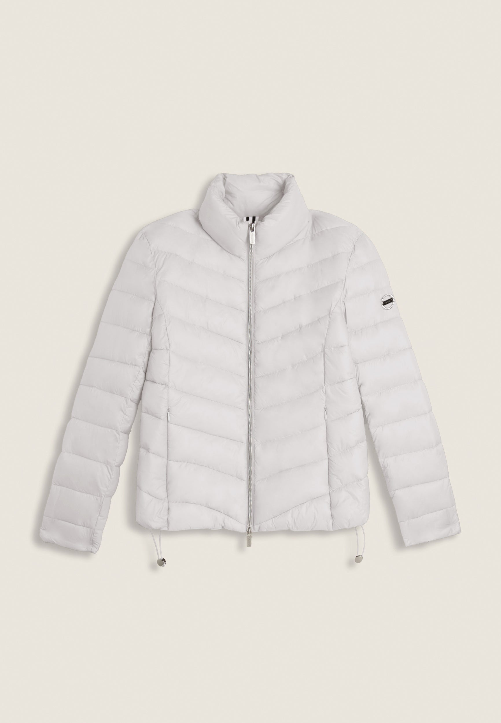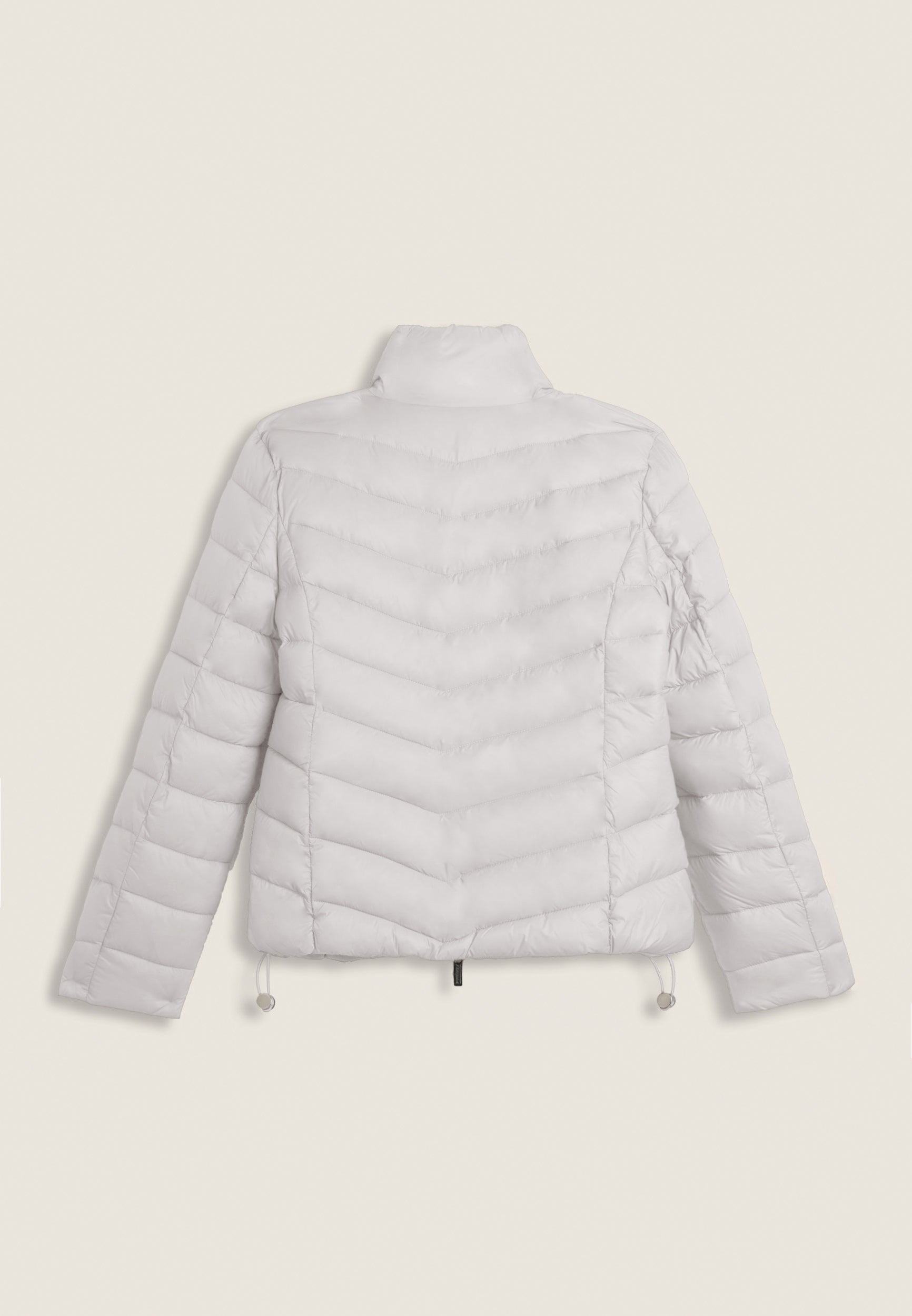 Gesteppte Damen-Daunenjacke mit hohem Kragen und glänzendem Finish