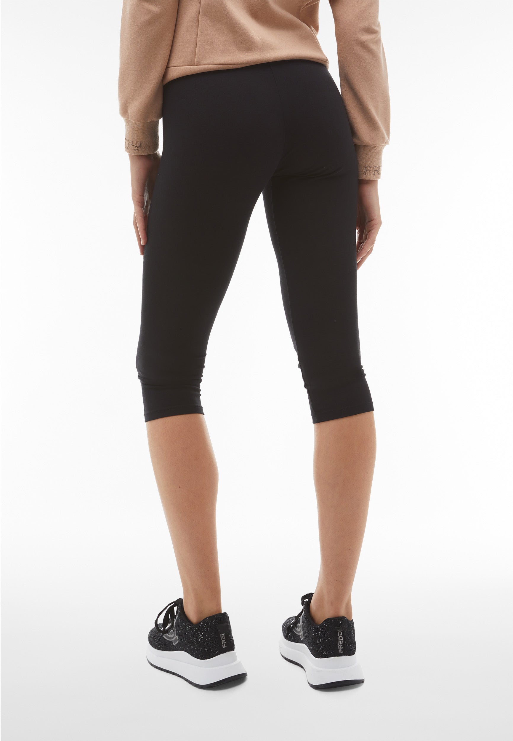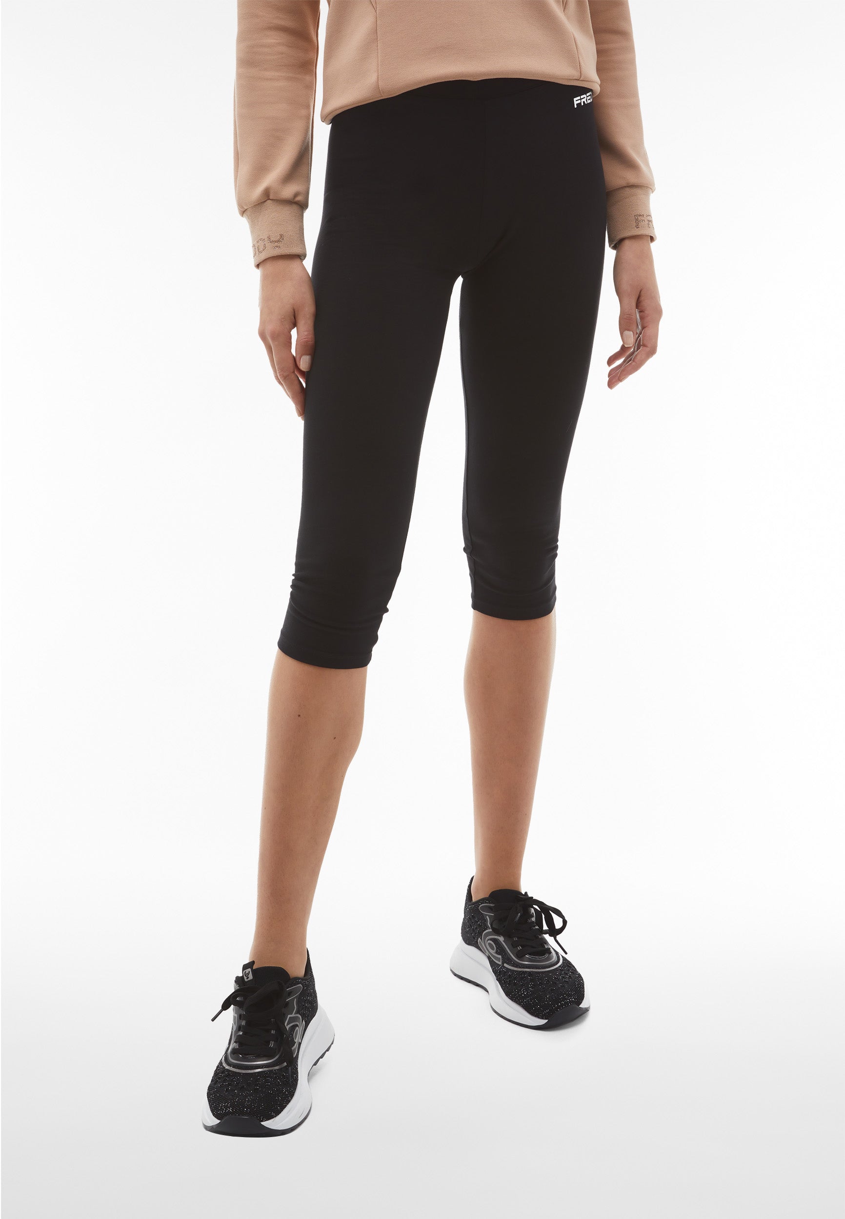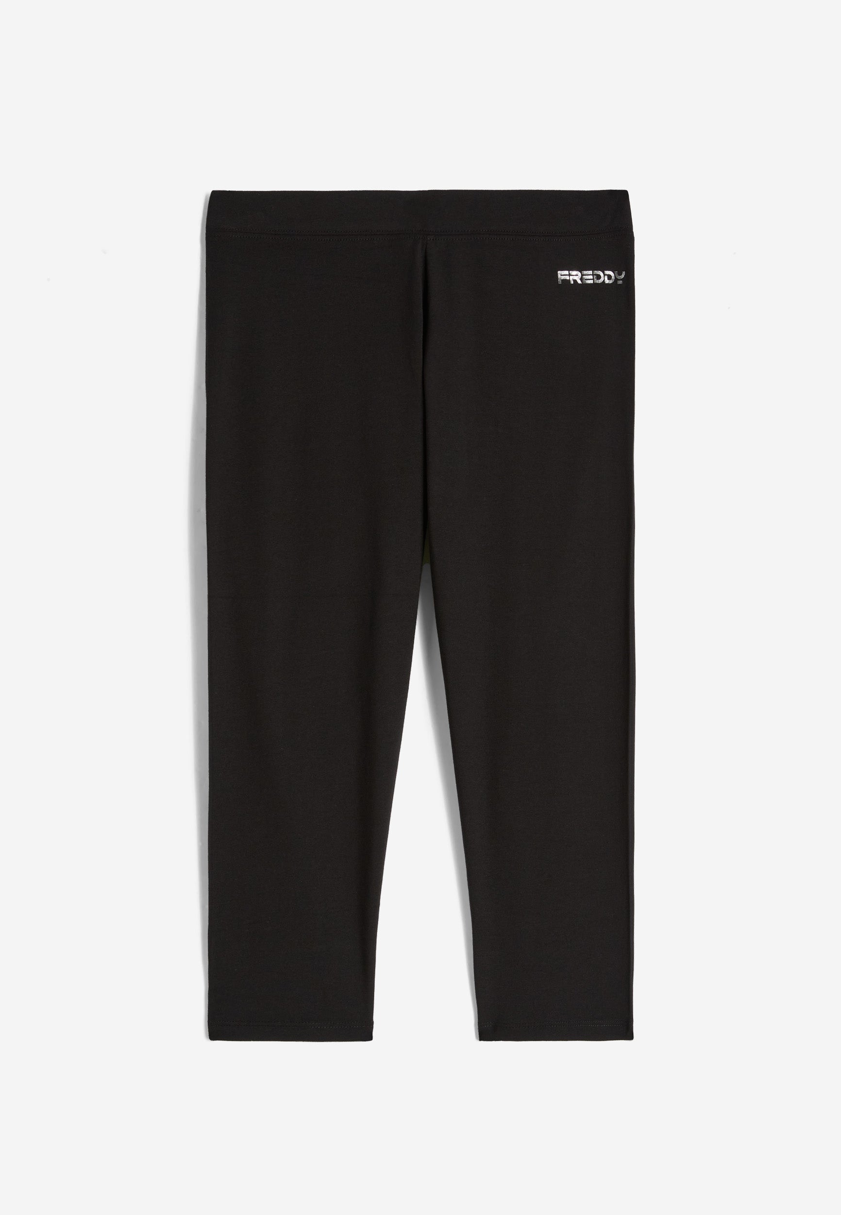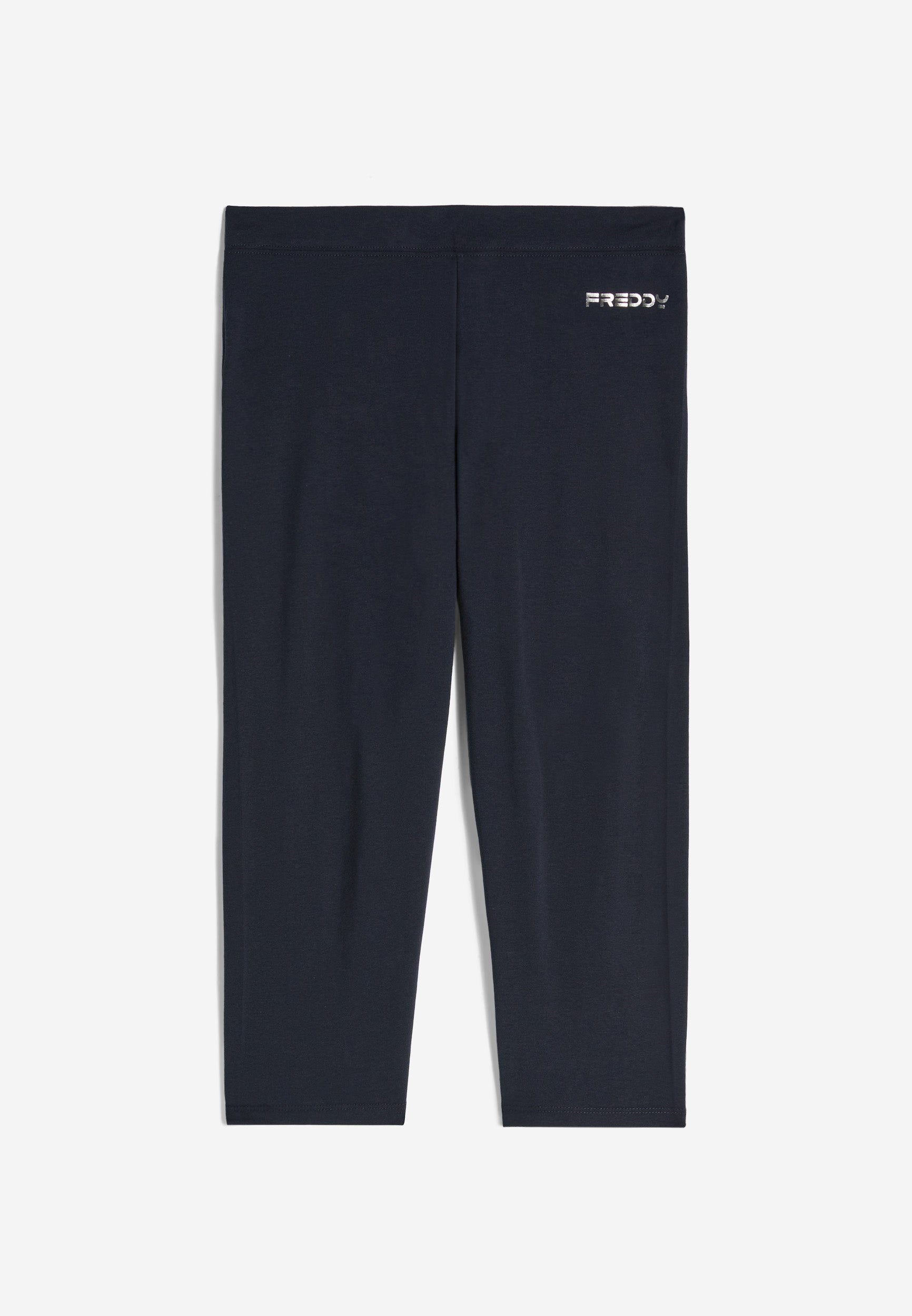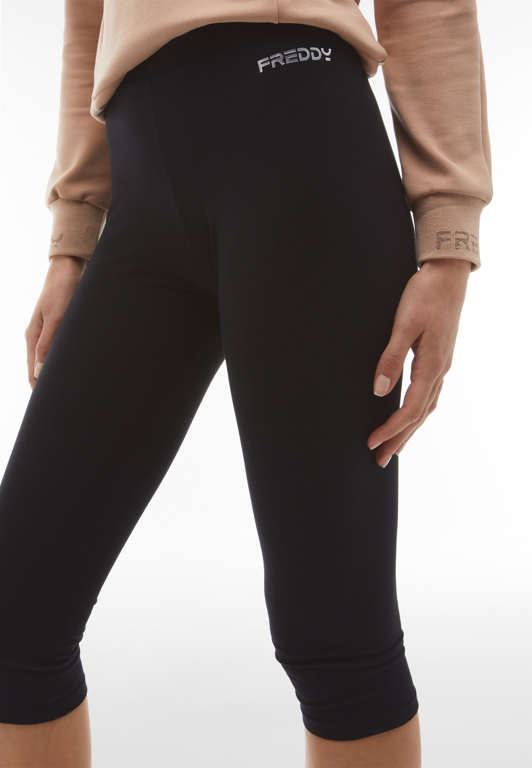 Sportliche Leggings mit normalem Taillenbund und der Länge einer Korsarenhose aus Heavy Stretch-Jersey. Als stilvolles Detail rundet der silberne FREDDY-Logo-Aufdruck auf der linken Seite das Bild dieser Leggings ab, die durch die Vitalität des halblangen Designs und der Dehnbarkeit des Stoffs für Bewegungsfreiheit sorgen und somit perfekt für Sport und dynamische Bewegungen geeignet sind.