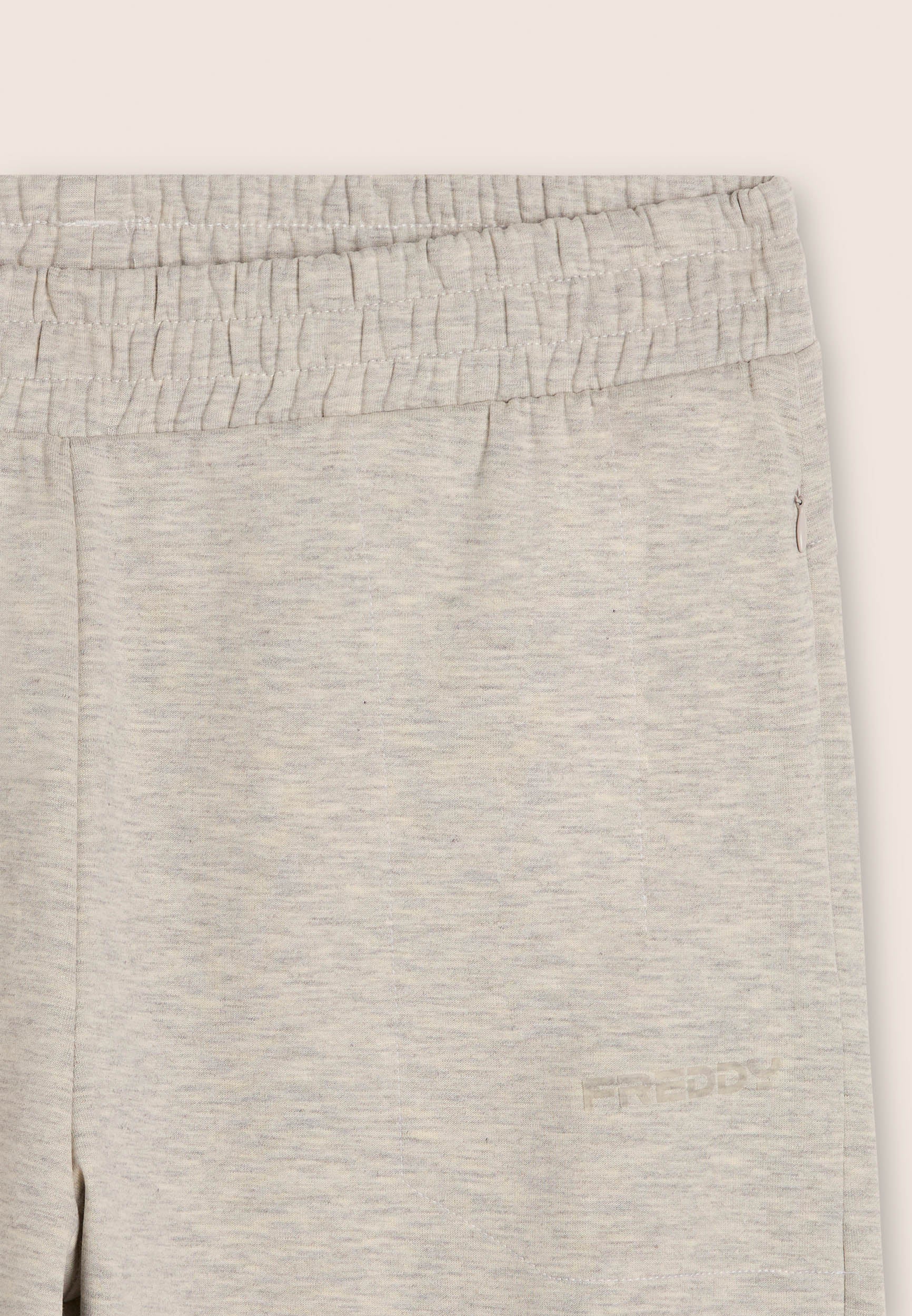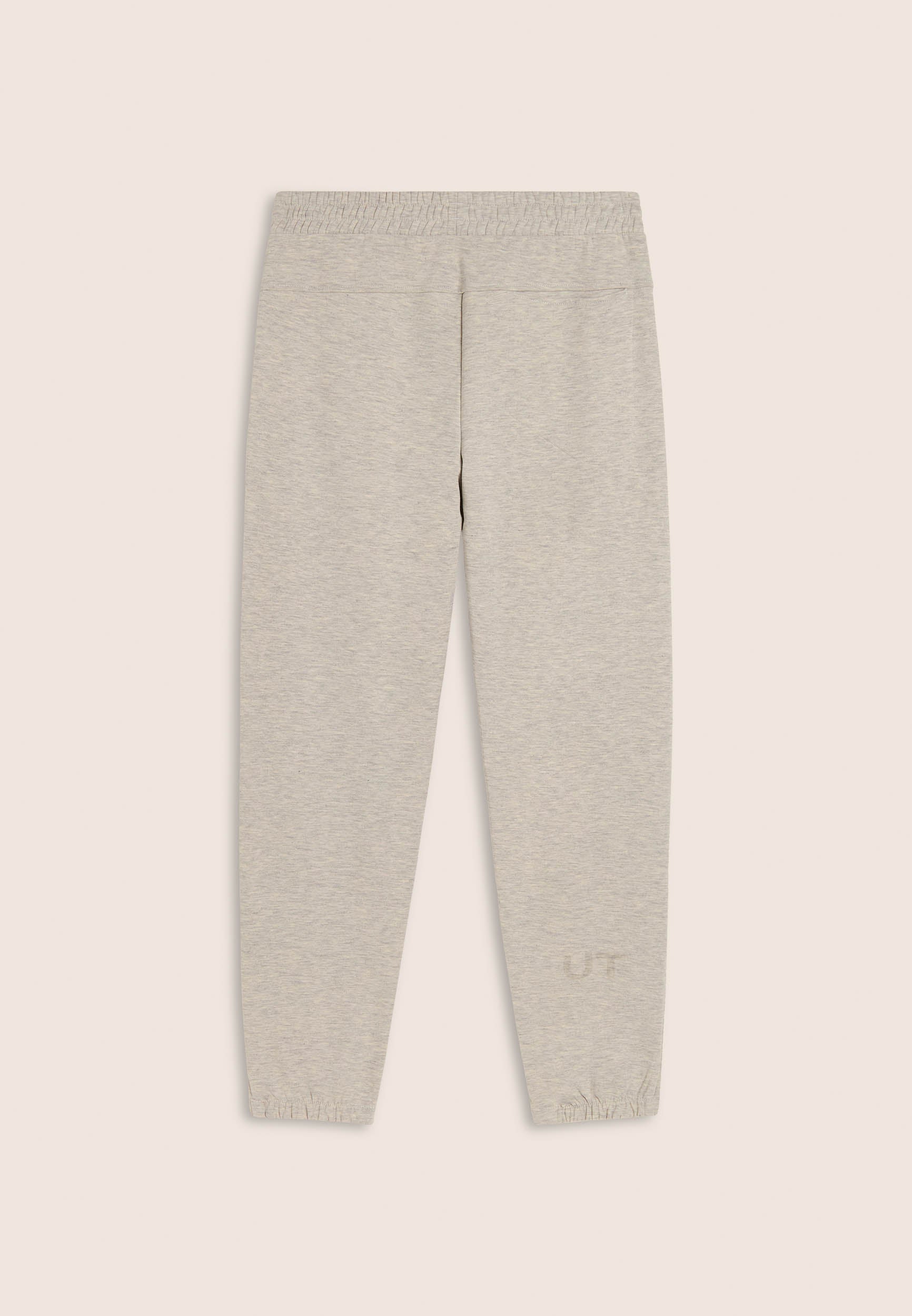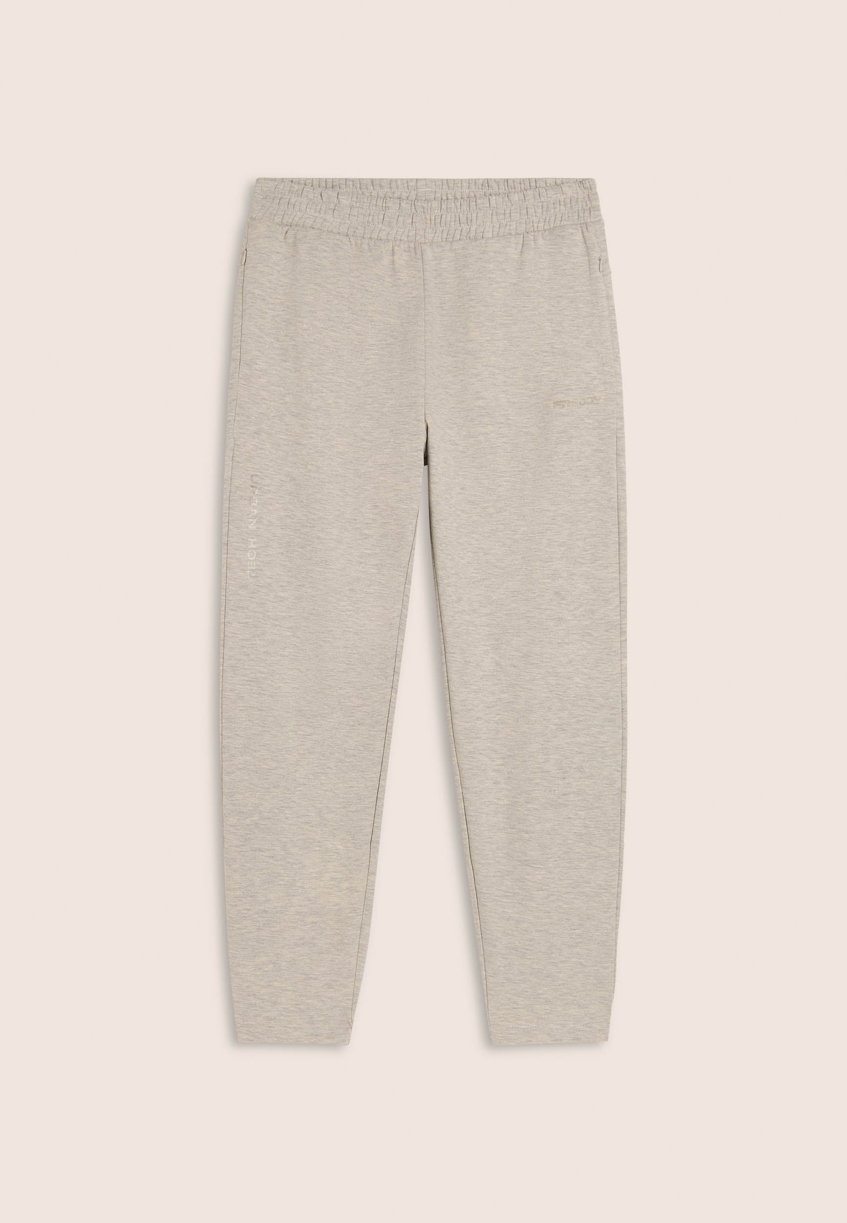 Herren-Sporthose aus Melange-Gewebe aus Stretch-Interlock. Schmale Passform, normale Länge und Saum mit rückseitigem Gummizug. Bequemer Taillenbund mit innenliegendem Gummizug. Reißverschlusstaschen auf der Vorderseite und Gesäßtasche, hervorgehoben durch Nähte. Transparente Prints auf den Beinen verleihen dem perfekt für die Freizeit geeignetem Kleidungsstück Charakter.