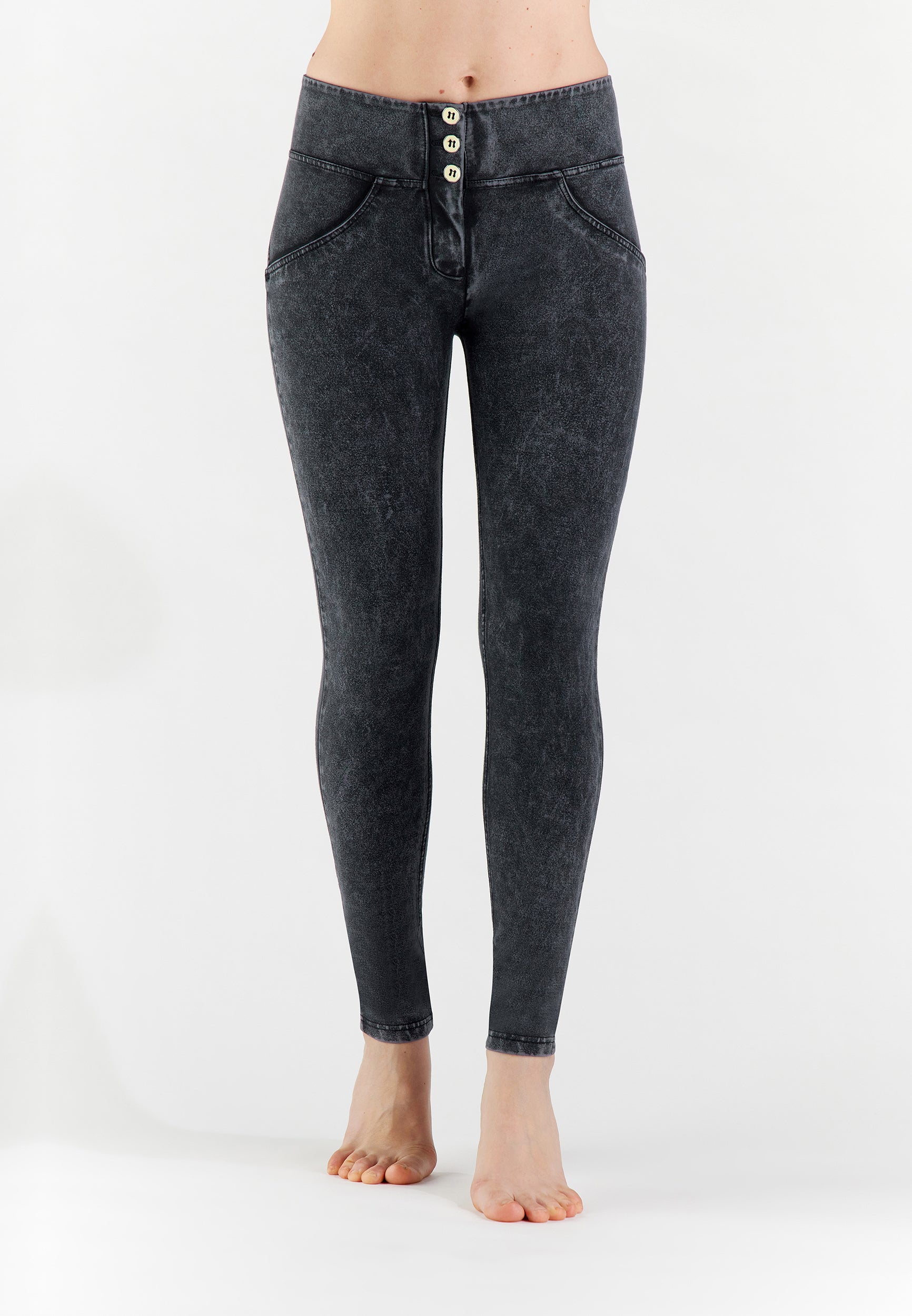 Push up-Hose WR.UP® mittlerem Taillenbund, Superskinny-Passform mit Bleaching-Effekt