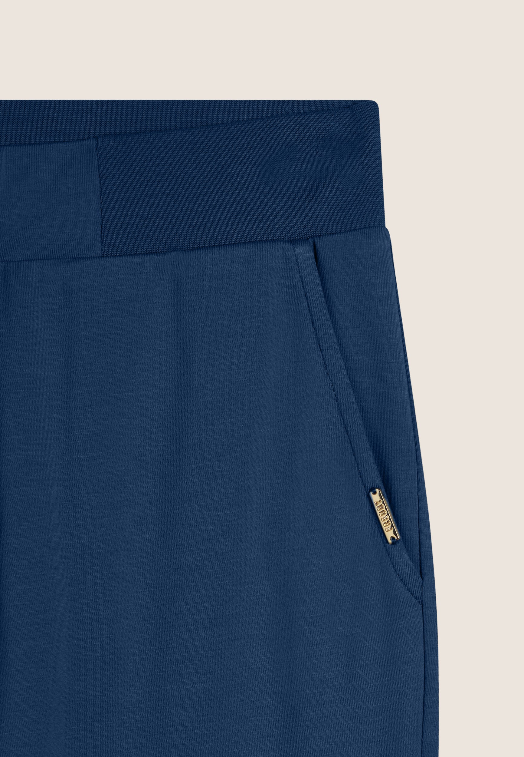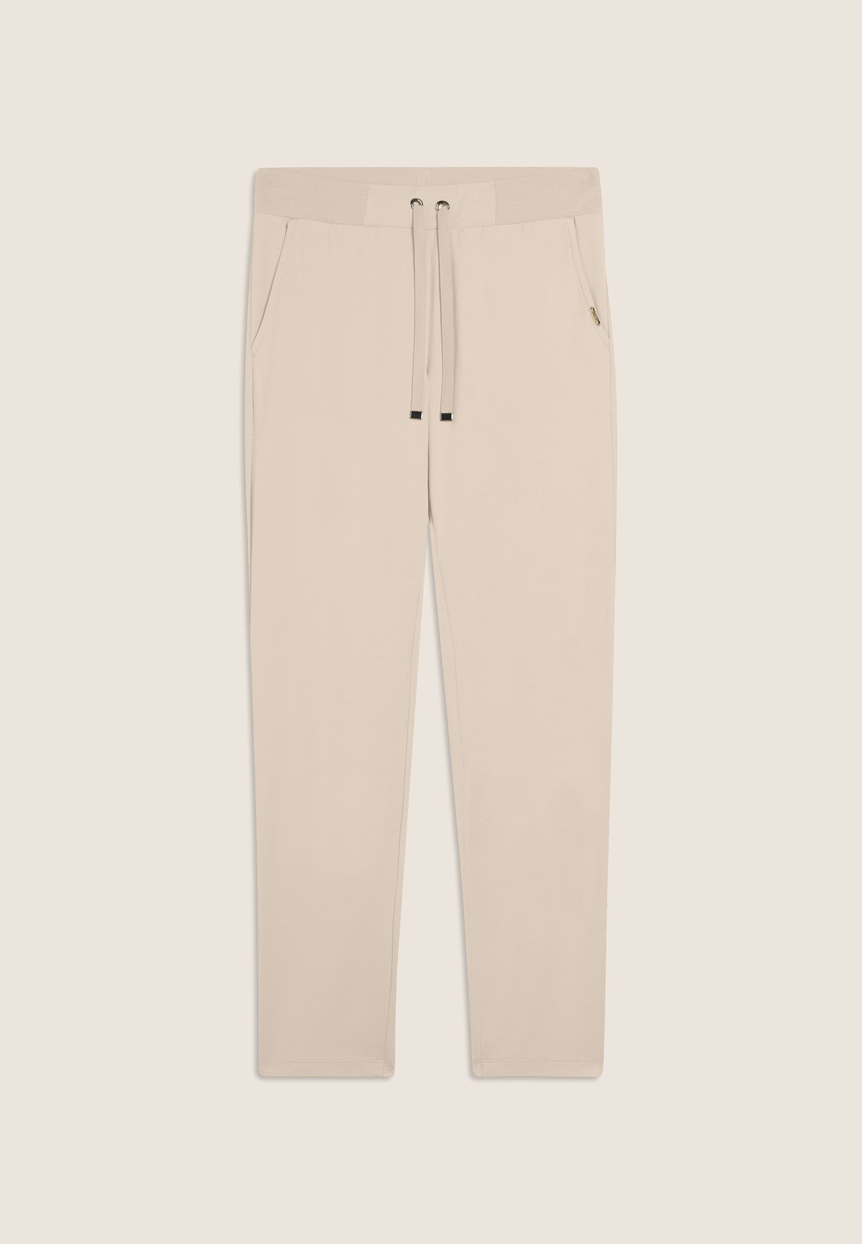 Stretch-Jersey-Hose mit regulärer Passform und voller Länge, ideal für leichte Aktivitäten oder Entspannung. Die Taille ist gerippt und hat einen Kordelzug zur optimalen Anpassung, das Bein hat eine gerade Linie und das Beinende folgt dem gleichen Stil. Praktische französische Taschen und eine goldene FREDDY-Plakette auf der linken Tasche vervollständigen das unverzichtbare und vielseitige Design.