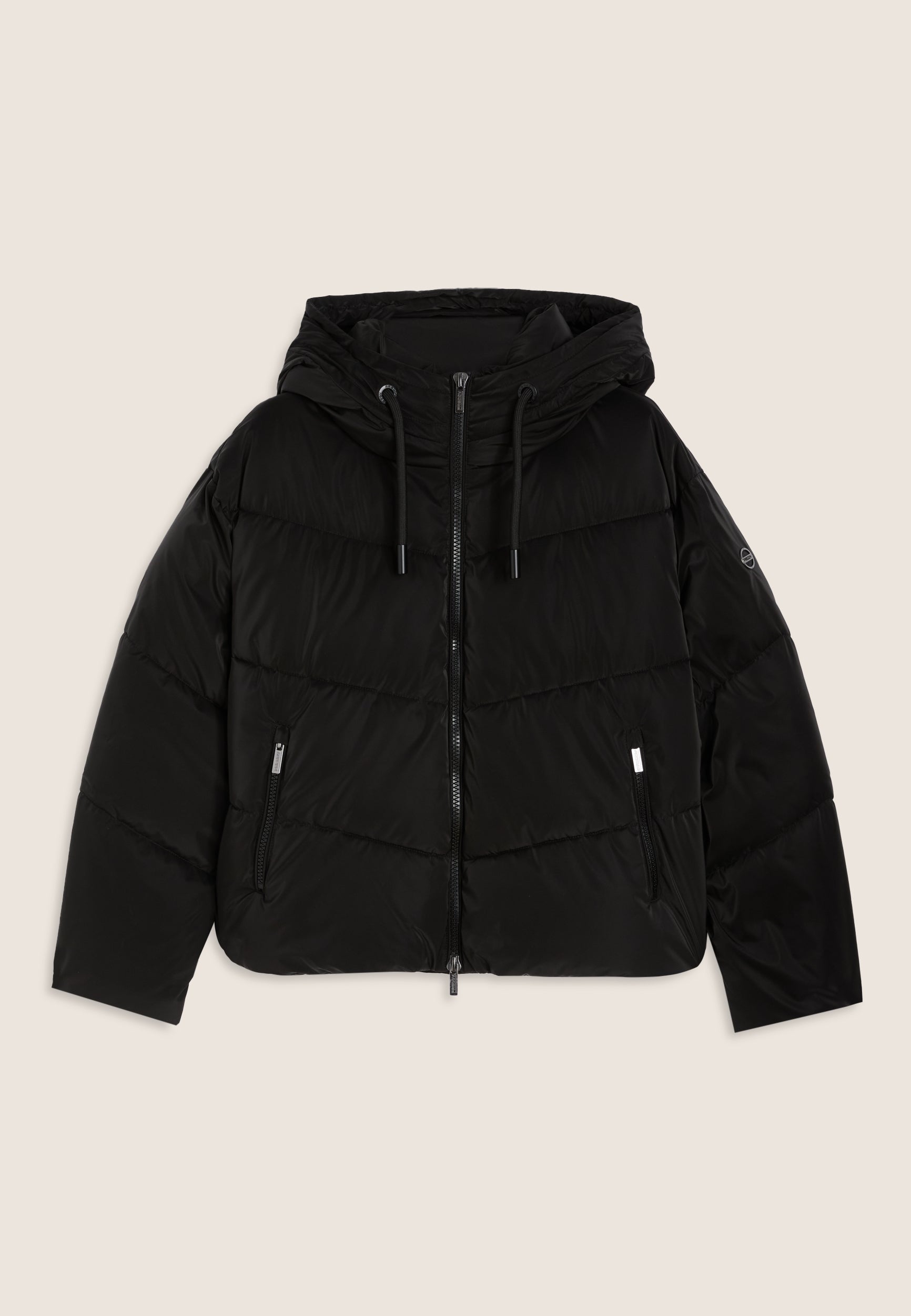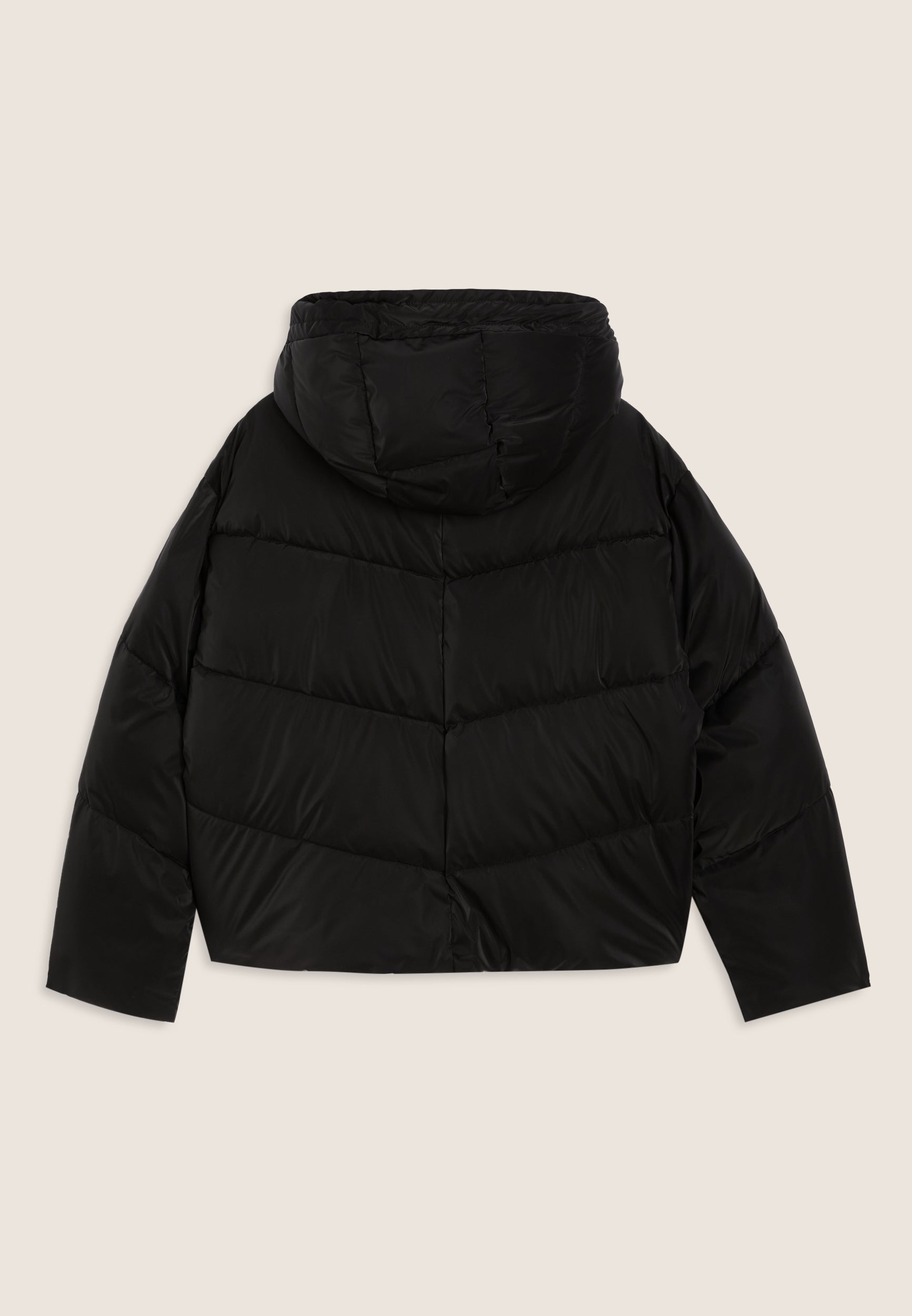 Verkürzte Damen-Daunenjacke mit hohem Kragen und verstellbarem Kordelzug