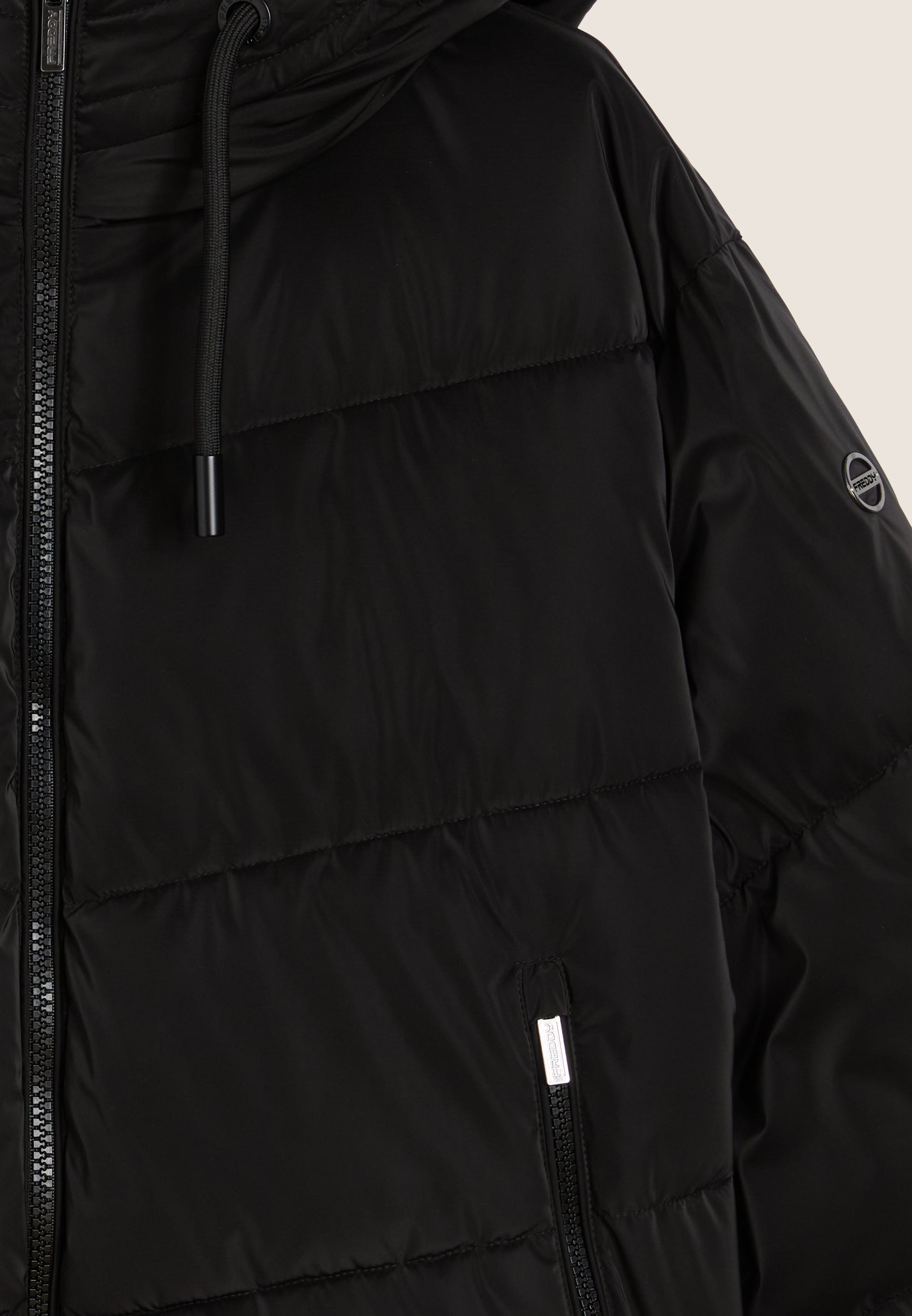 Diese kurze Daunenjacke hat eine bequeme Passform und ist perfekt für einen sportlichen und dynamischen Stil. Die Passform lässt sich dank des Kordelzugs mit Kordelstoppern am Saum anpassen. Sie ist mit tierfreundlicher Kunstdaunenfüllung gepolstert, hält warm und ist dabei leicht und weich. Ein hoher Kragen und eine Kapuze mit Kordelzug, lange, gerade Ärmel und Reißverschlusstaschen sorgen für einen vielseitigen und funktionalen Look. Logo mit Strasssteinen auf dem linken Ärmel.