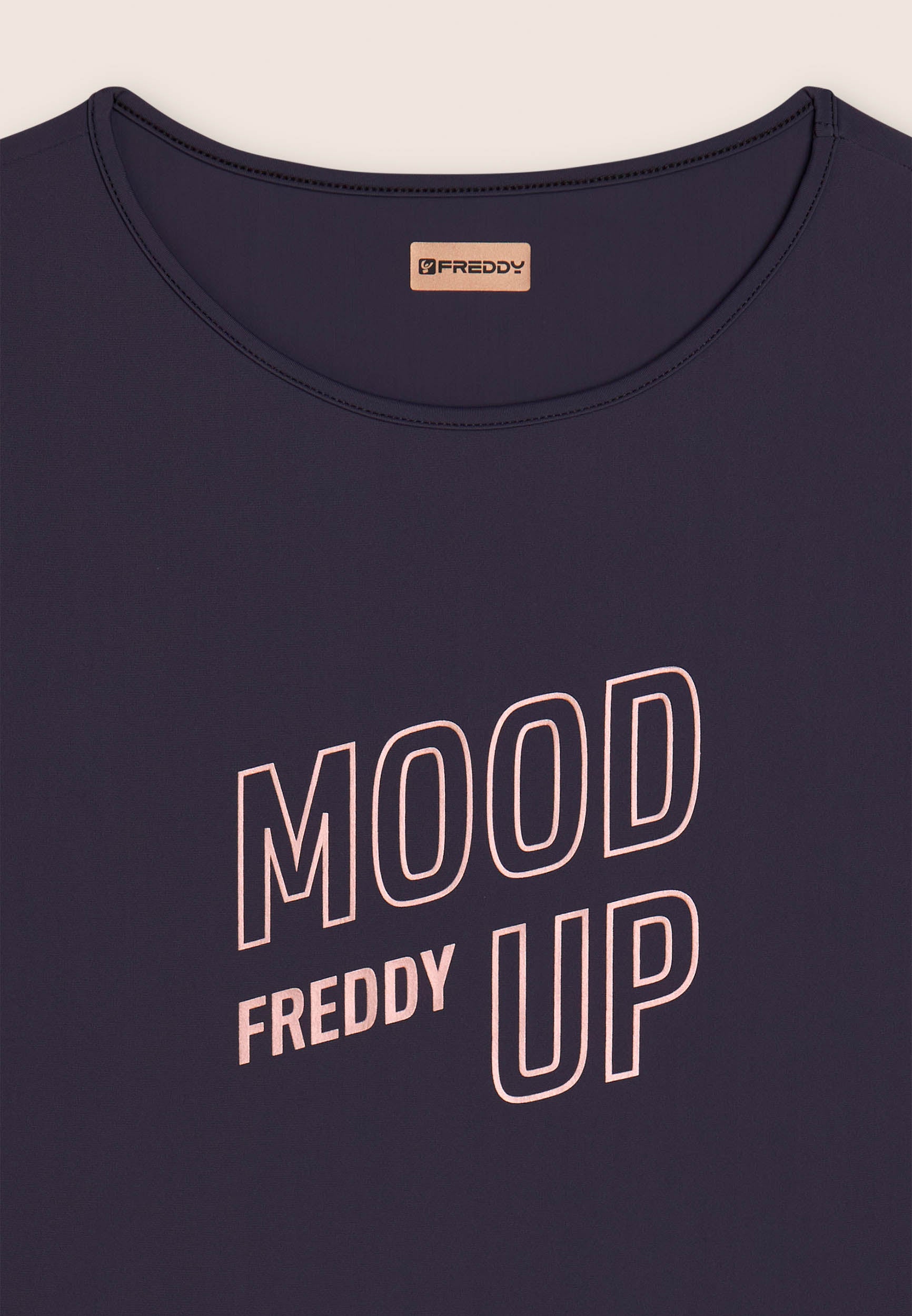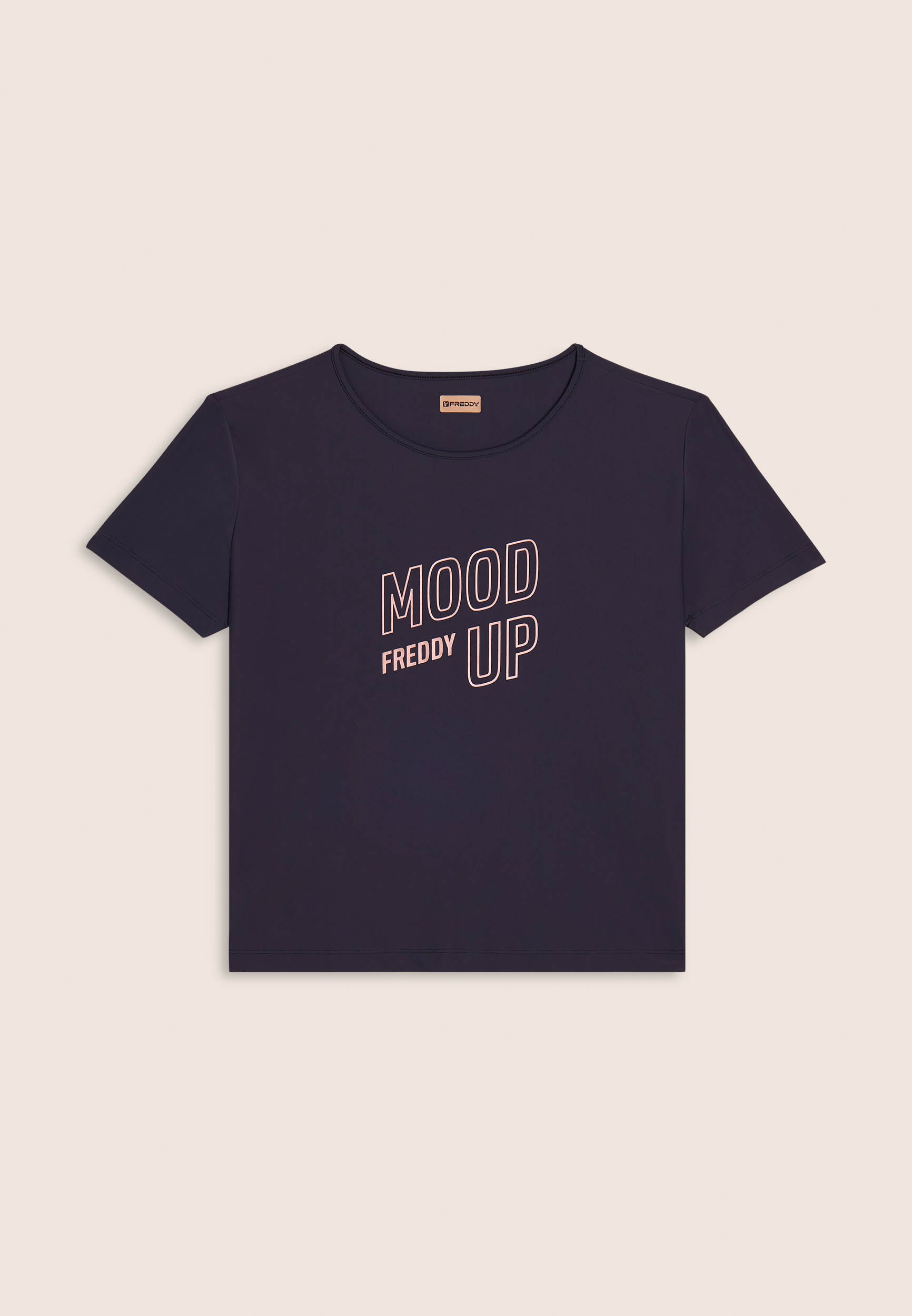 Sport-T-Shirt mit bequemer Passform und verkürzter Länge. Die weiten, kurzen Ärmel machen es frisch und modern, während der Technostoff aus Nylon-Jersey für Atmungsaktivität und Leichtigkeit sorgt. Der „Mood Up“-Print auf der Vorderseite, inspiriert dich bei jedem Training.