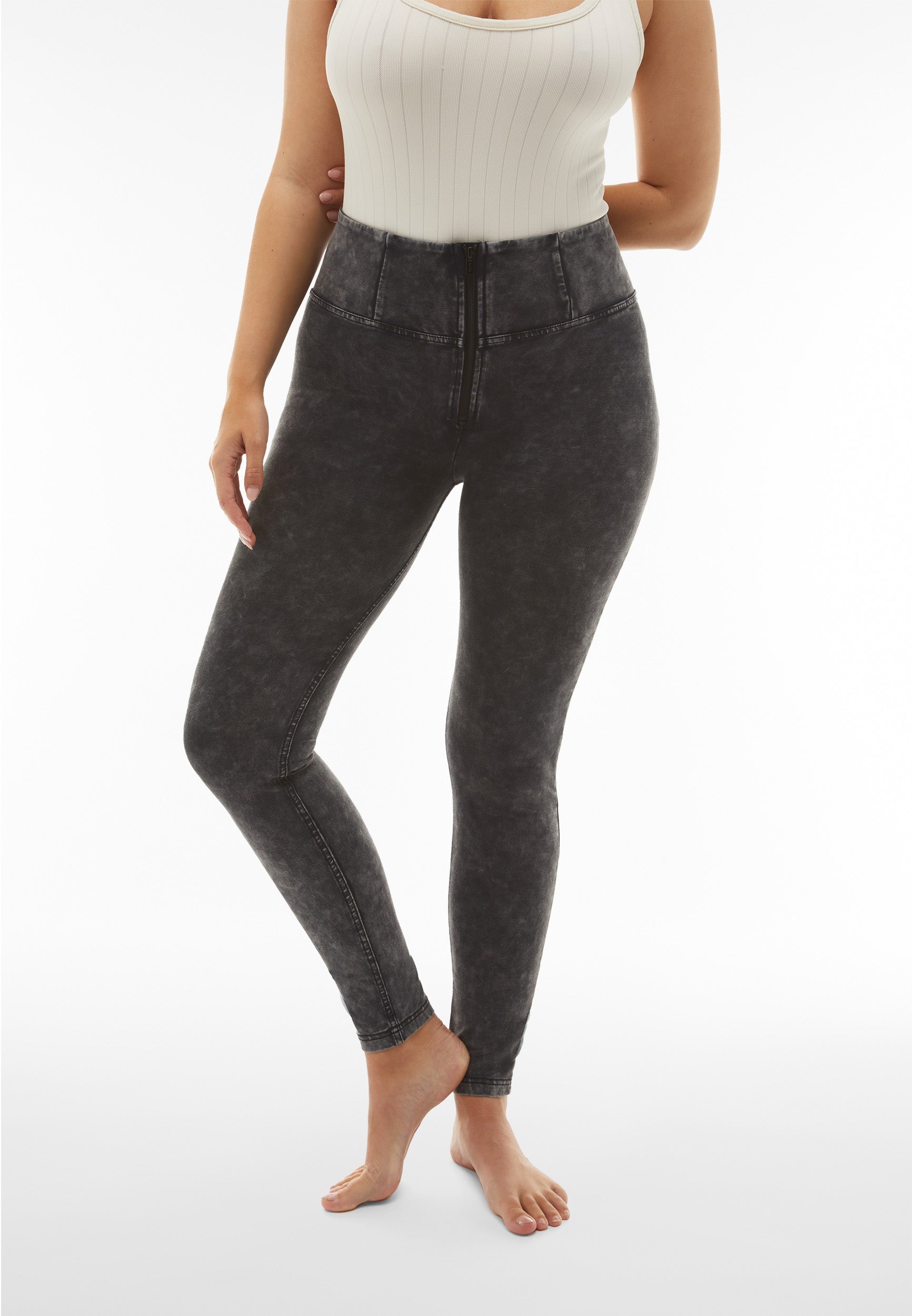 WR.UP® Push up-Hose in Superskinny-Passform mit hohem Taillenbund mit Bleaching-Effekt