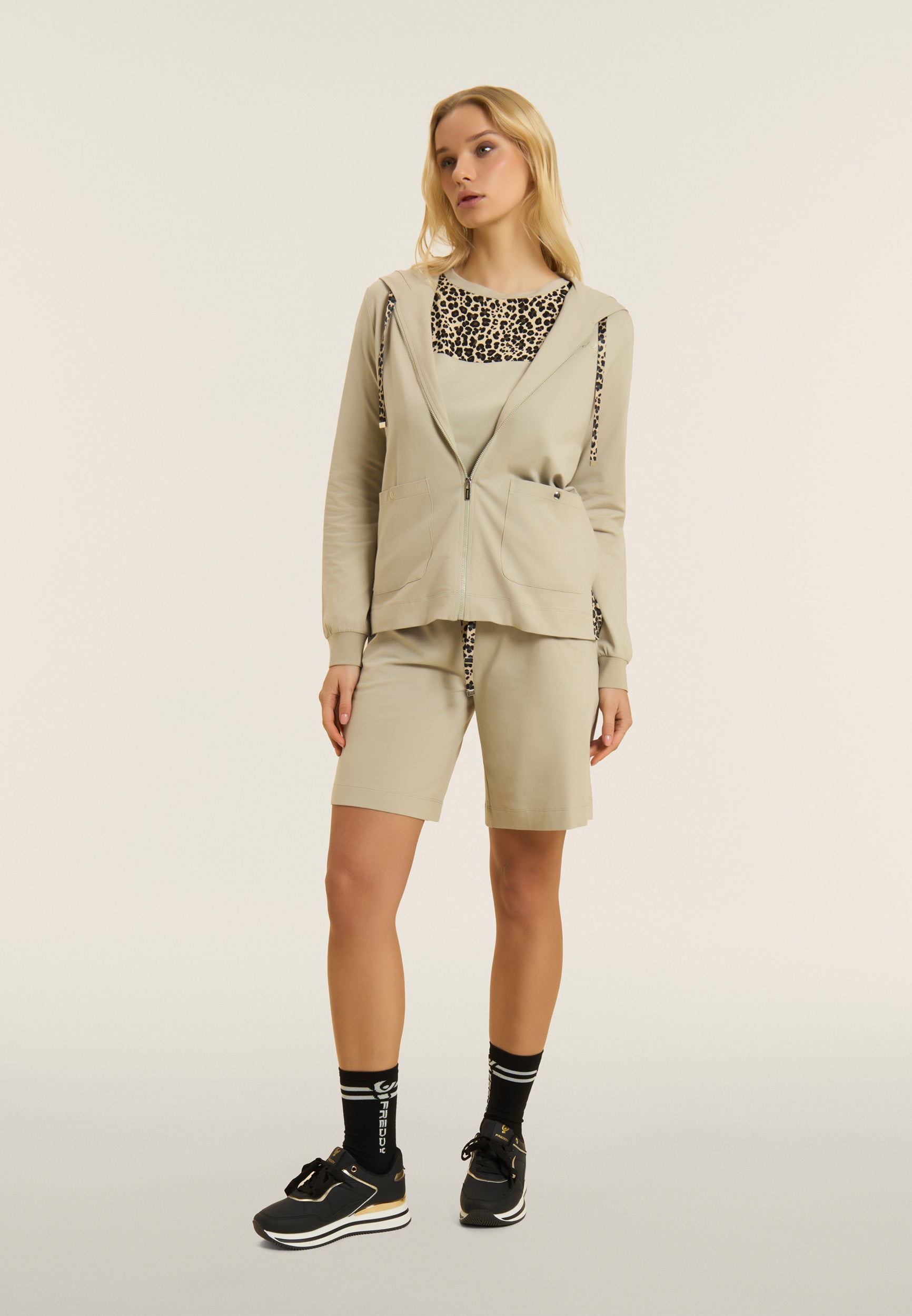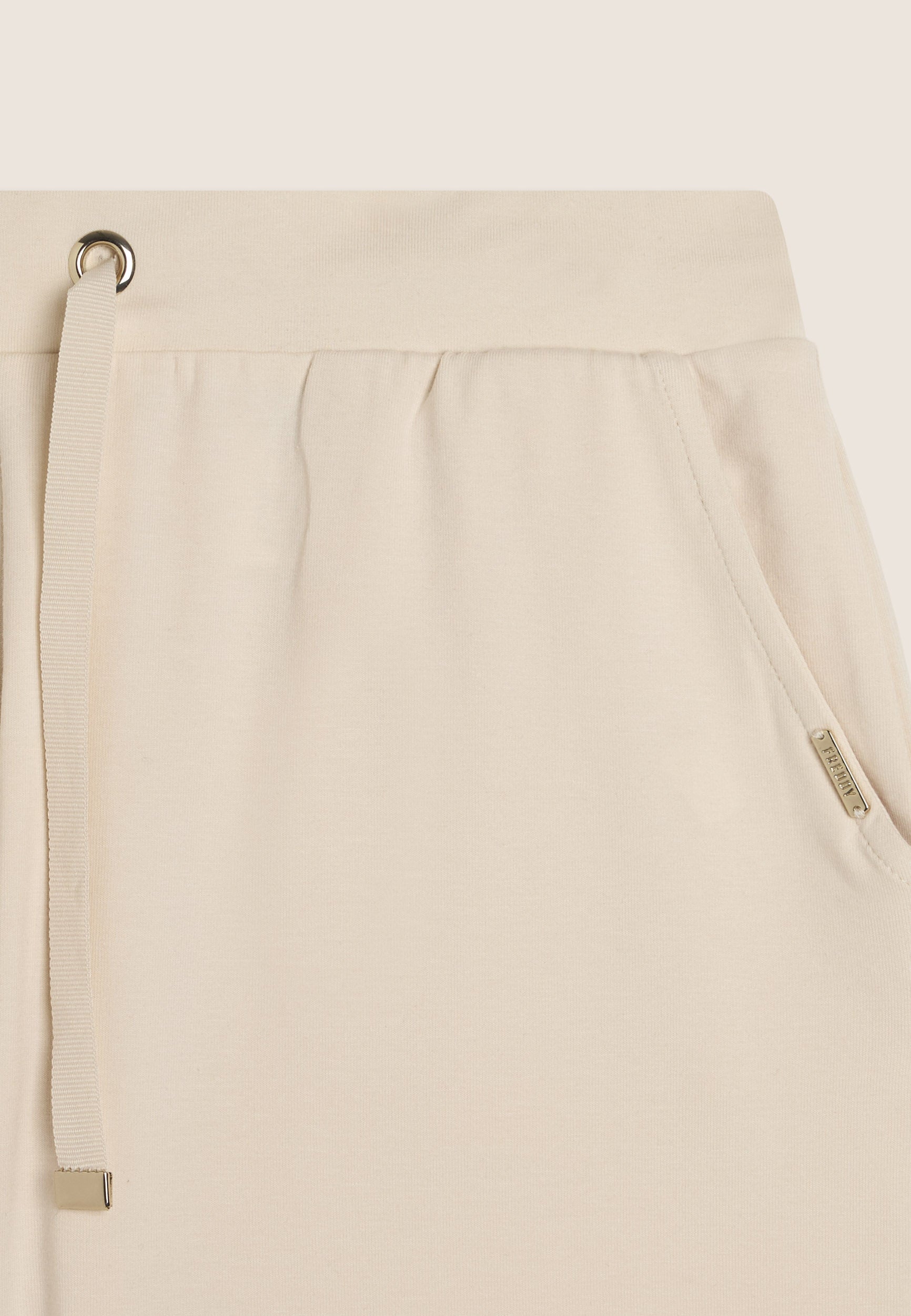 Knee-length shorts in a regular fit, ideal for leisure wear. Made of soft, heavy cotton stretch jersey, they offer comfort and freedom of movement. The regular waist is fitted with drawstrings, and the bottom has small side slits that lend a dynamic touch to the design. French-style front pockets and faux welt pockets at the back add functionality and style. The golden FREDDY tab on the left pocket completes the look.