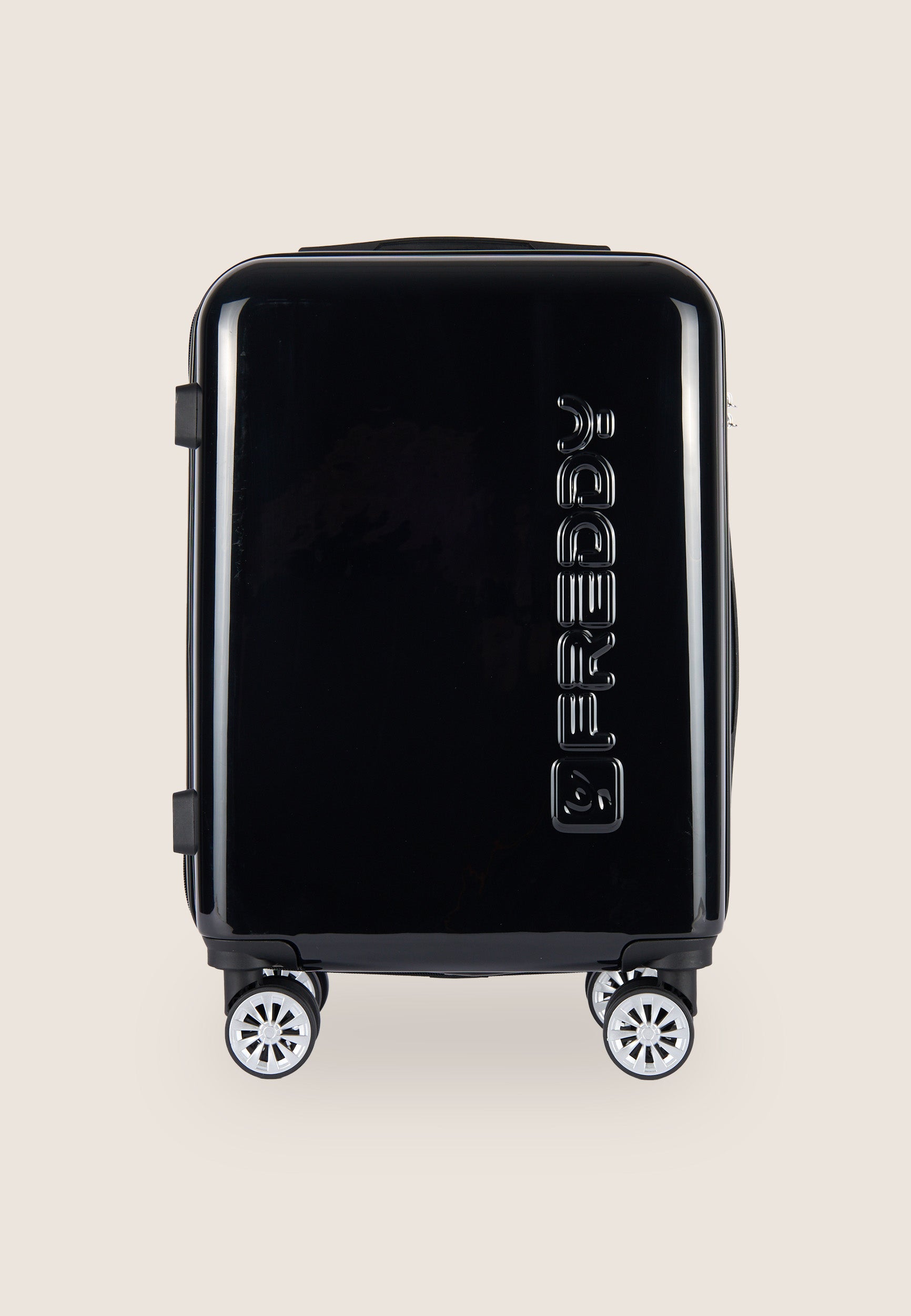 Cabin hard-shell trolley made of durable ABS with a glossy finish, ideal for short trips. Secured with a zip closure and integrated TSA lock, it offers both safety and convenience. The FREDDY logo in relief on the shell adds a distinctive touch. Easy to carry thanks to the telescopic handle, two side handles, and four swivel wheels. The interior is lined, with zipped compartments and a divider with pocket to keep everything organized.