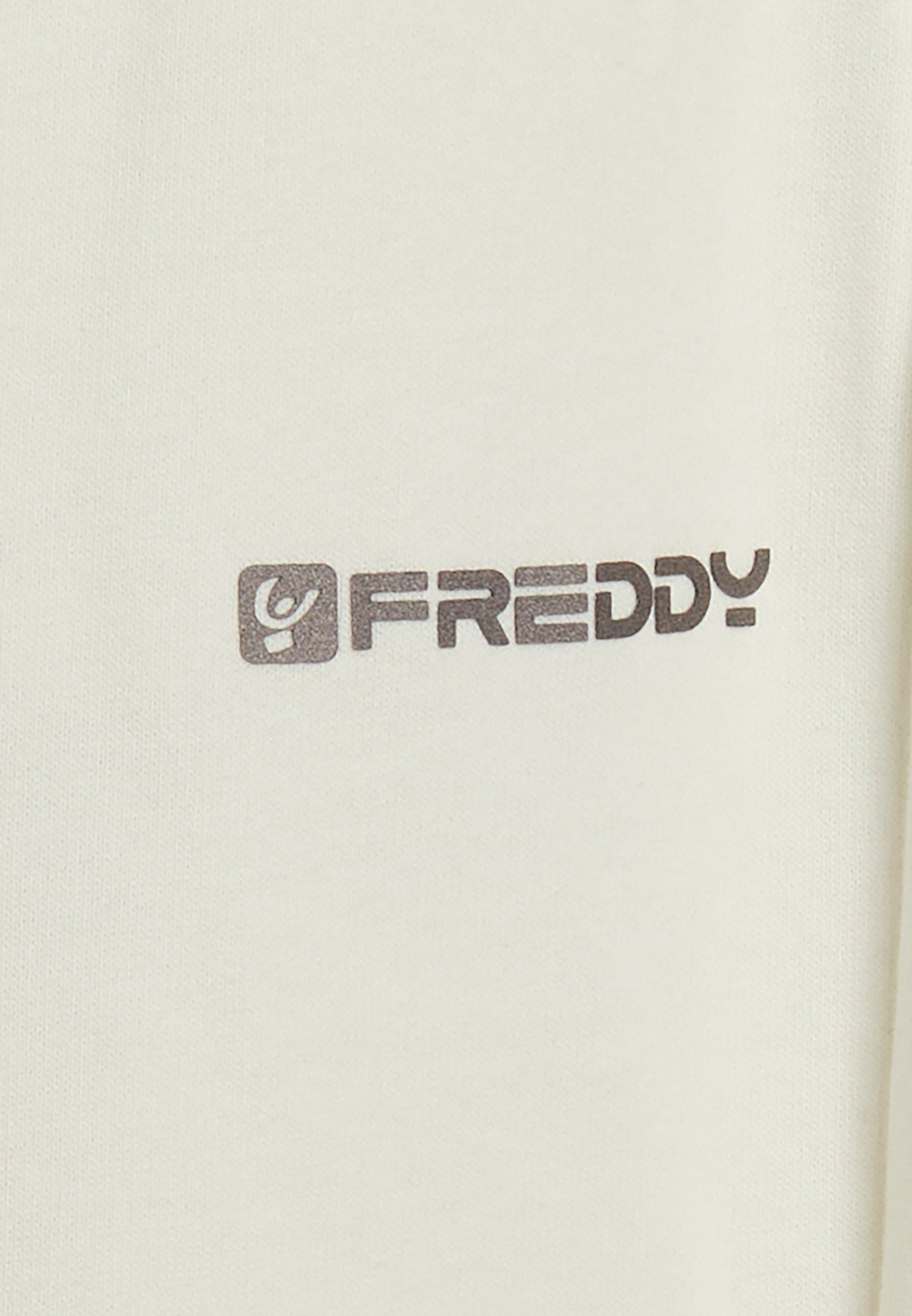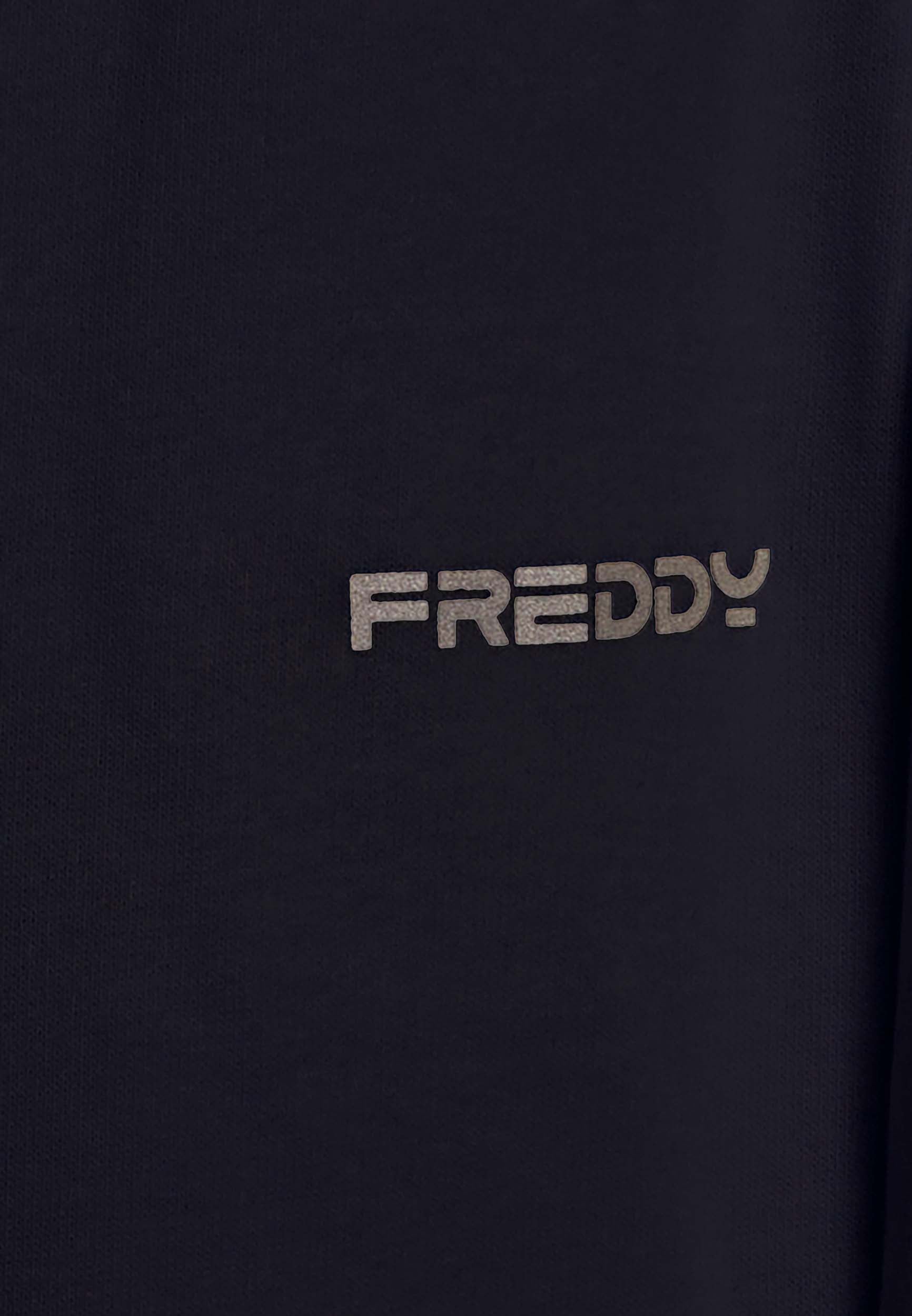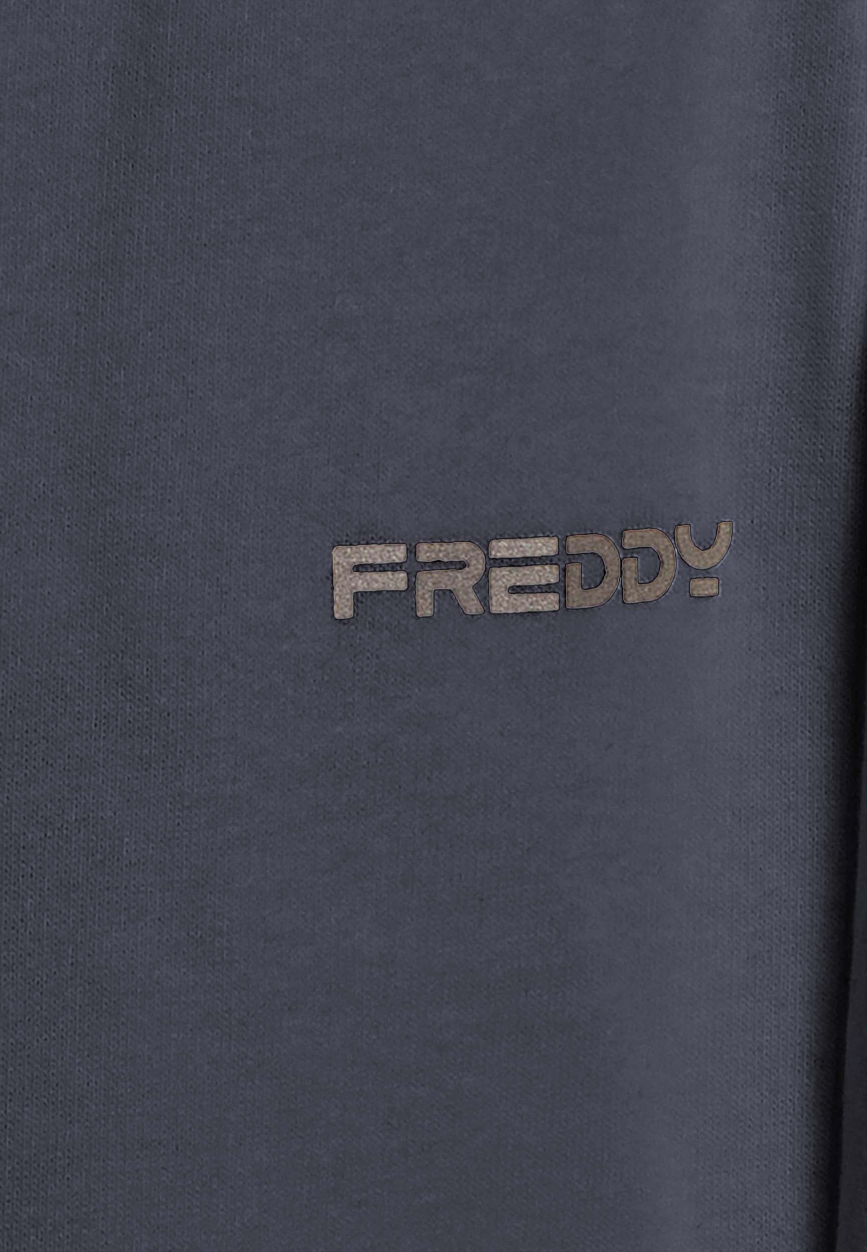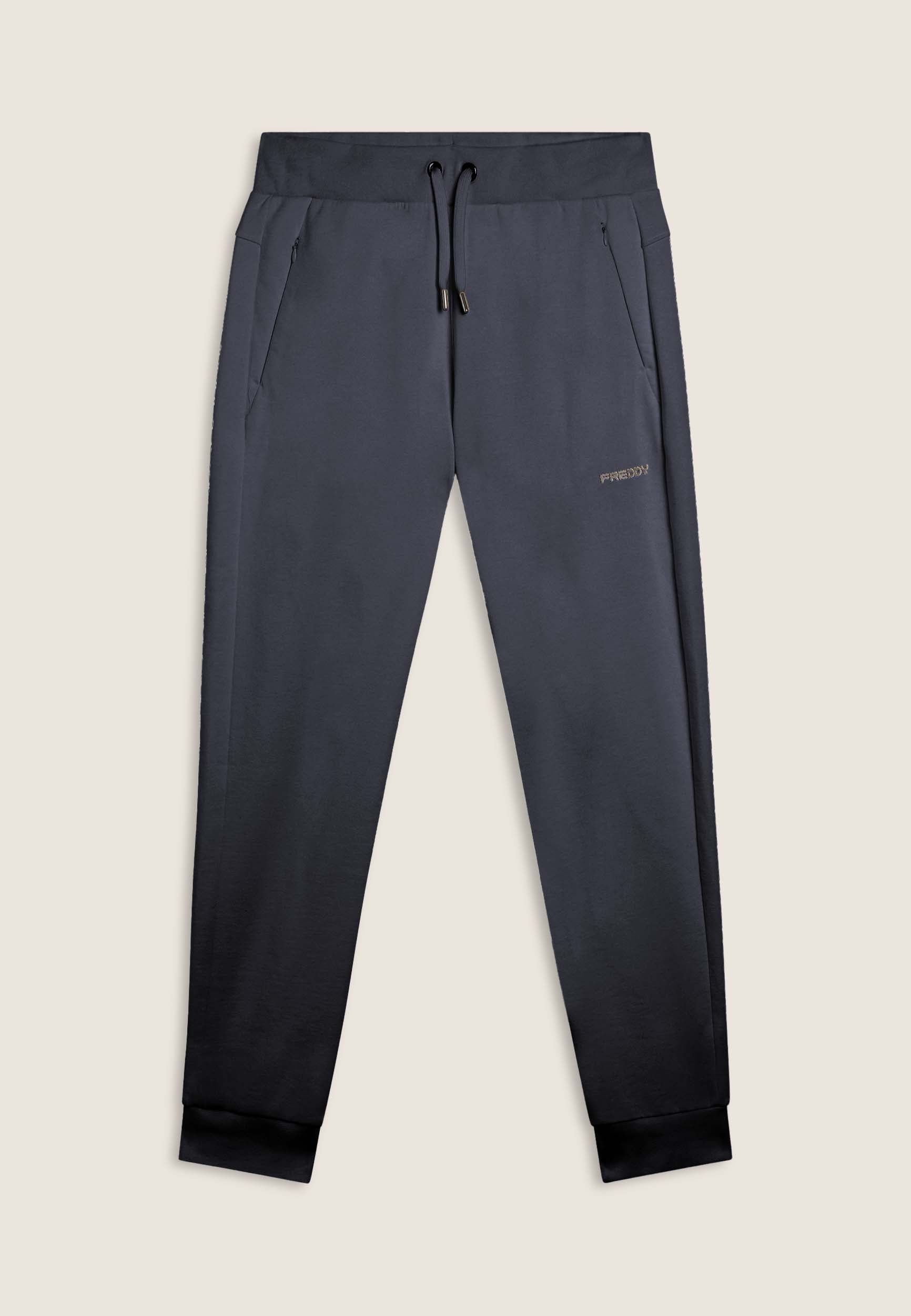 Men's regular cut joggers with rib-knit cuffs and elasticated drawstring waist. The 100% cotton brushed fleece fabric ensures softness and prolonged comfort. They have front slash pockets and a small FREDDY logo on the side. A versatile garment perfect for all times of the day.