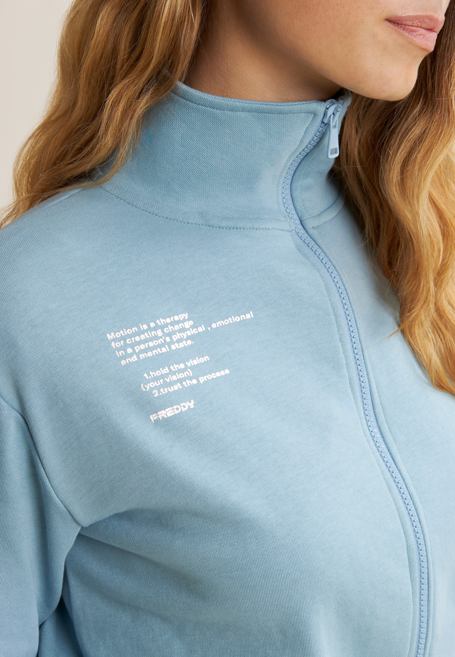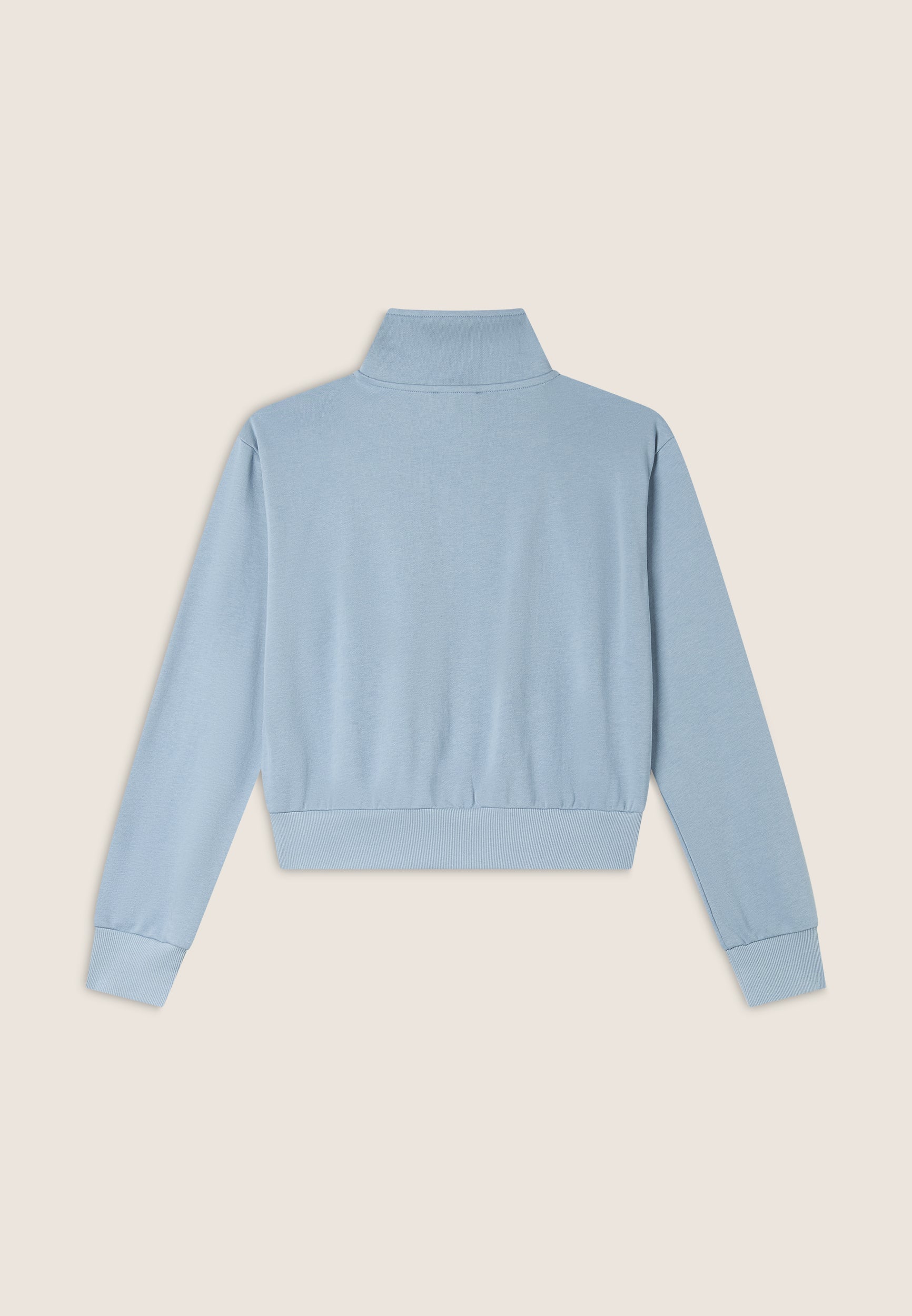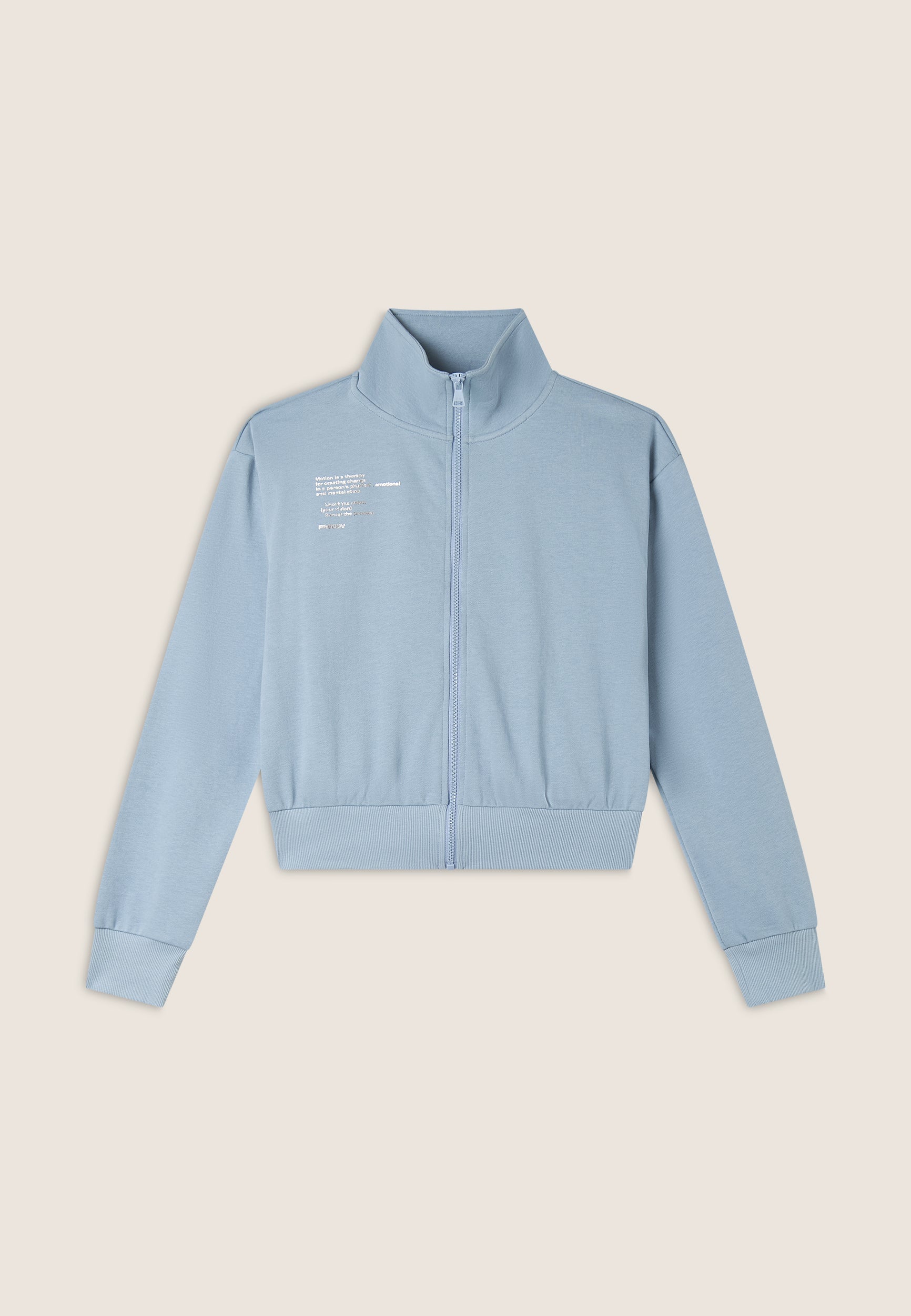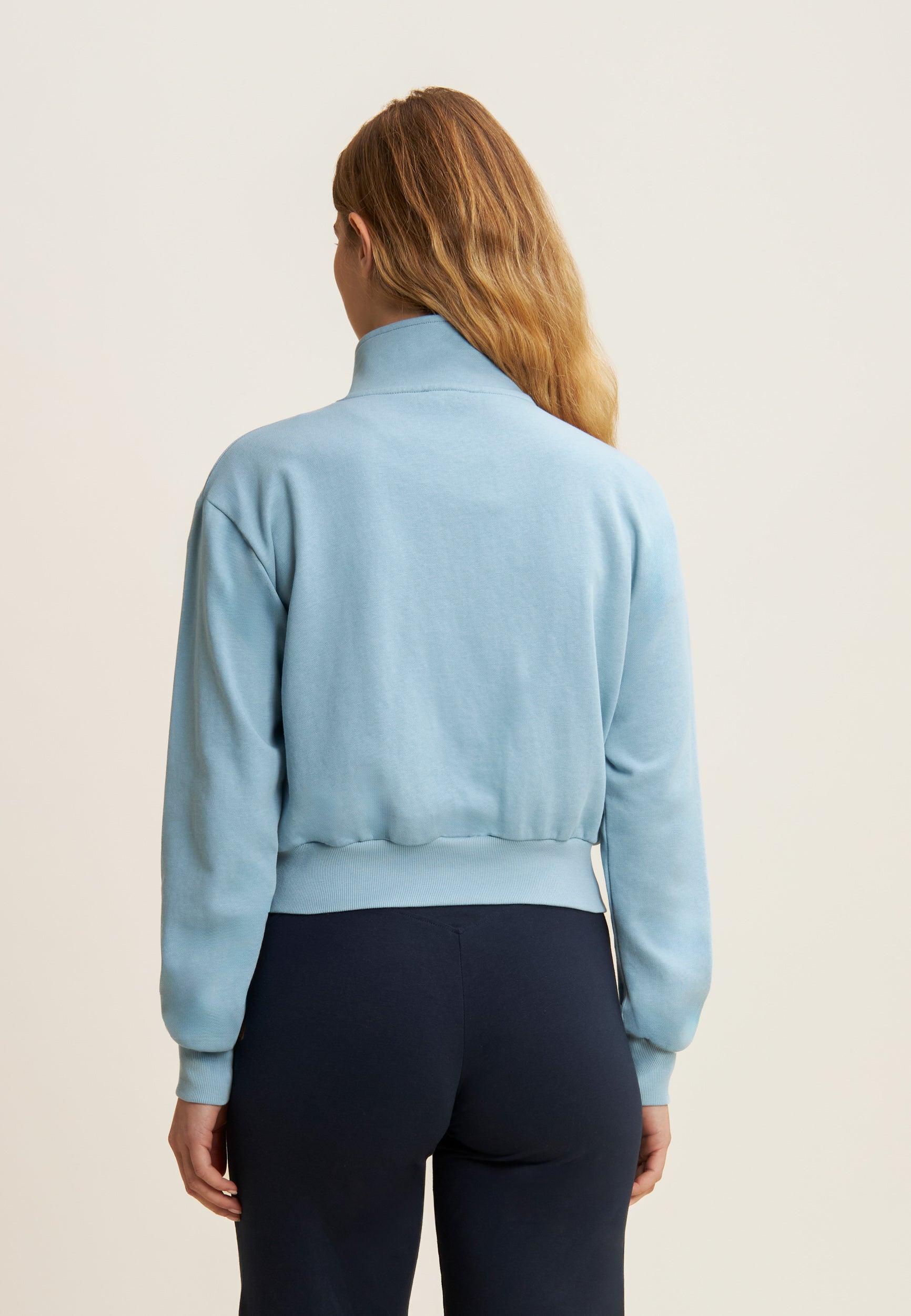 Regular fit sweatshirt in French terry with a contemporary design, cropped length and a high, narrow hem band to give movement to the fabric. The high neck and zip fastening provide a sophisticated look, while the long sleeves with cuffs and the printed graphic on the left side add unique details.
