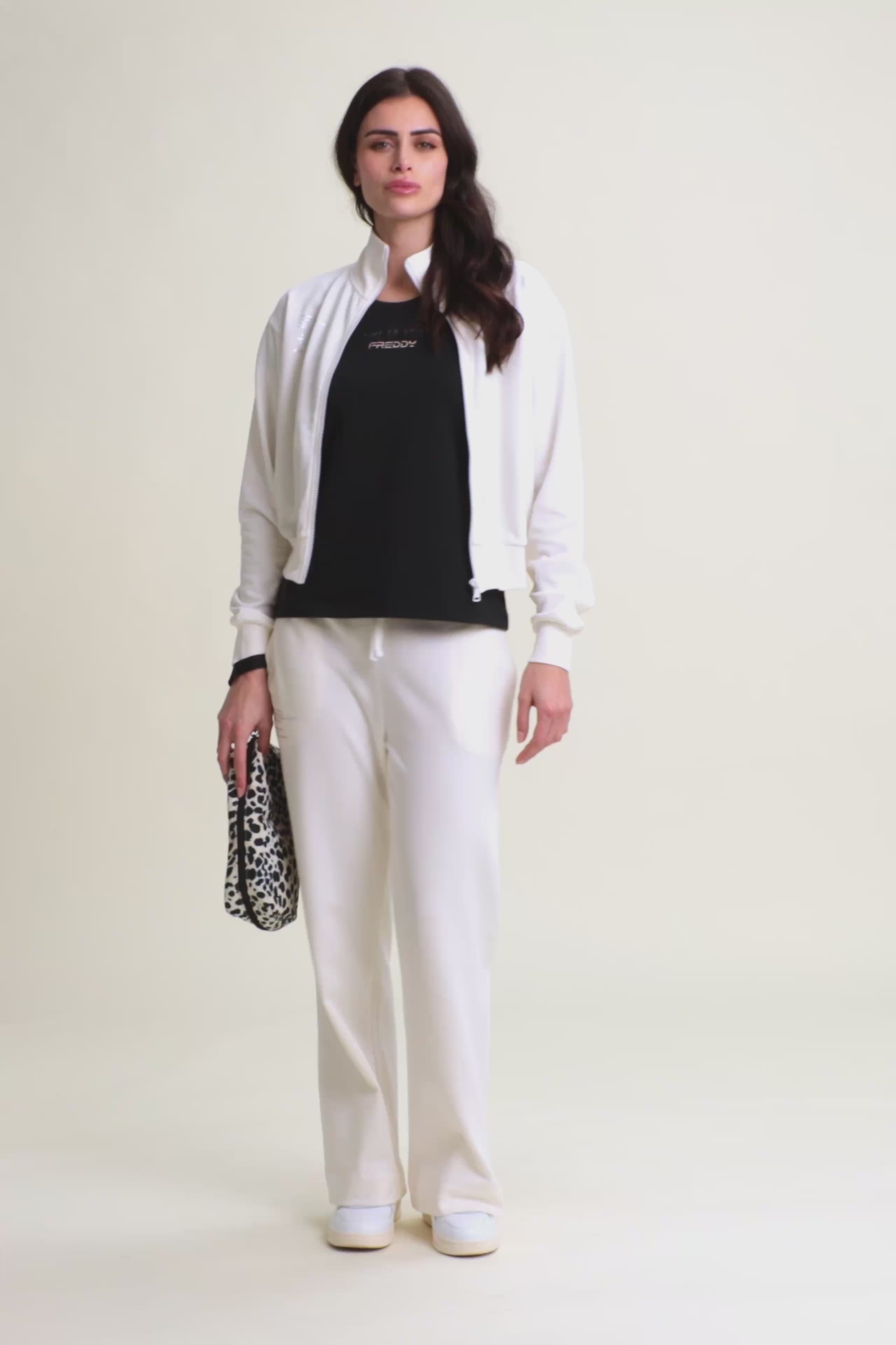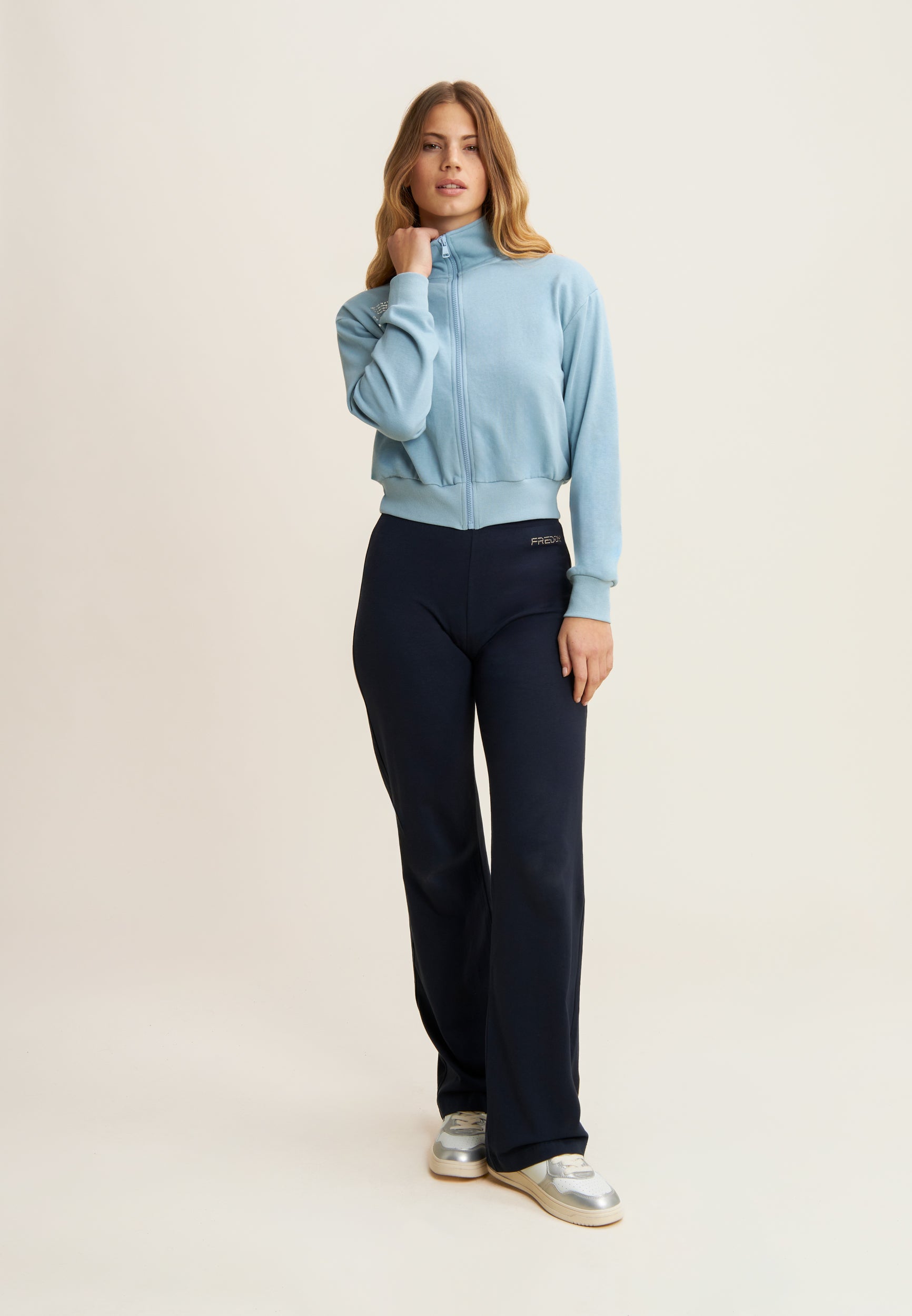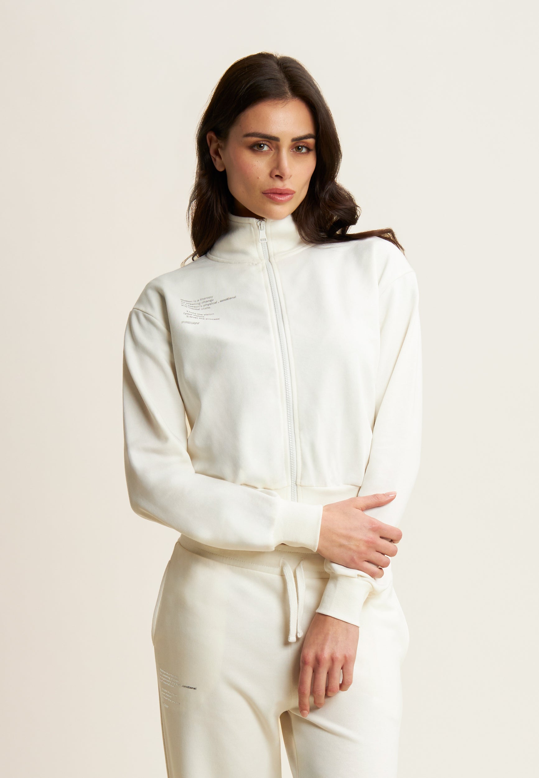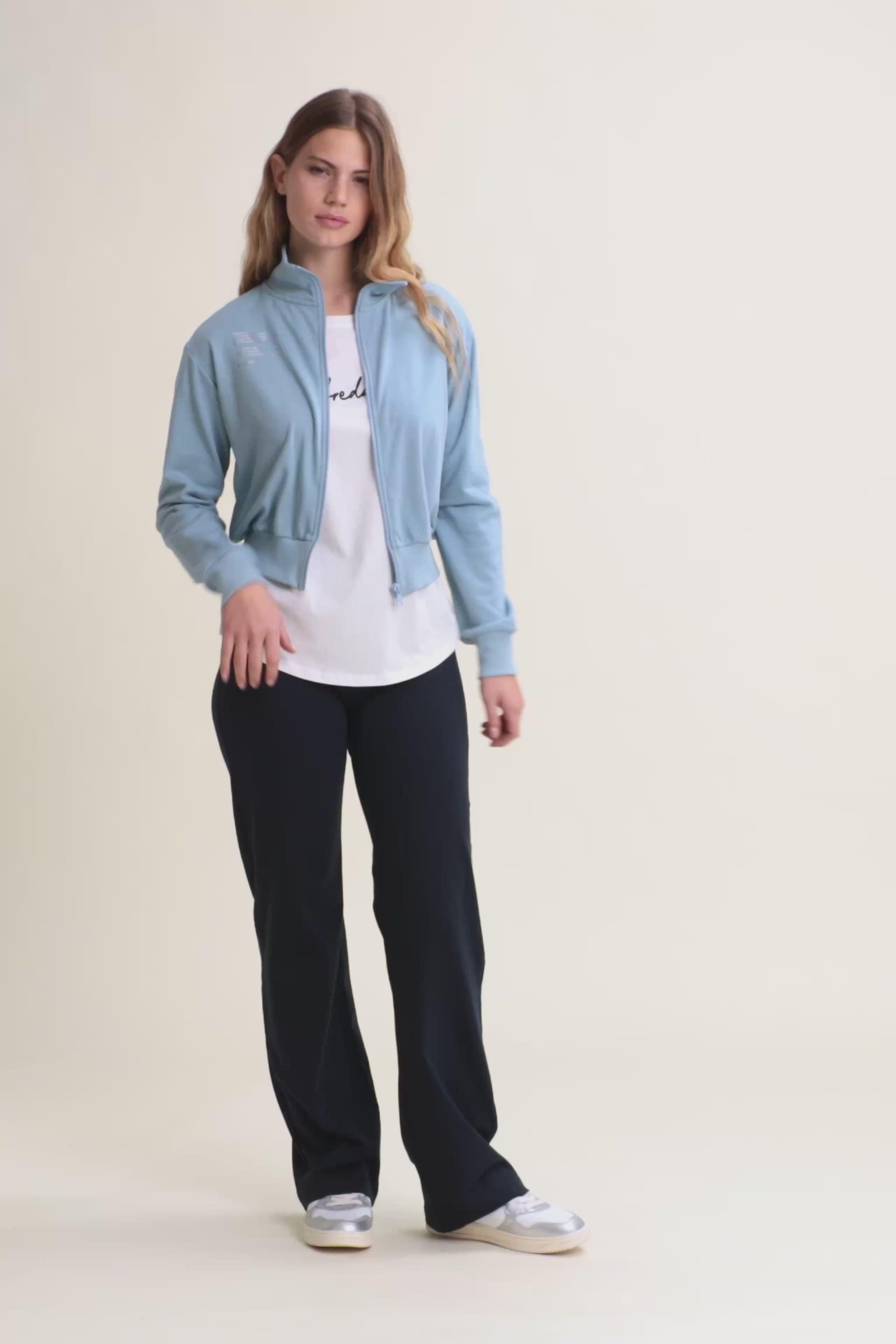 Regular fit sweatshirt in French terry with a contemporary design, cropped length and a high, narrow hem band to give movement to the fabric. The high neck and zip fastening provide a sophisticated look, while the long sleeves with cuffs and the printed graphic on the left side add unique details.