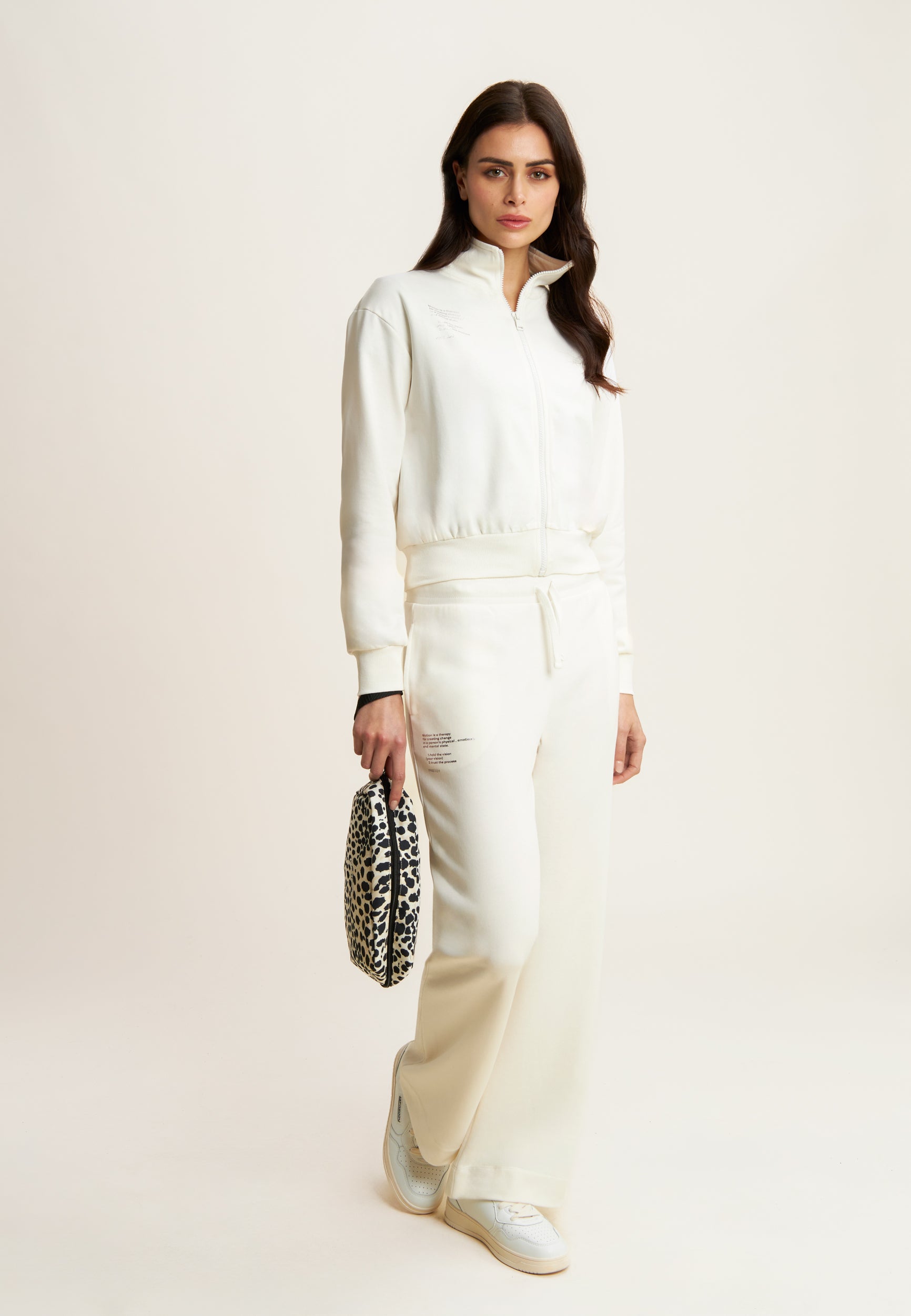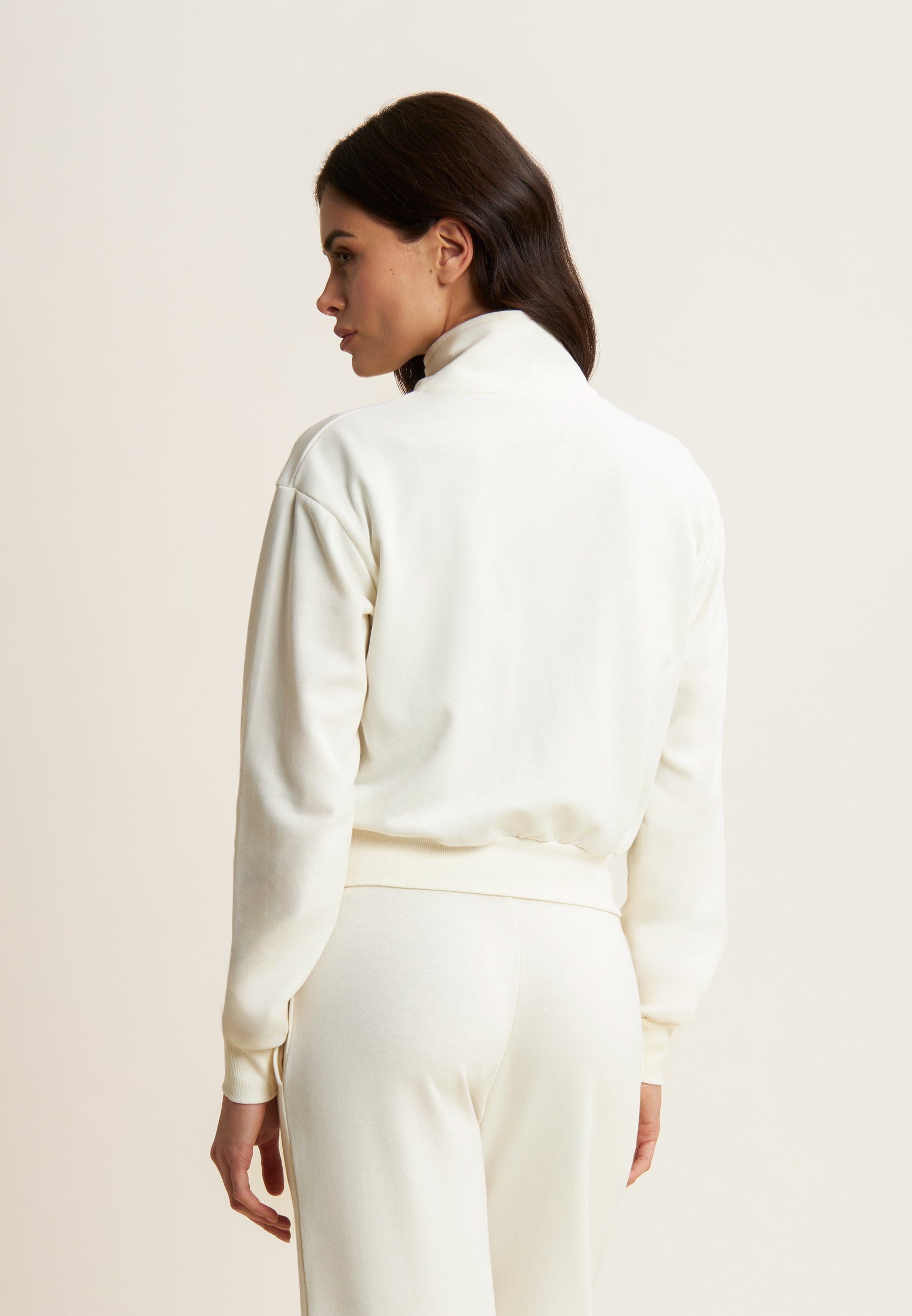 Cropped French terry turtleneck sweatshirt with zip