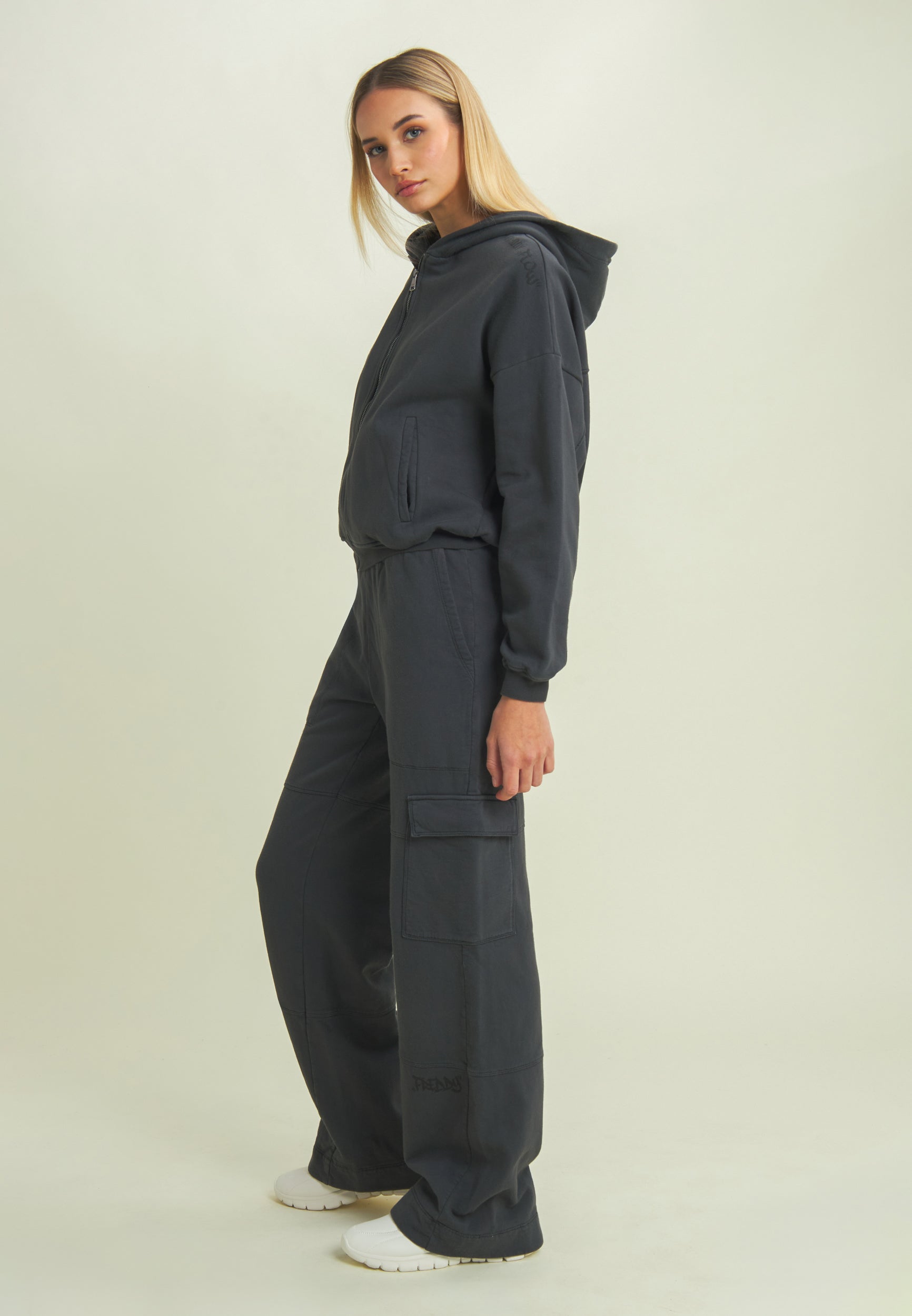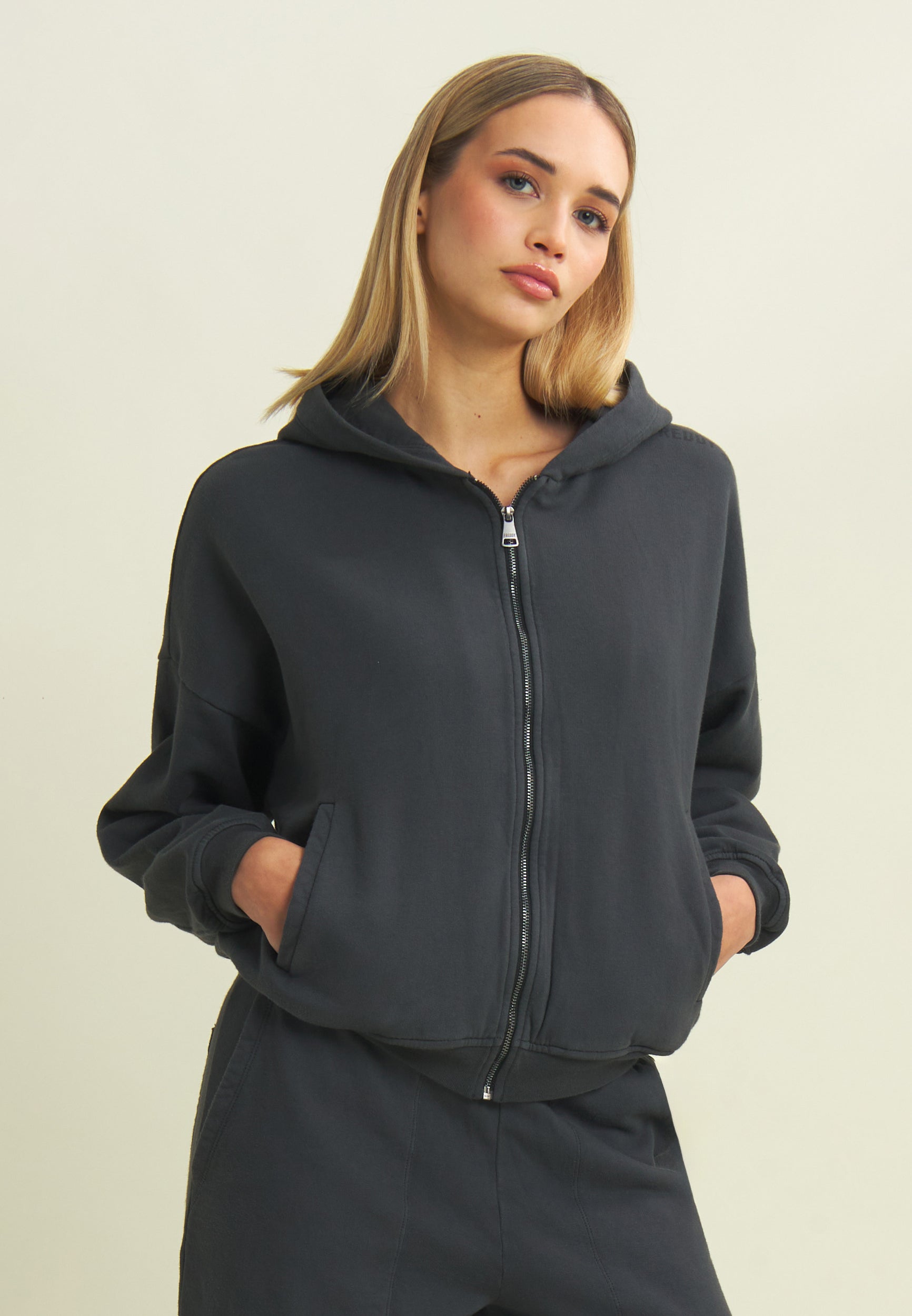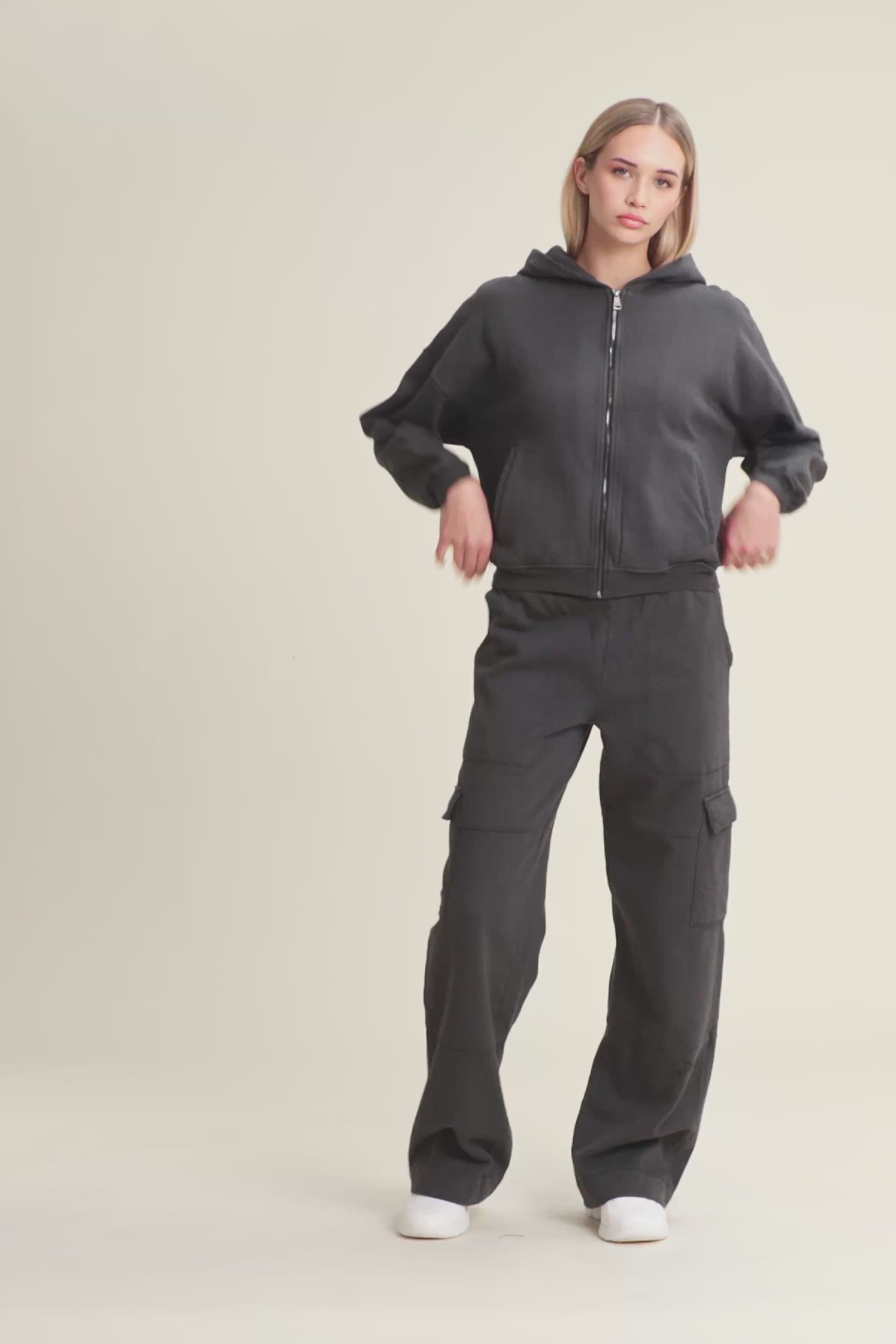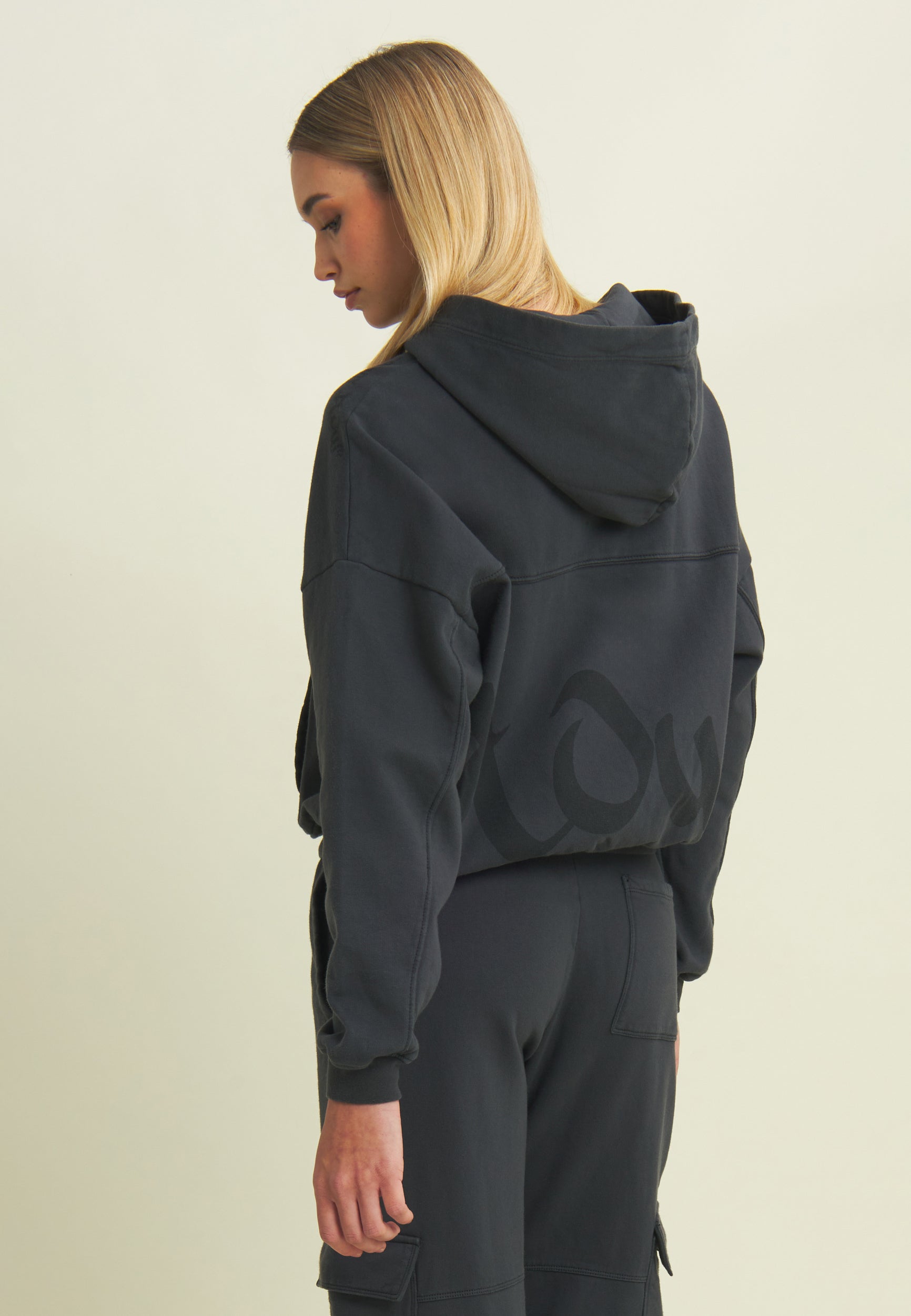Comfortable, warm and super street: this oversized cropped full-zip sweatshirt mixes urban style with cool details. The large "Flow" print on the back and FREDDY logo on the left shoulder create a look that stands out. The brushed fleece, dyed with enzymes, provides bright colours and crazy comfort. Lined hood, besom pockets and oversized fit for relaxed everyday wear.