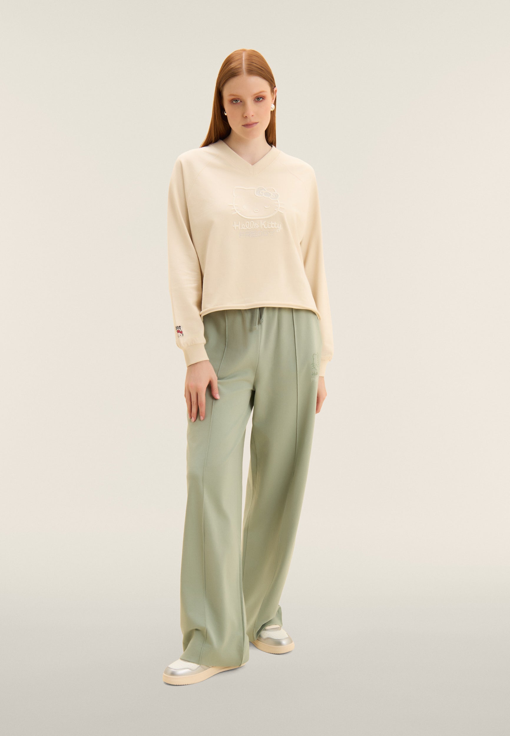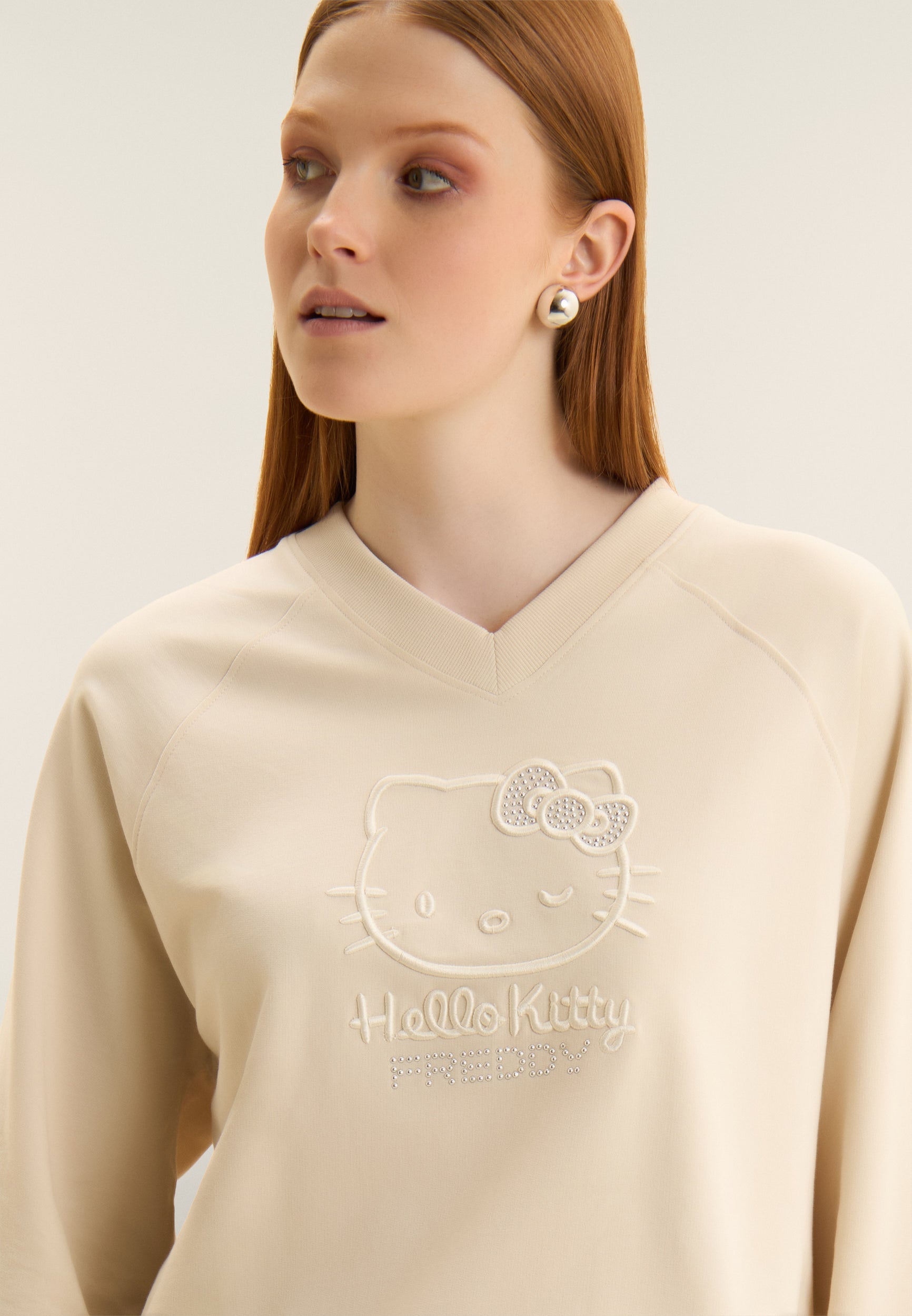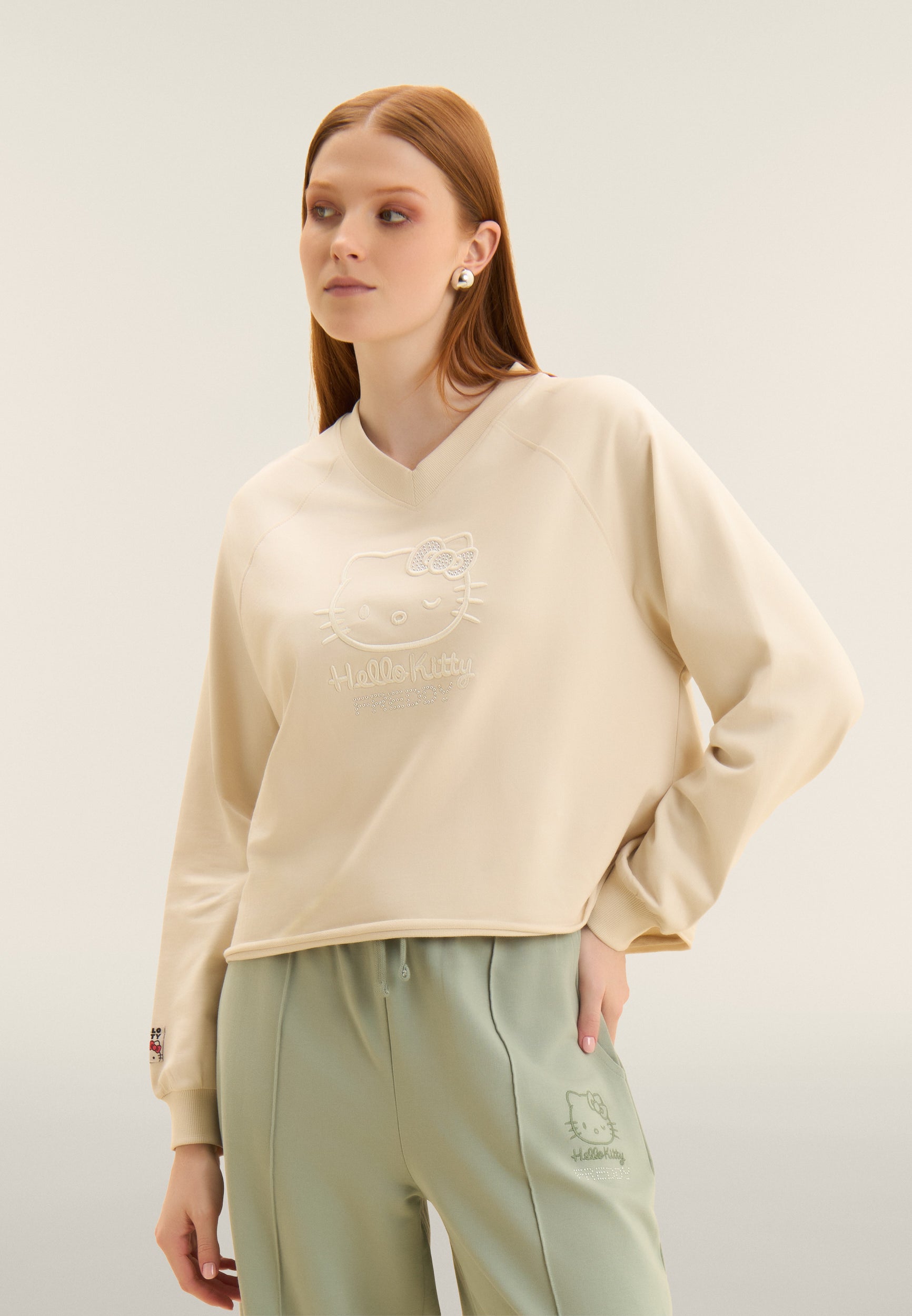 Cropped sweatshirt with V-neck and Hello Kitty embroidery