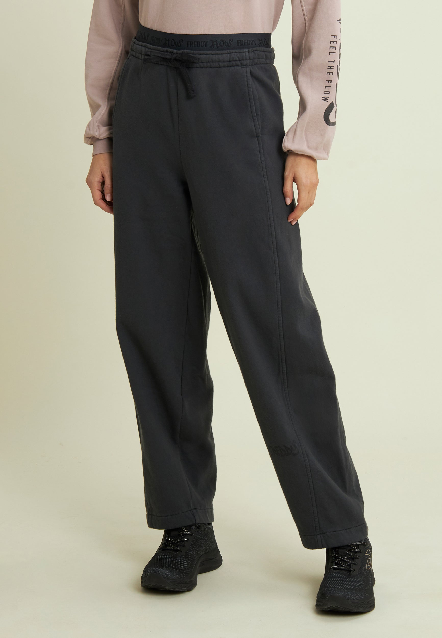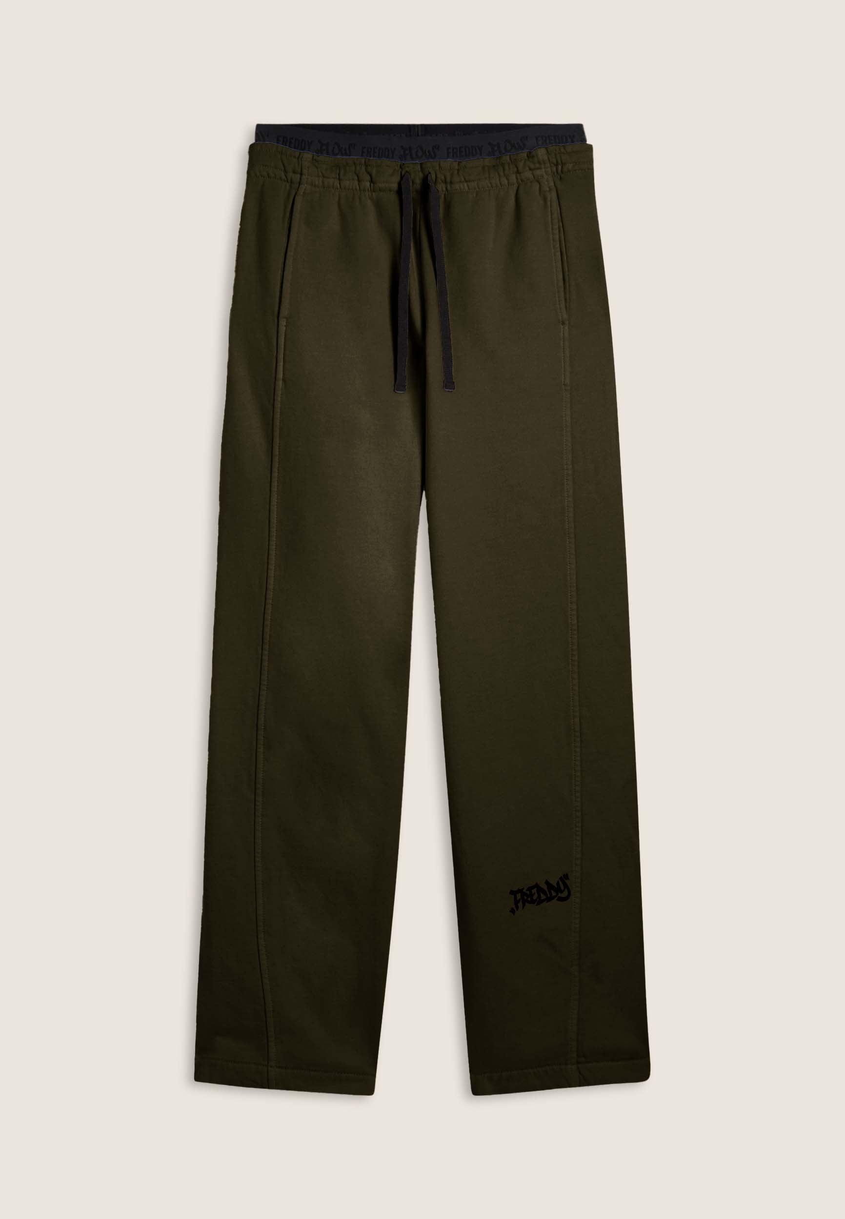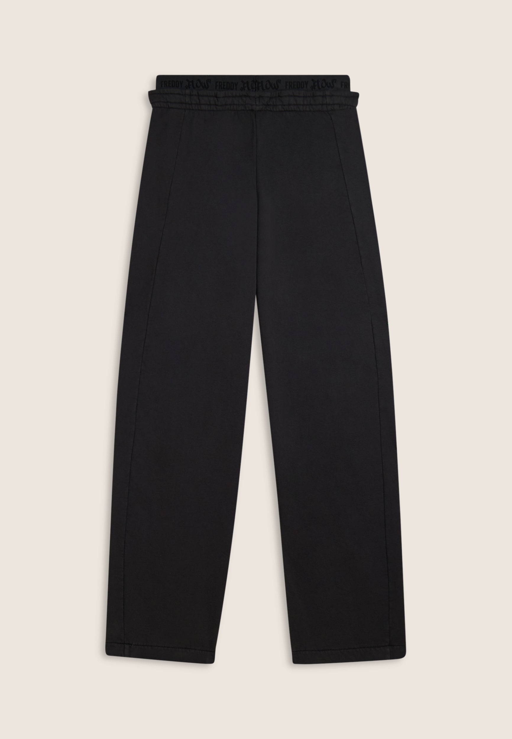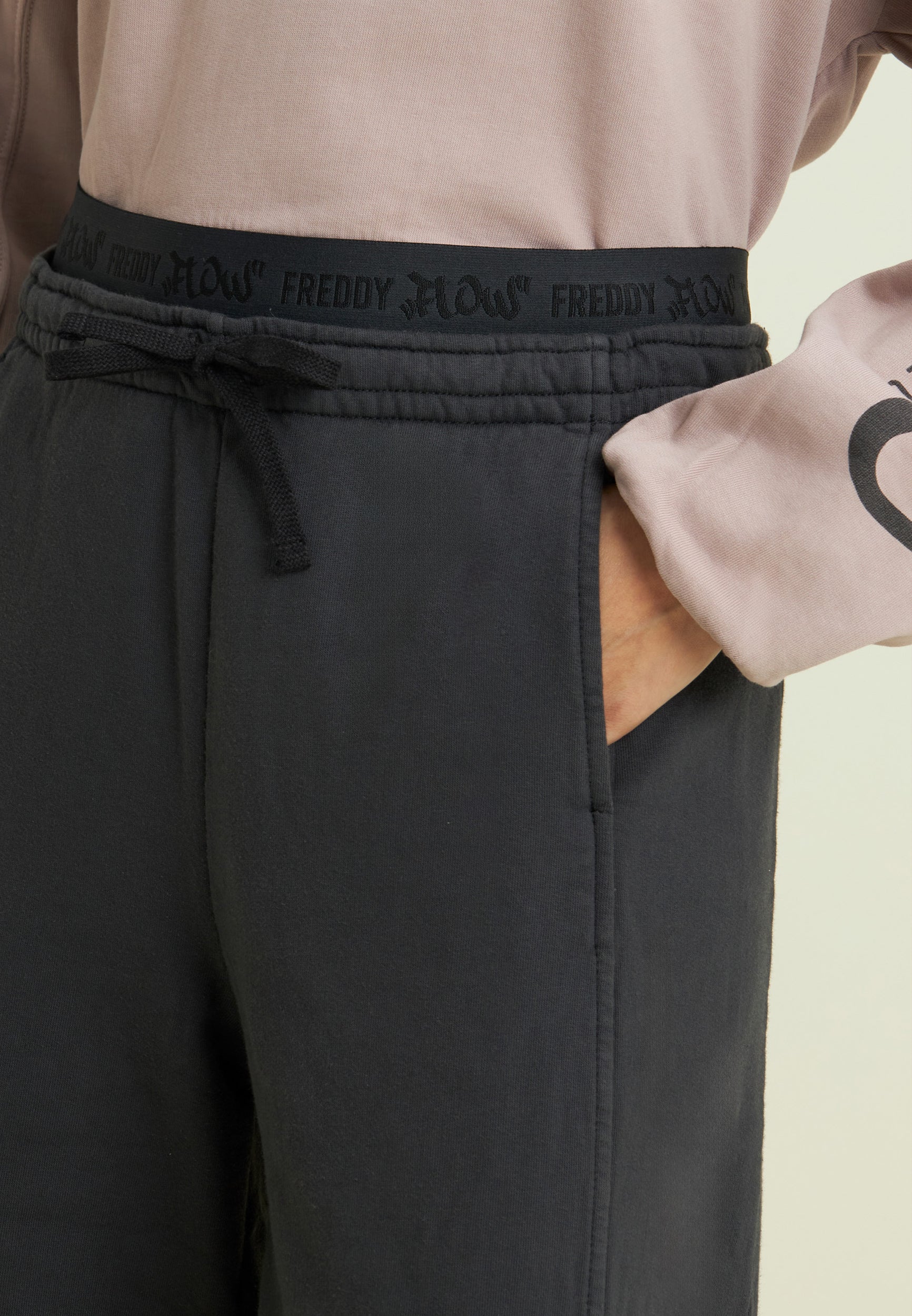 Comfort and urban style come together in these balloon fit trousers. The regular waist with logoed jacquard elastic and drawstring gives a sporty touch, while the small FREDDY street art logo below the knee completes the look. The brushed fleece, garment-dyed with enzymes, adds vivid colours and a softness that does not go unnoticed. Perfect for creating comfortable and versatile streetwear outfits.