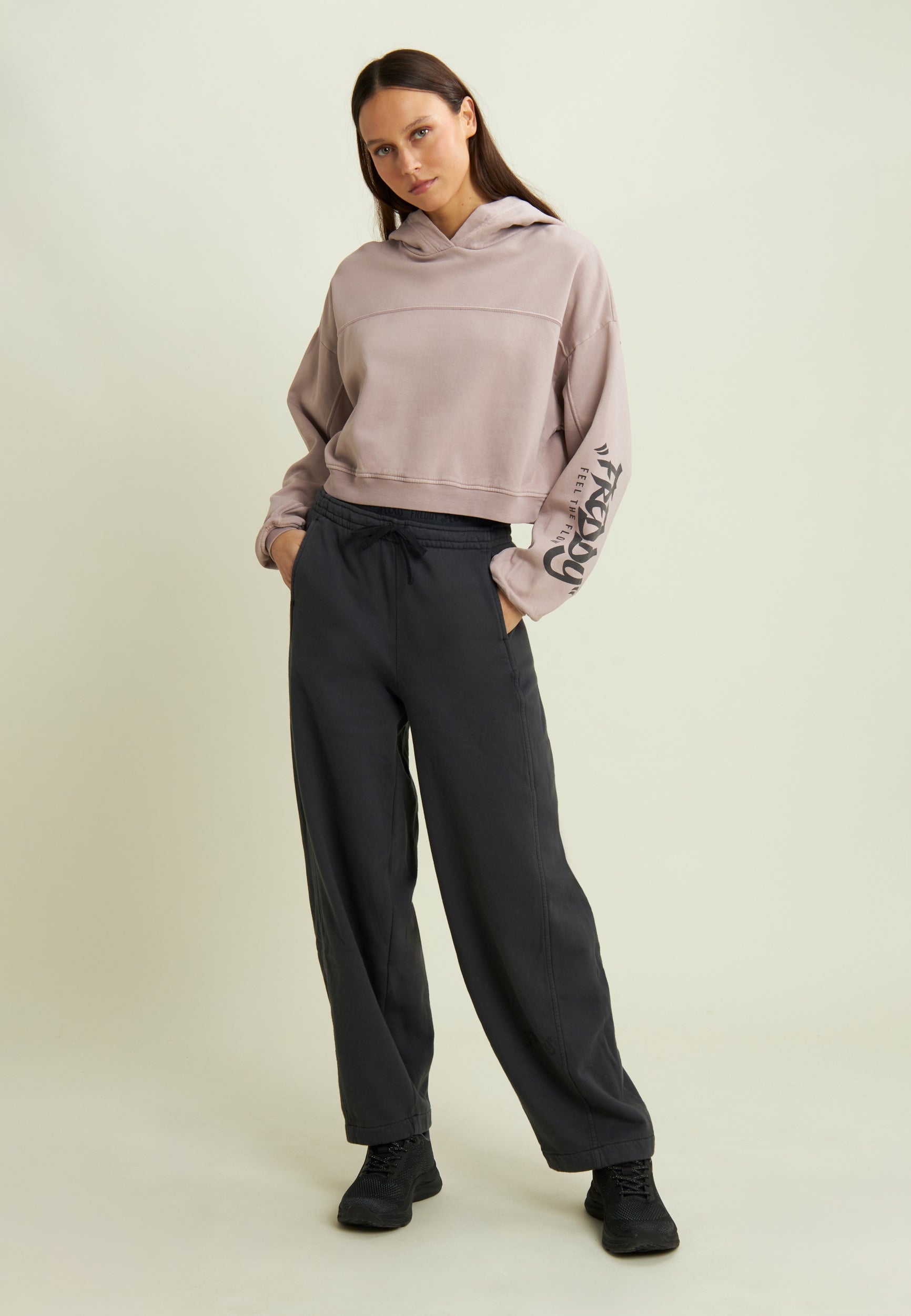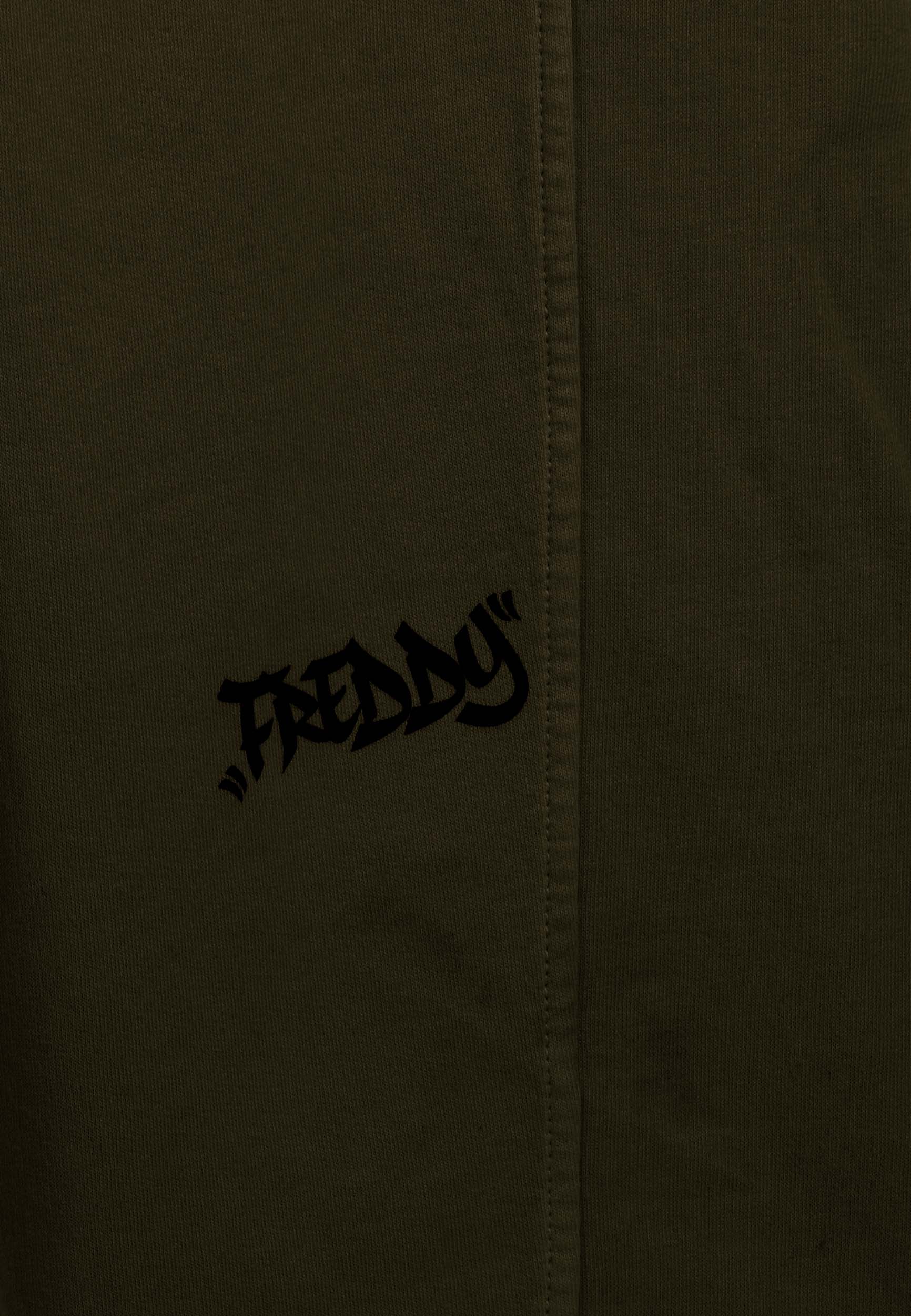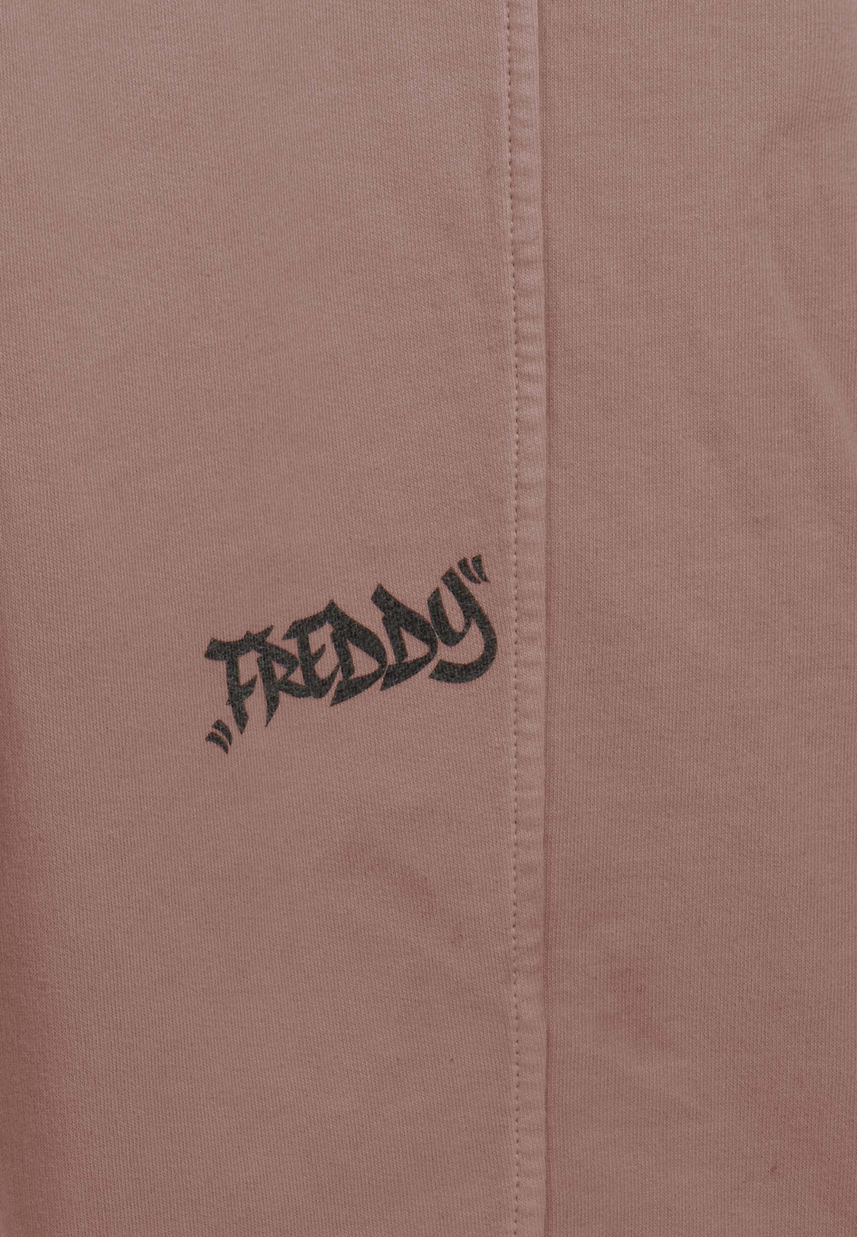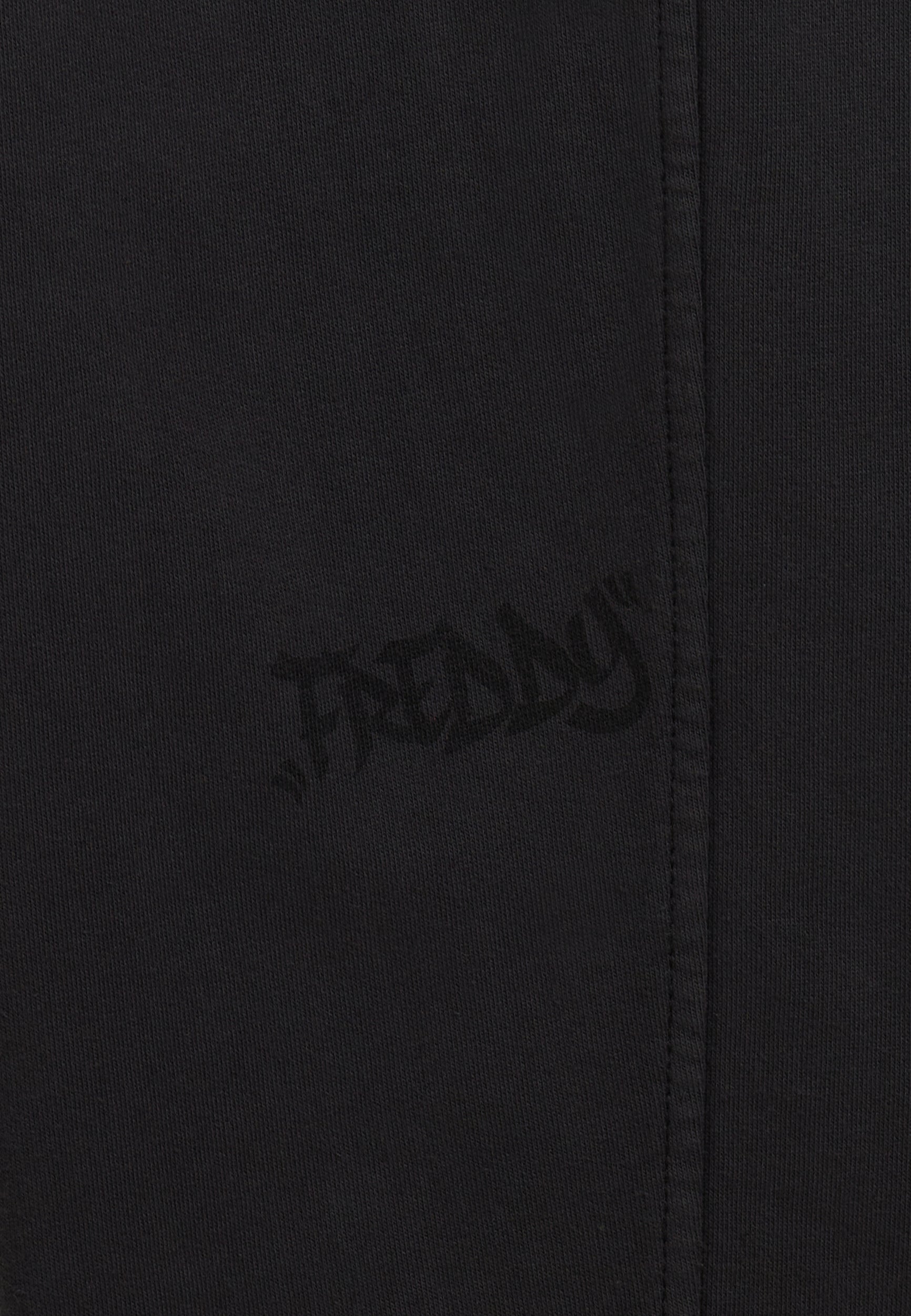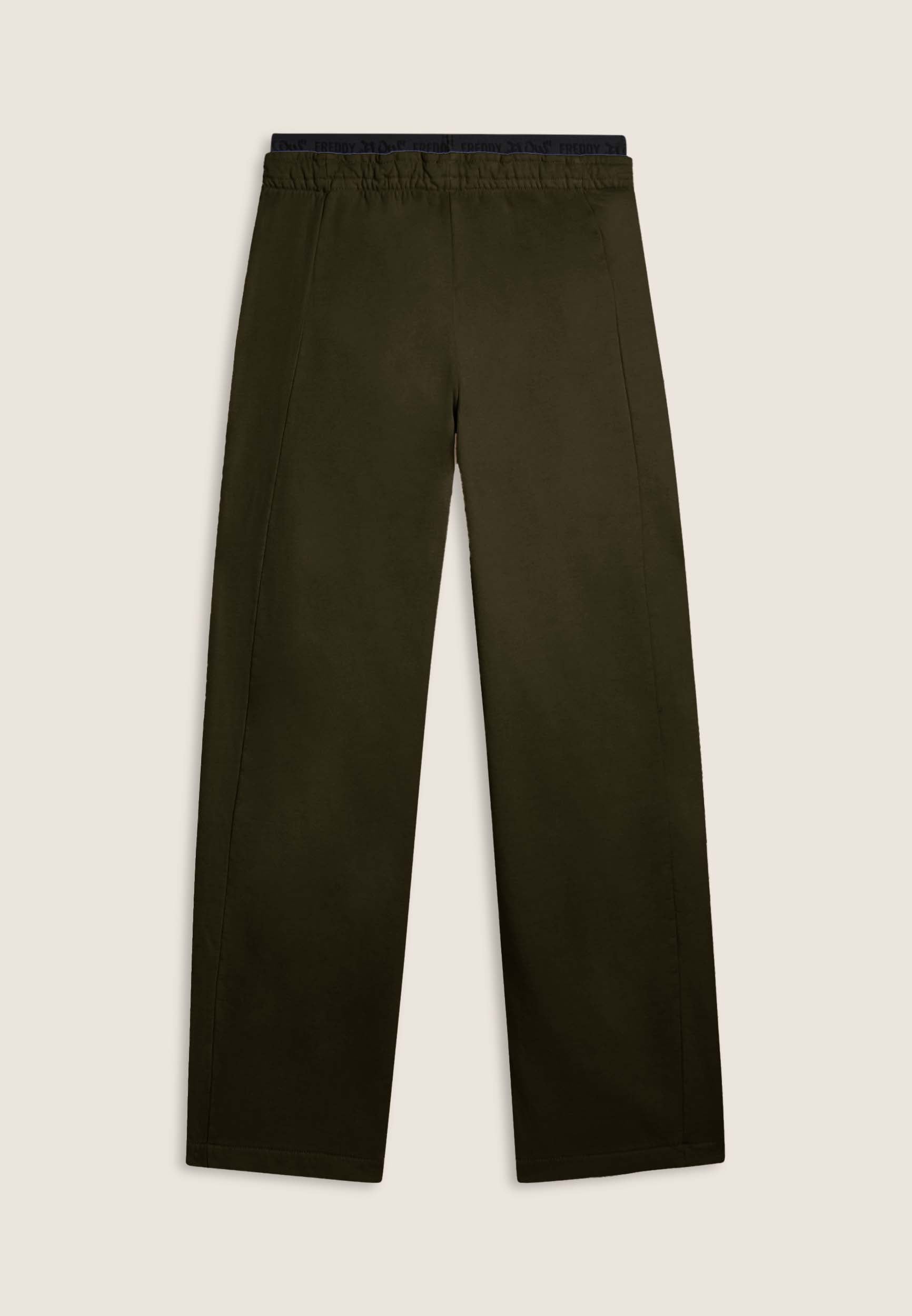 Comfort and urban style come together in these balloon fit trousers. The regular waist with logoed jacquard elastic and drawstring gives a sporty touch, while the small FREDDY street art logo below the knee completes the look. The brushed fleece, garment-dyed with enzymes, adds vivid colours and a softness that does not go unnoticed. Perfect for creating comfortable and versatile streetwear outfits.