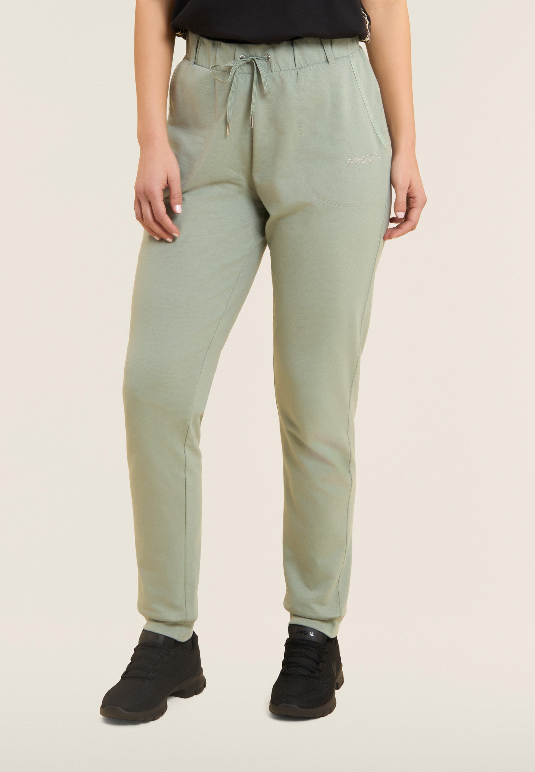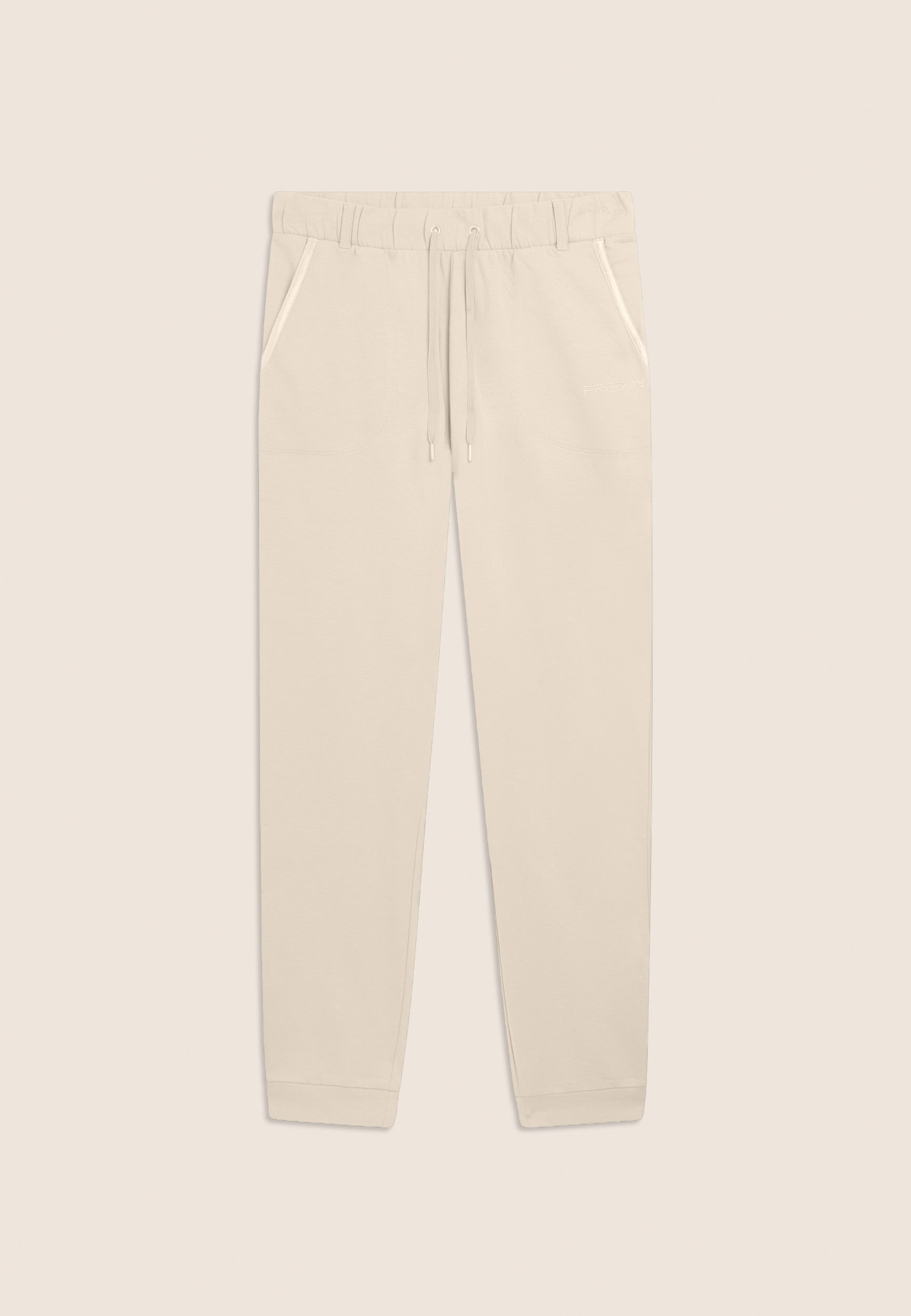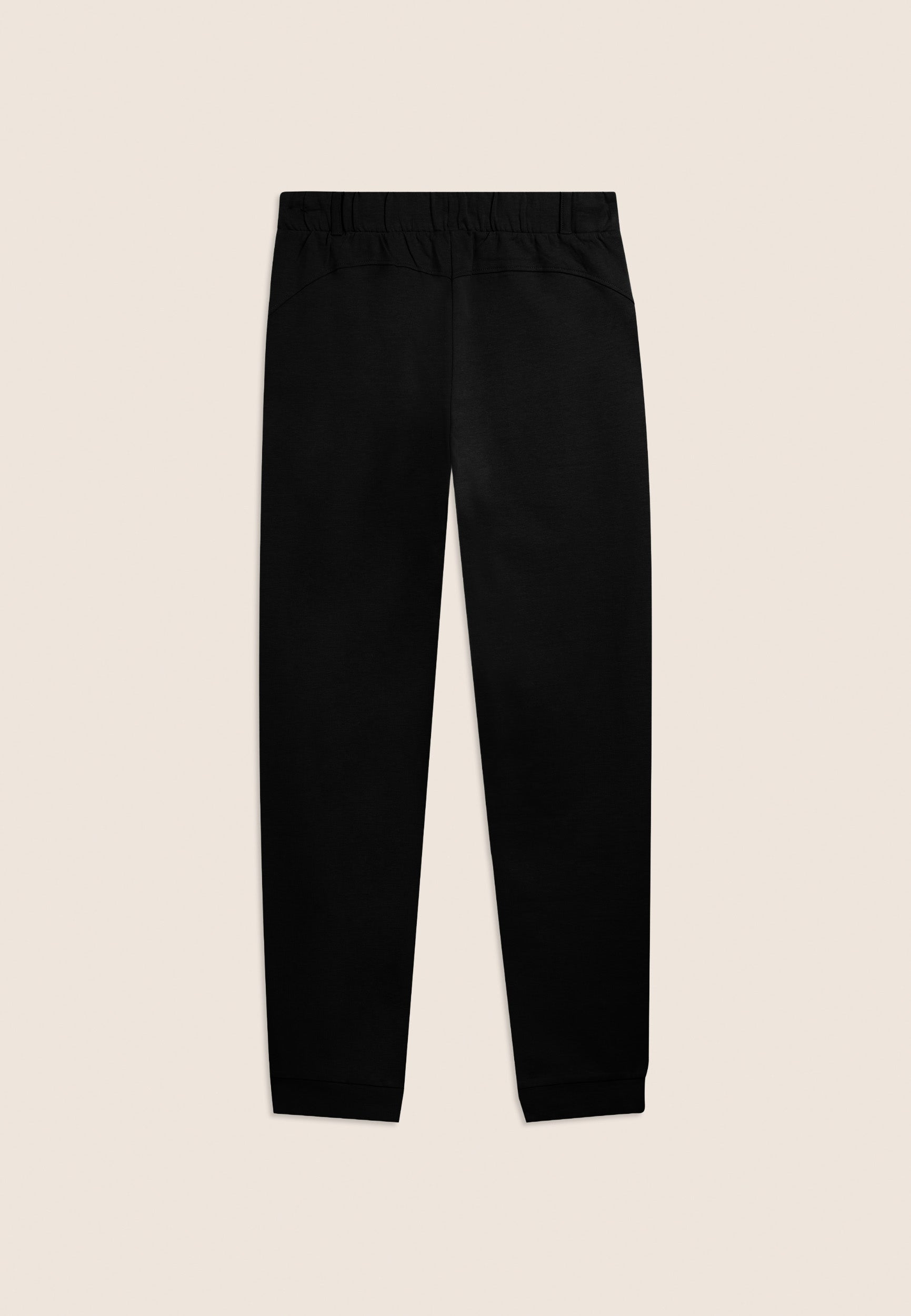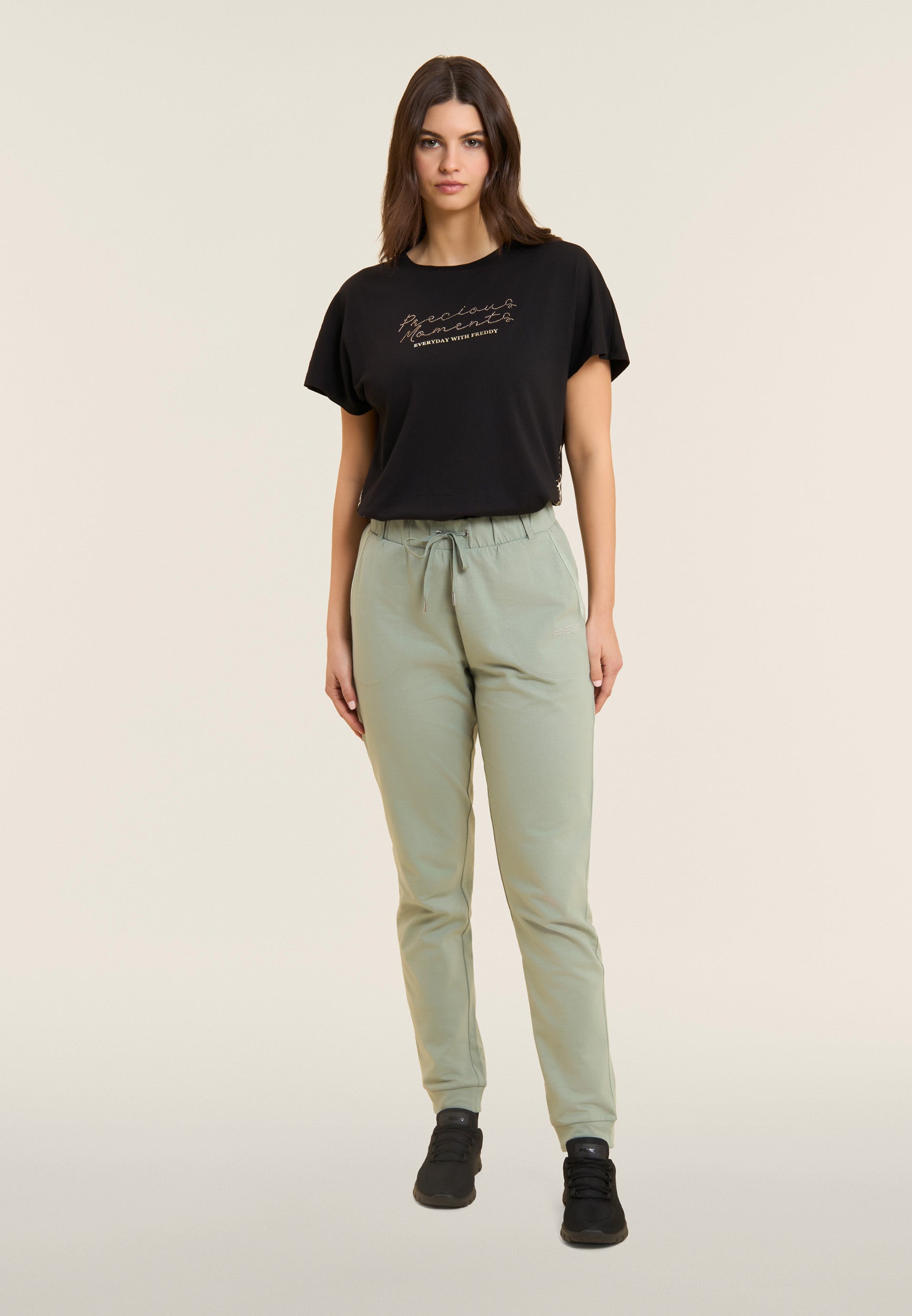 Athletic trousers with a regular fit and cuffed hem, ideal for a dynamic and comfortable look. The regular waist with belt loops and drawstrings ensures a customisable fit. The FREDDY logo on the left pocket, composed of light pink beads, adds a distinctive touch. Front camp pockets, with an opening edged with shiny elastic, complete the design. Made of heavy cotton stretch jersey, they are perfect for leisure and light exercise.