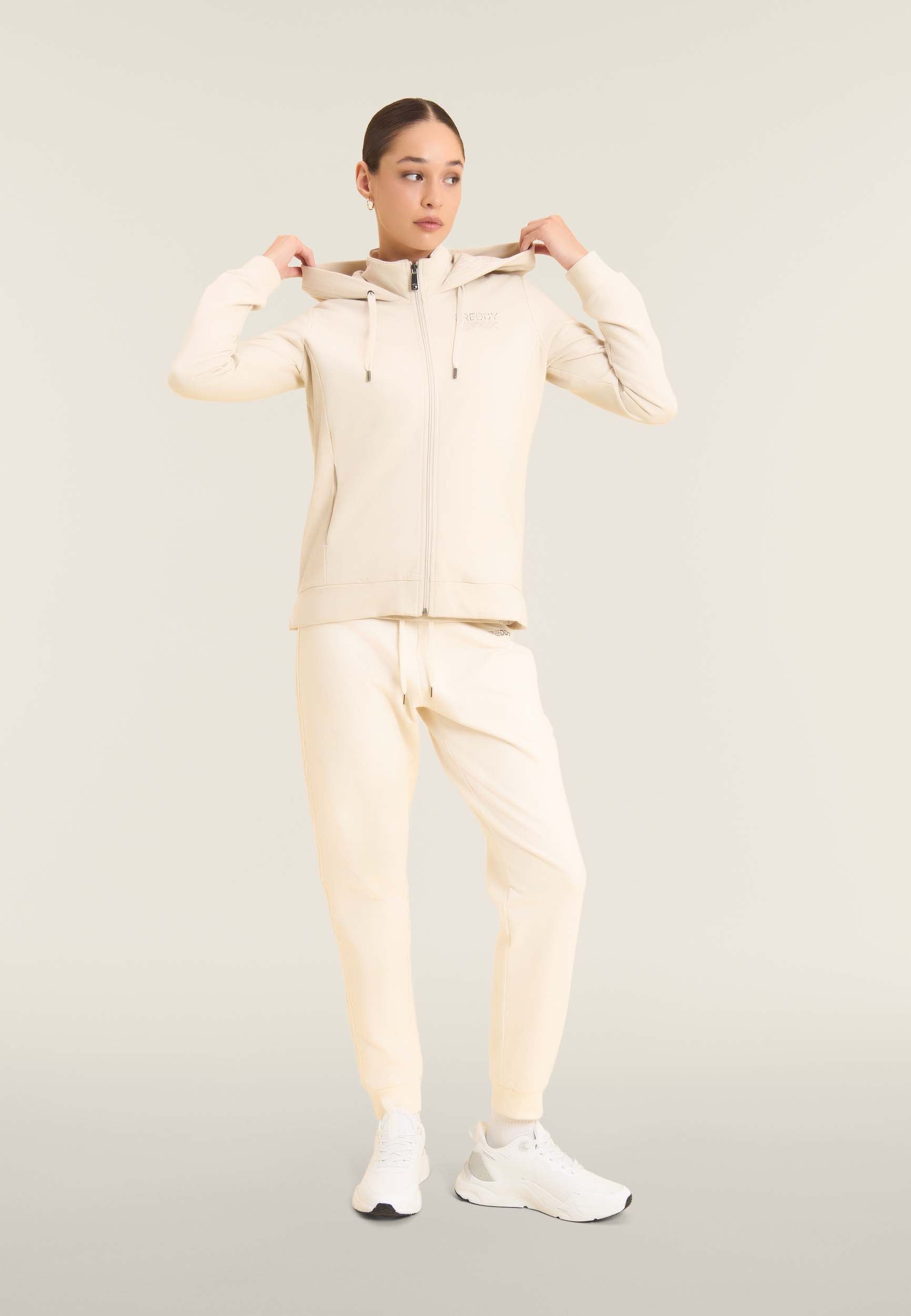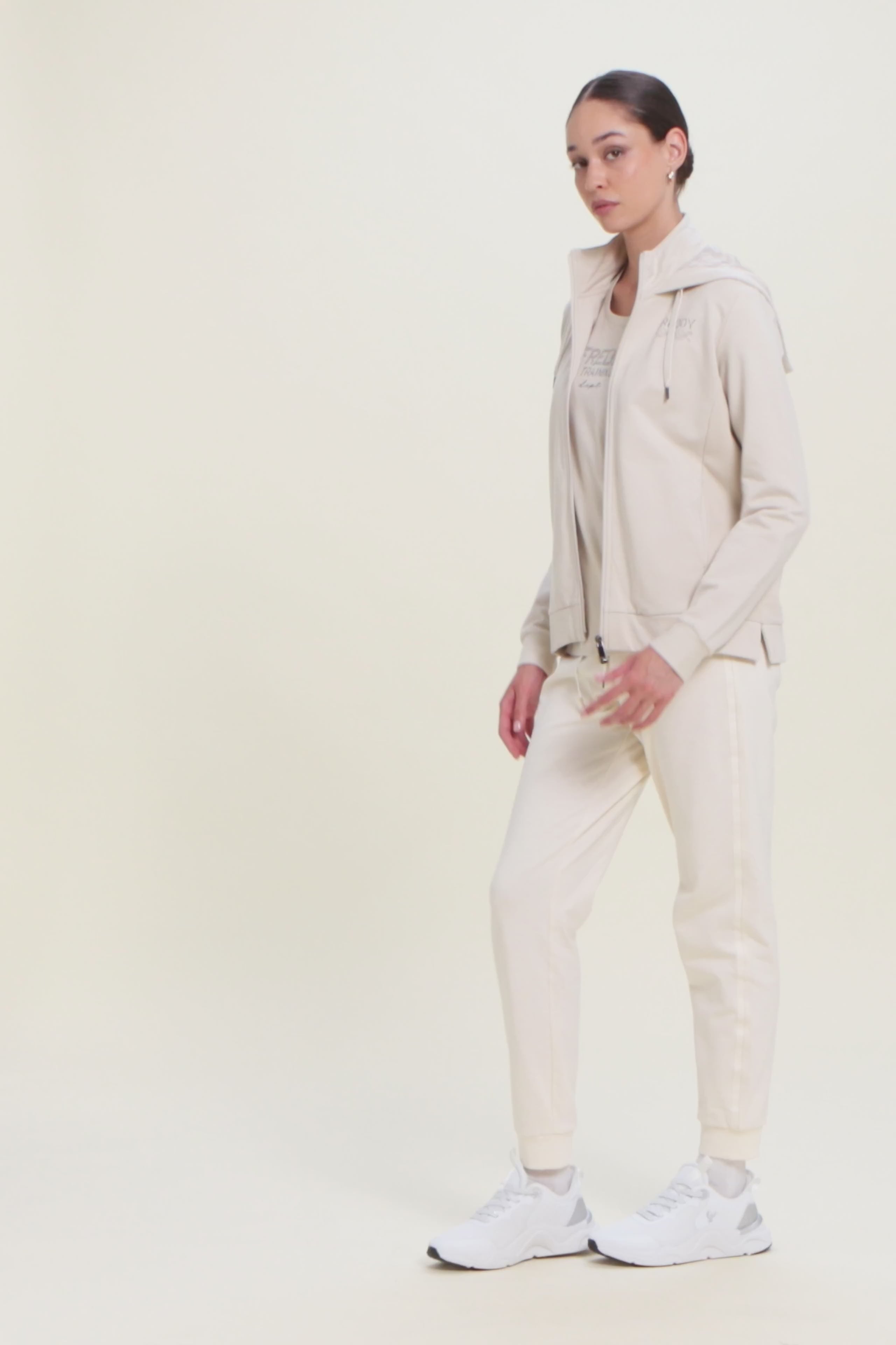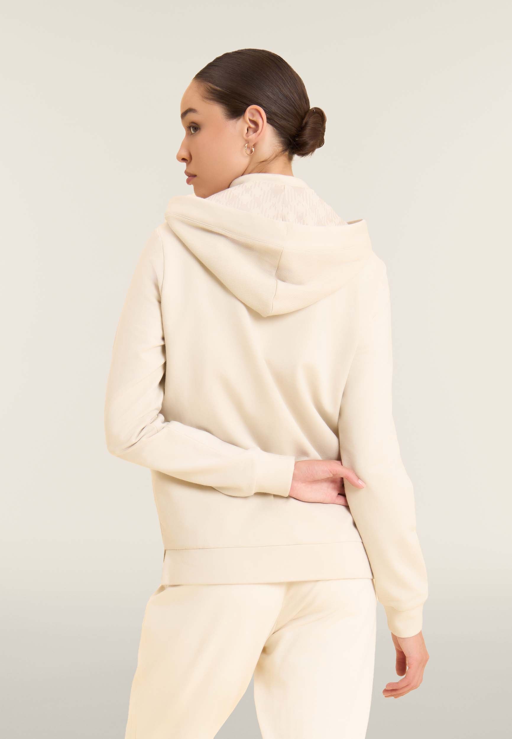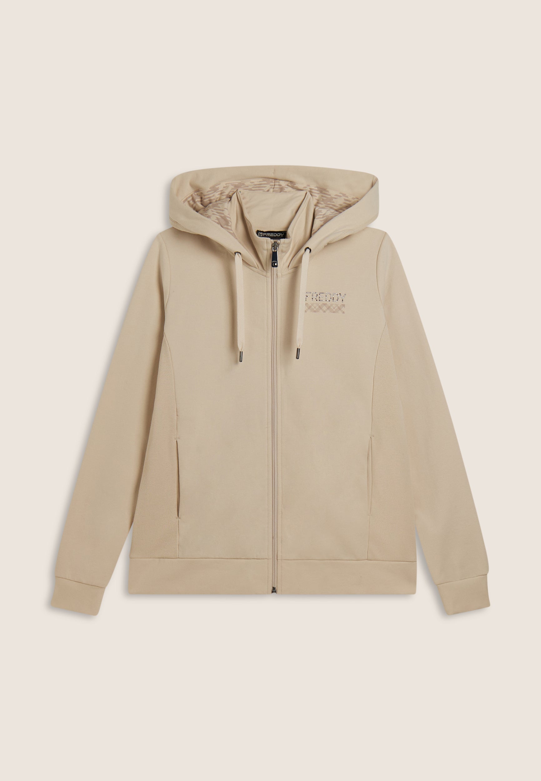 Full-zip sweatshirt with side vents at the bottom, geometric print jersey doubled hood and ribbed outer lining. Integrated turtleneck, ribbed side inserts and FREDDY studded logo complete the garment, together with besom pockets.