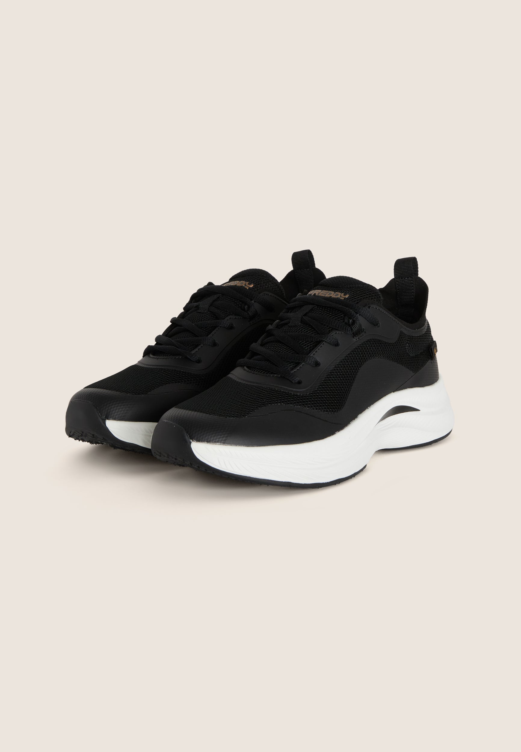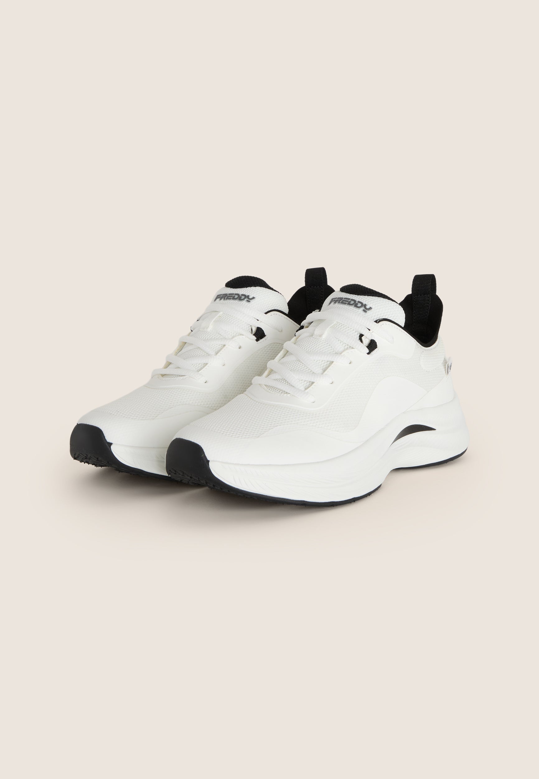 Men's sports shoes with mesh upper and TPU coating offer breathability and support. Equipped with an insert on the ankle that makes it easier to put on, the fabric laces allow optimal adjustment. The removable ergonomic insole ensures lasting comfort, while the non-slip rubber tread guarantees a secure grip. The Freddy logo, placed on the outside of the heel and on the tongue, adds a distinctive touch. Perfect for light sports activities and a practical look.