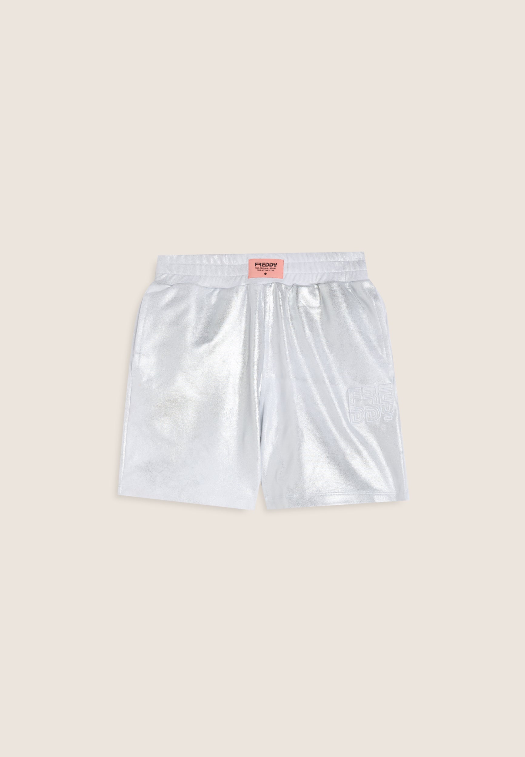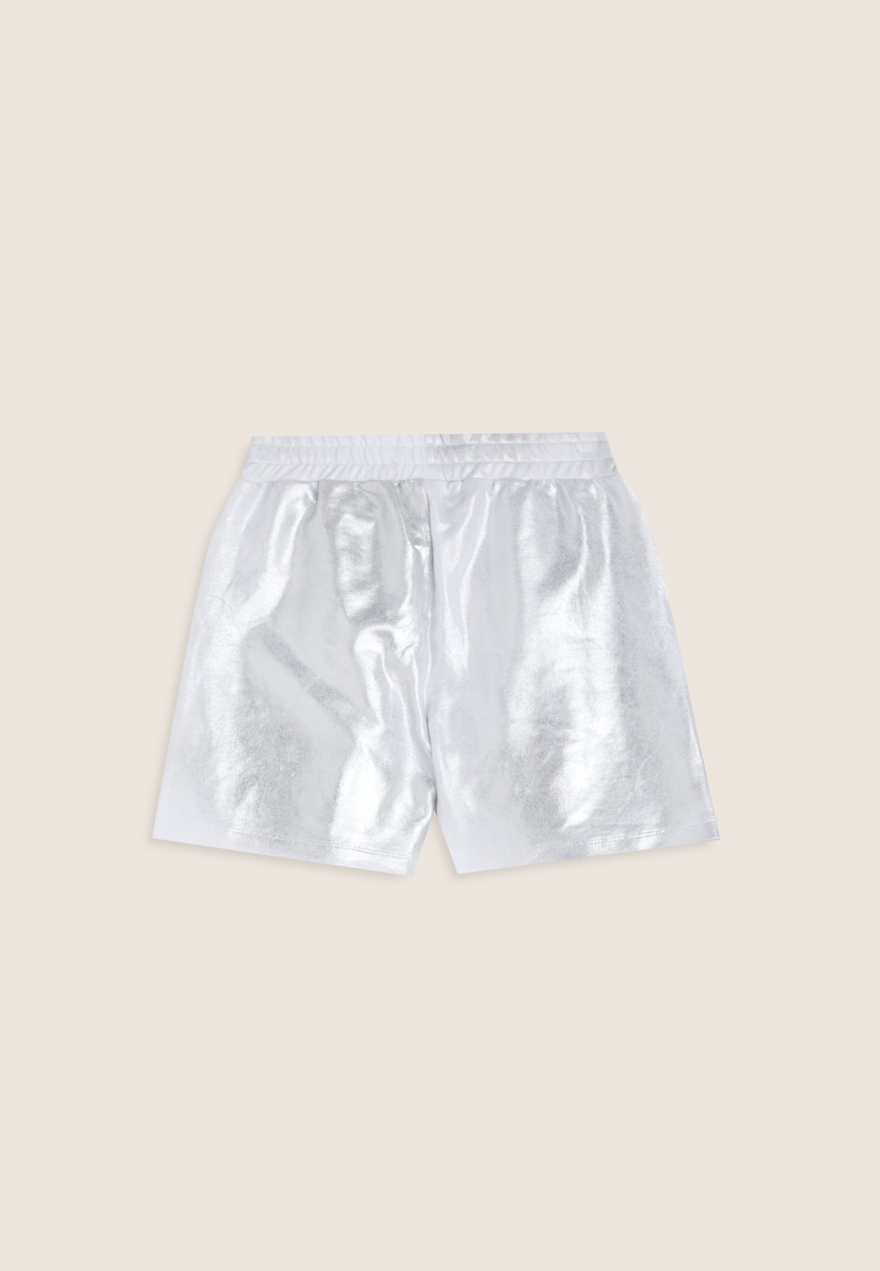Dal look moderno e luminoso, questi shorts da bambina sono realizzati in cotone coated con finitura argentata, per un effetto brillante che non passa inosservato. Il design presenta fondo dritto, elastico interno in vita per una vestibilità comoda e tasche interne pratiche. A impreziosire il capo, il logo FREDDY ricamato sul fianco sinistro e l’etichetta con logo applicata in vita, per un dettaglio distintivo che unisce funzionalità e stile.