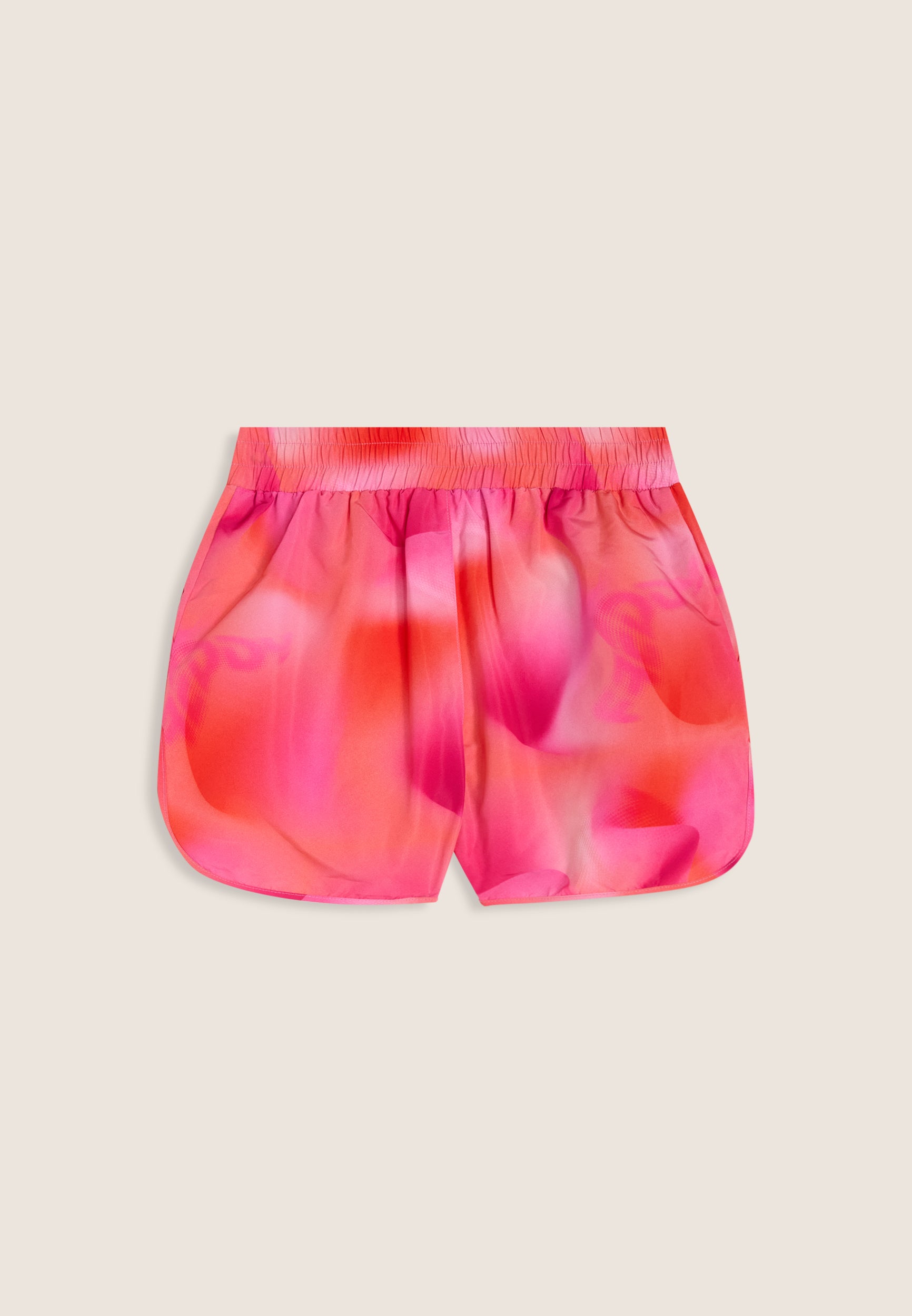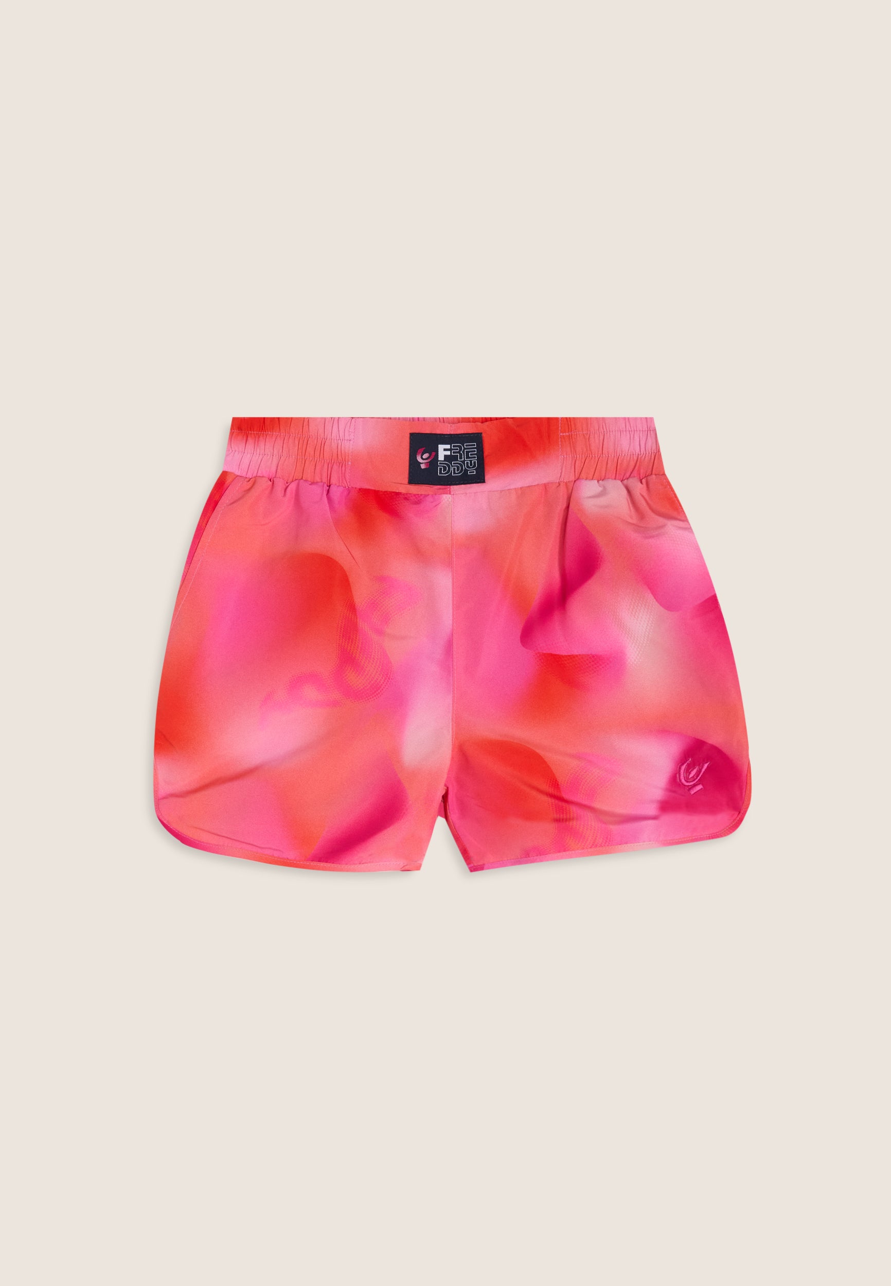 Freschi e leggeri, questi shorts da bambina in tessuto tecnico sono perfetti per le giornate più attive. La fantasia all-over sfumata nei toni rosa e arancio dona un look vivace e contemporaneo. Il design presenta elastico interno in vita per una vestibilità confortevole, fondo leggermente stondato ai lati che accompagna il movimento e pratiche tasche anteriori interne. A completare il capo, il piccolo logo "omino" FREDDY ricamato sul fondo gamba anteriore sinistro e il logo applicato in vita, per un tocco distintivo che esprime lo stile dinamico del brand.