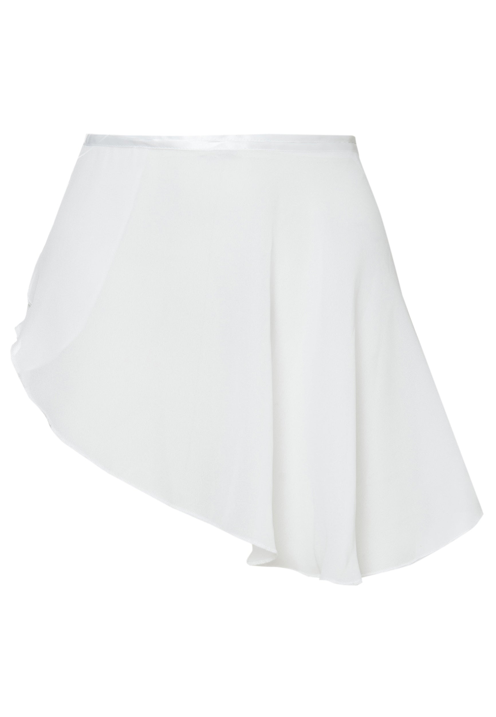 Short wrap dance skirt, black with coordinating drawstring. The garment is in light polyester with matte effect and the bottom features an asymmetric cut, which gives it movement and elegance. Its short and graceful design ensures ample movements and makes it suitable for any type of dancing.
