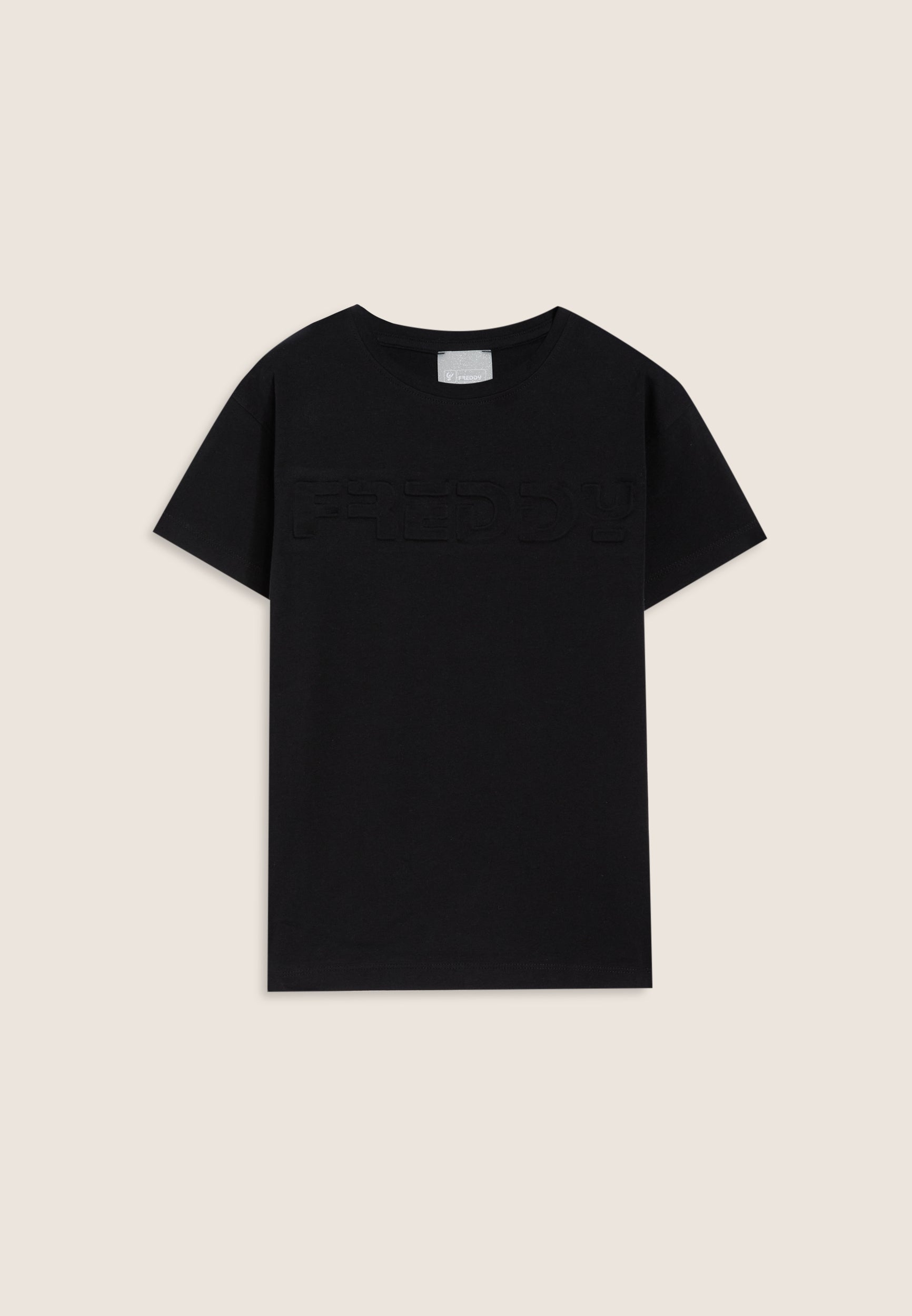 Comfortable and versatile, this comfort fit stretch cotton t-shirt is perfect for any occasion. The design with regular length, straight bottom and short sleeves with dropped shoulders ensures freedom of movement. The large colour-matched FREDDY logo on the front adds a distinctive and dynamic touch. Perfect for a casual, sporty look!
