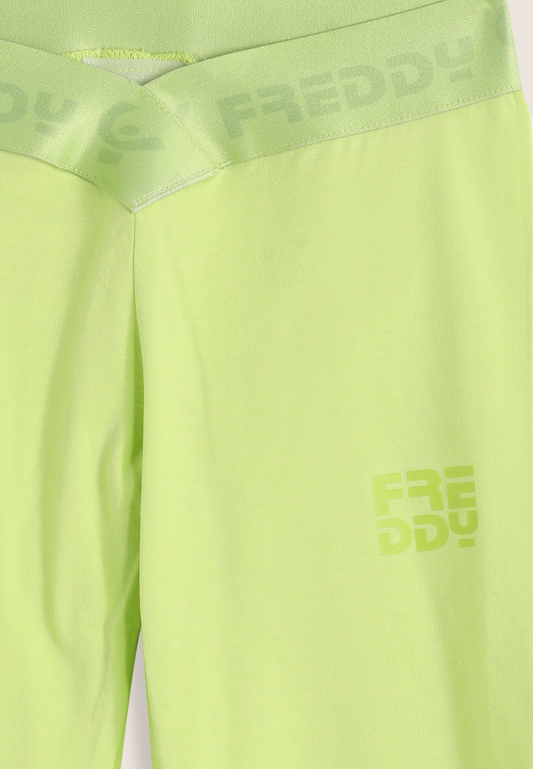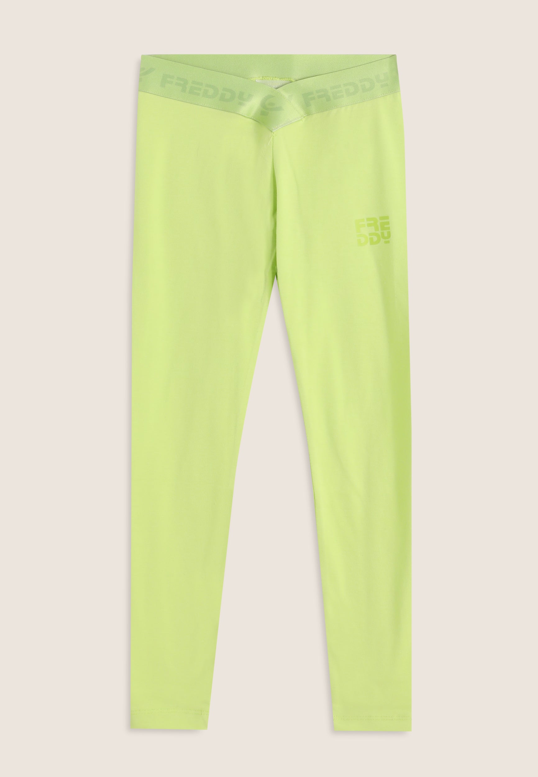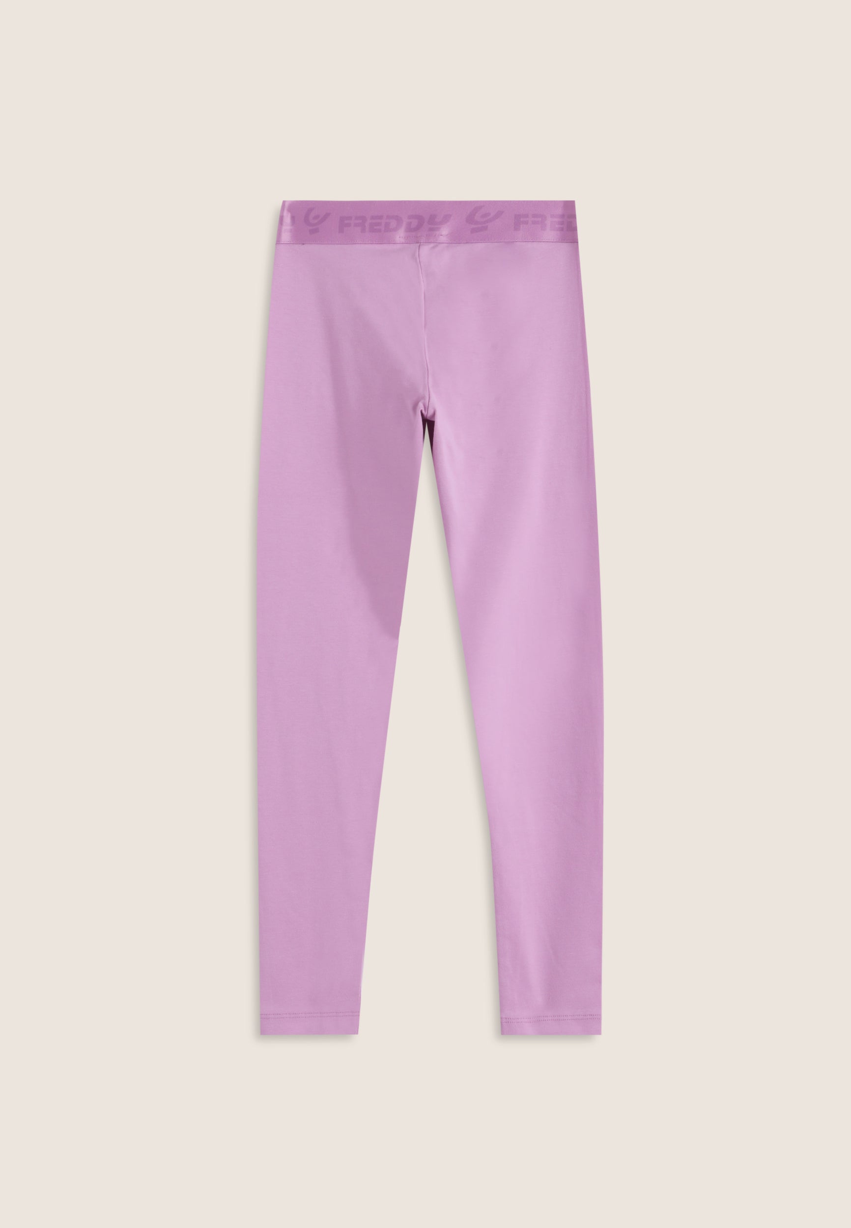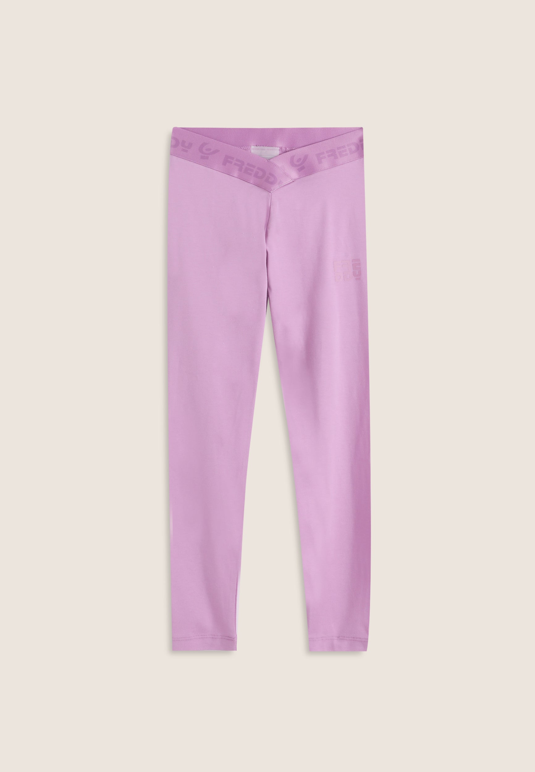 These stretch cotton slim fit leggings are a must-have for those who love comfort without sacrificing style. The regular criss-cross waist offers a good fit, while the regular length with skinny leg slims the figure. The FREDDY logo on the waistband and on the front left side gives a distinctive touch. Perfect for workouts or for casual sporty looks!