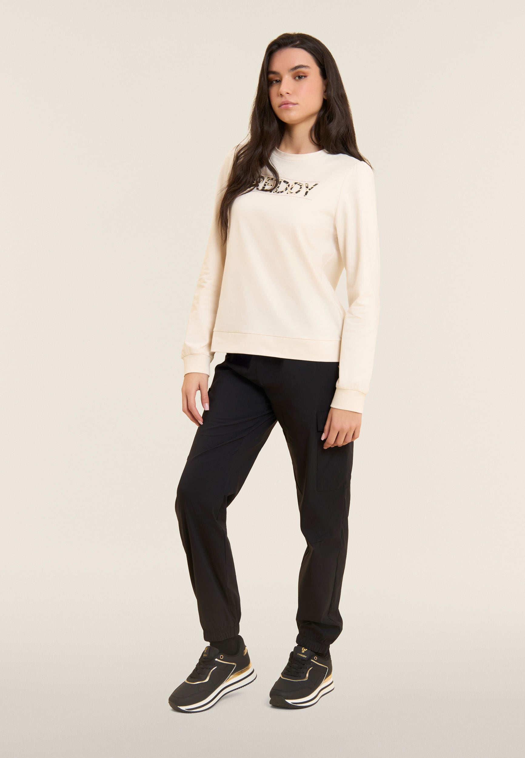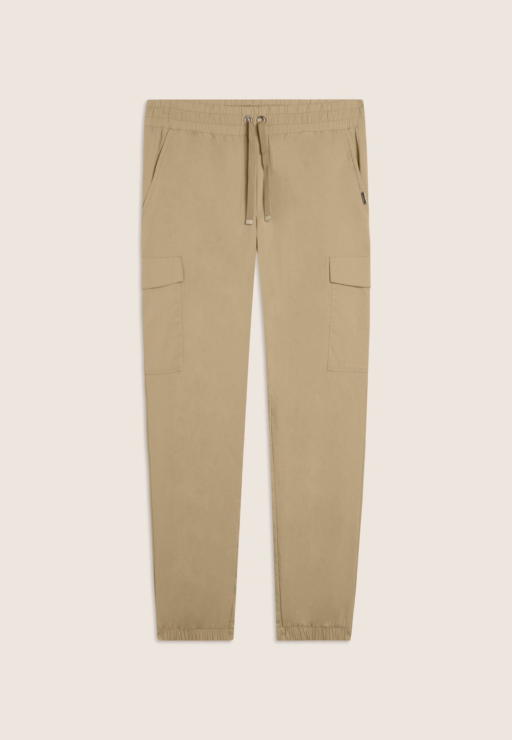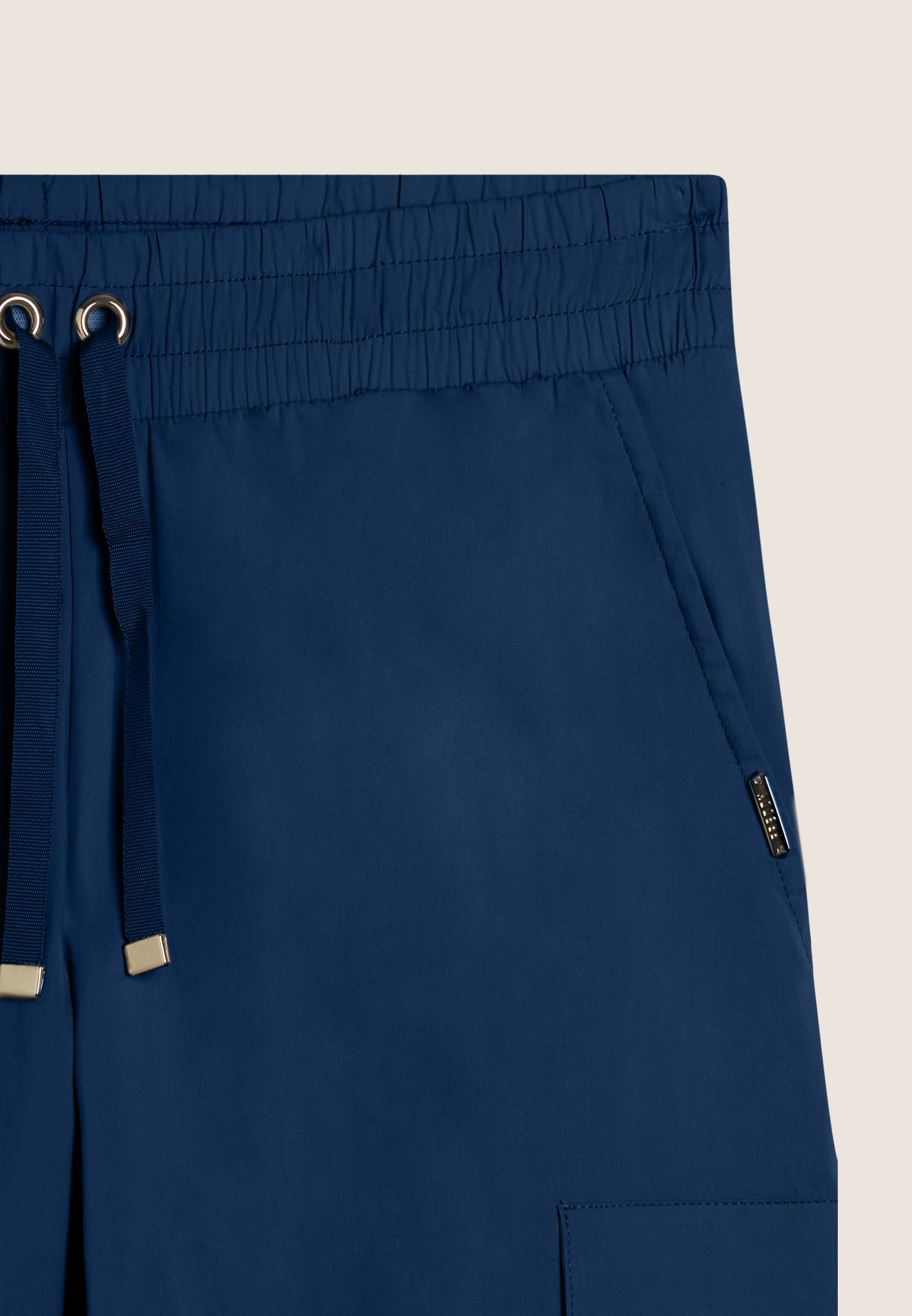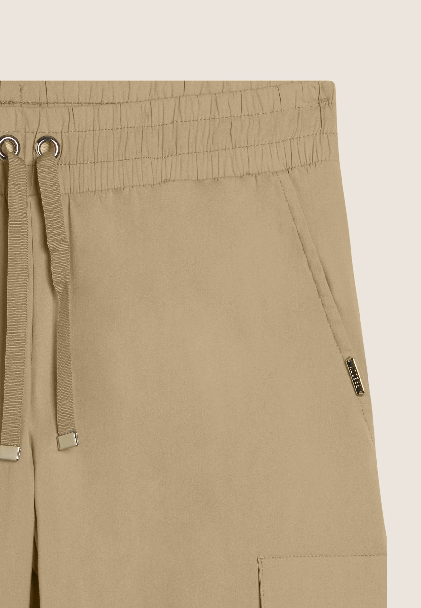 Regular-fit cargo trousers with a regular waist and drawstring and inner elastic for a gathered effect. The bottom is finished with internal elastic. Side flap pockets on the outer thighs and slant besom pockets add functionality and style. An exclusive detail is the golden FREDDY logo tab on the left pocket opening. Made of stretch poplin, these trousers are light and easy to wear, offering a perfect combination of comfort and sophistication.