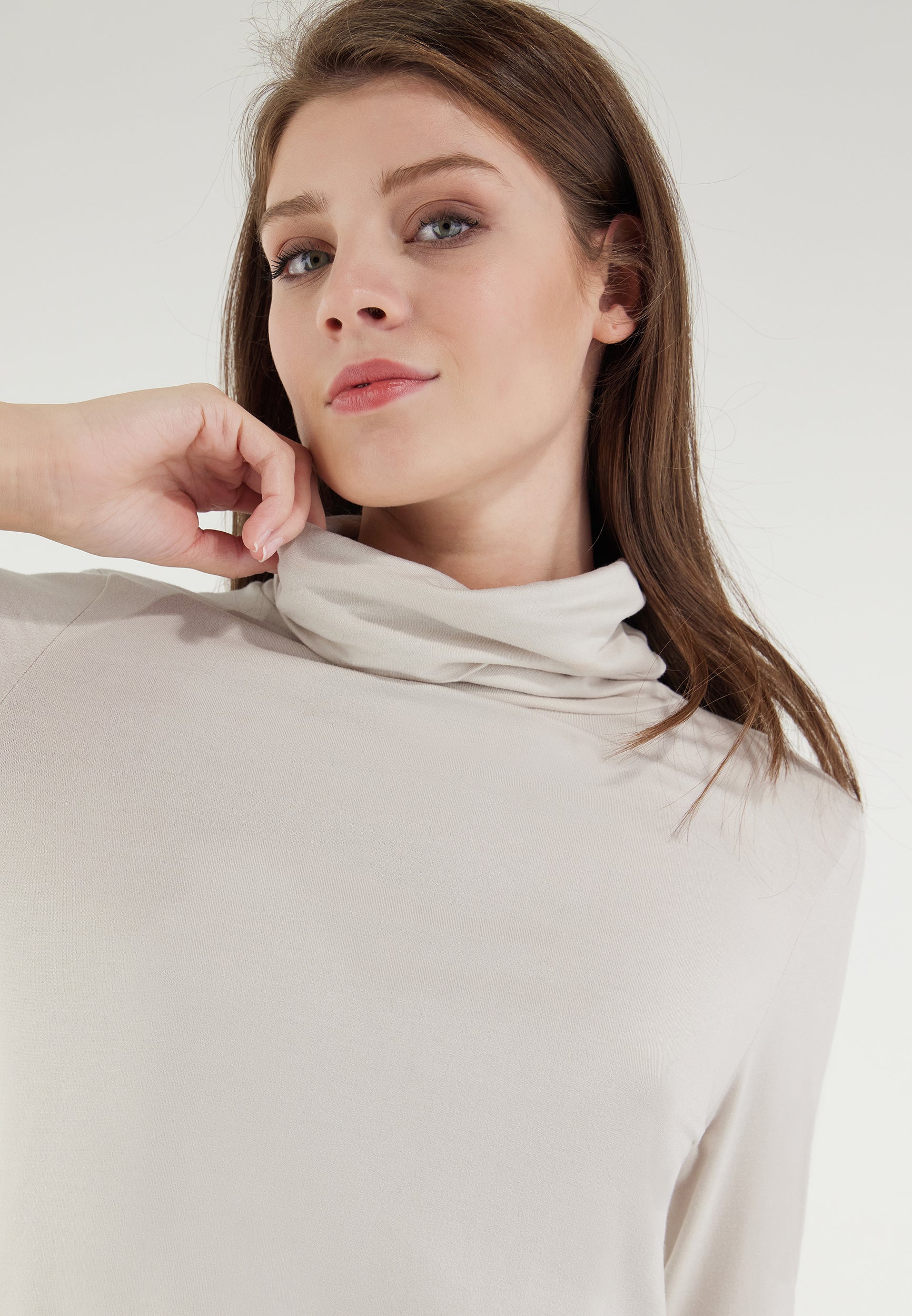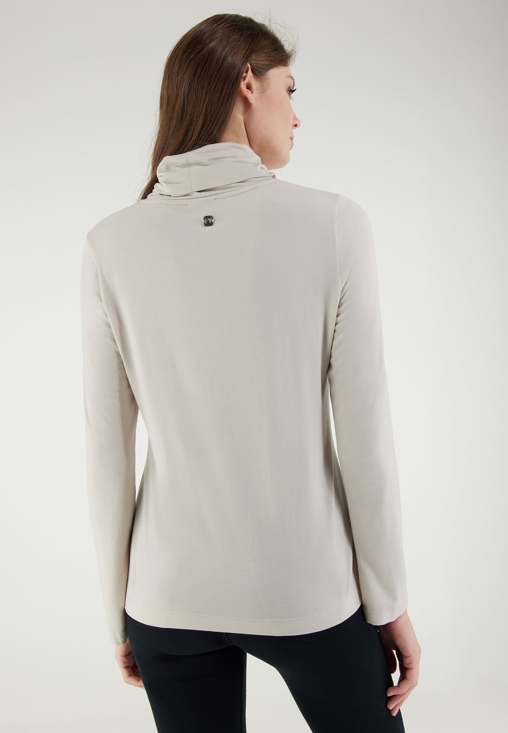Turtleneck in stretch viscose jersey, a soft material characterised by a natural lustre that looks and feels like satin. It has a classic high neck design, long sleeves, and a straight hemline. The gold tab with a Freddy logo on the back collar completes the list of stylish details. The regular fit, which flows as it echoes the silhouette, and the soft, supple fabric combine to ensure the comfort and freedom of movement of this garment. Wear it as part of different outfits where comfort and style are a must.