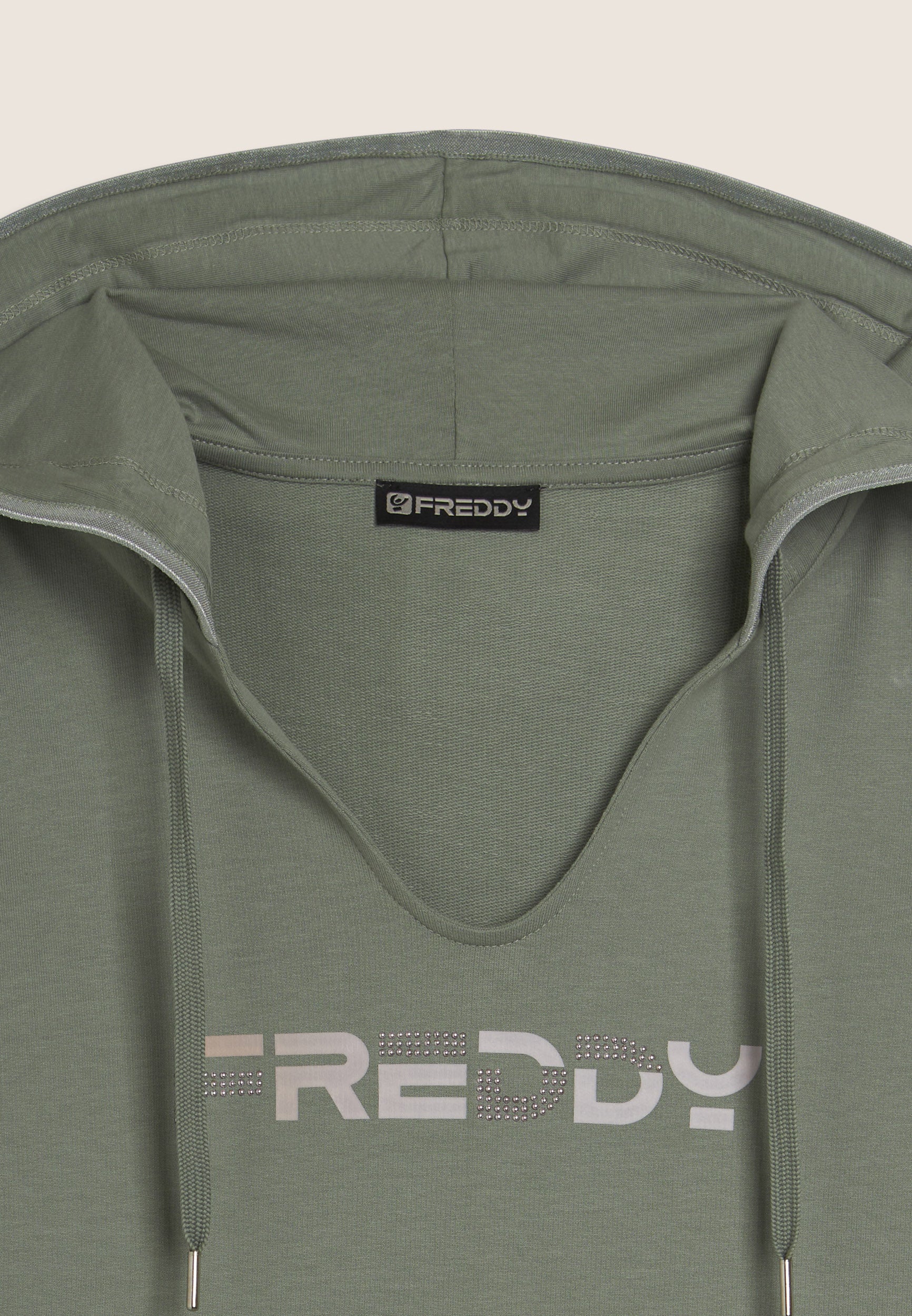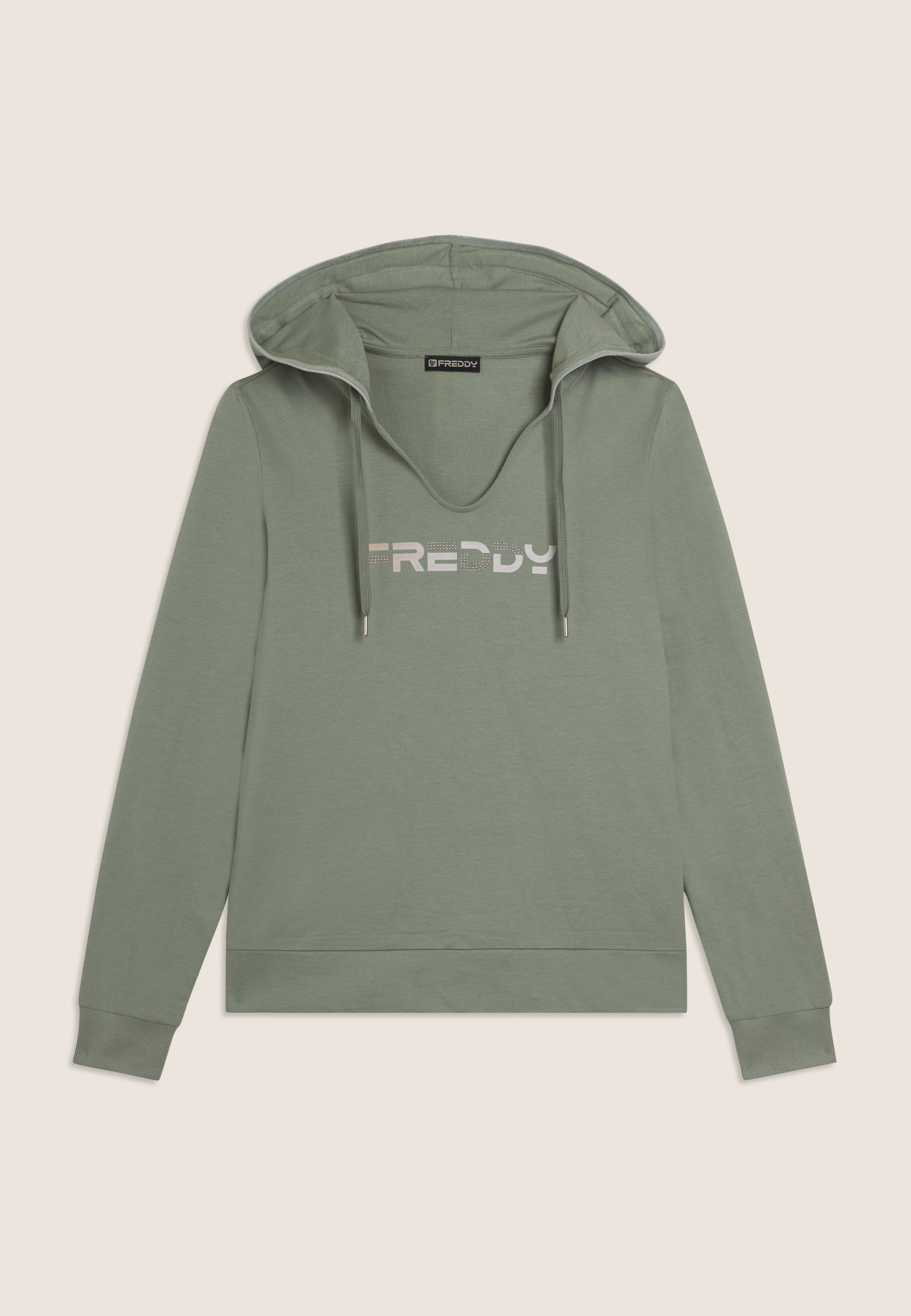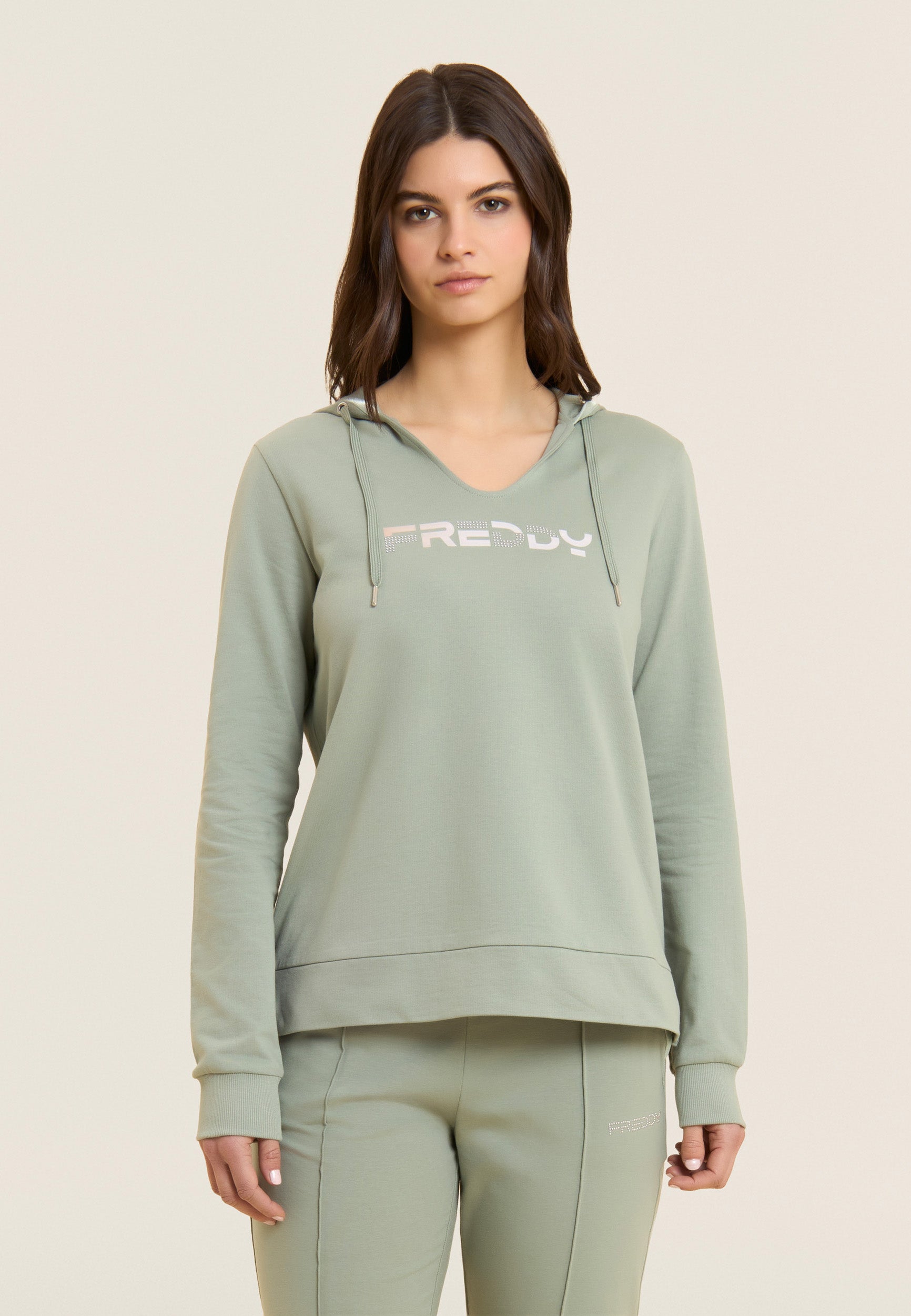 V-neck sweatshirt with hood and holographic FREDDY logo