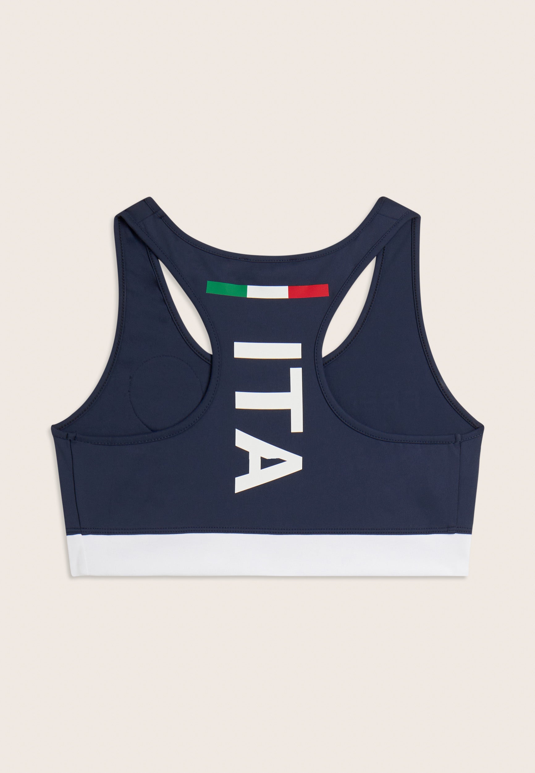 The design features a round neckline, regular shoulder straps and a racerback that keeps the shoulder blades free for maximum agility. The white elastic band on the bottom ensures stability, while the Freddy and Italian Gymnastics Federation logos on the front and the maxi ITA print with Italian tricolour print on the back celebrate pride in Italian gymnastics.