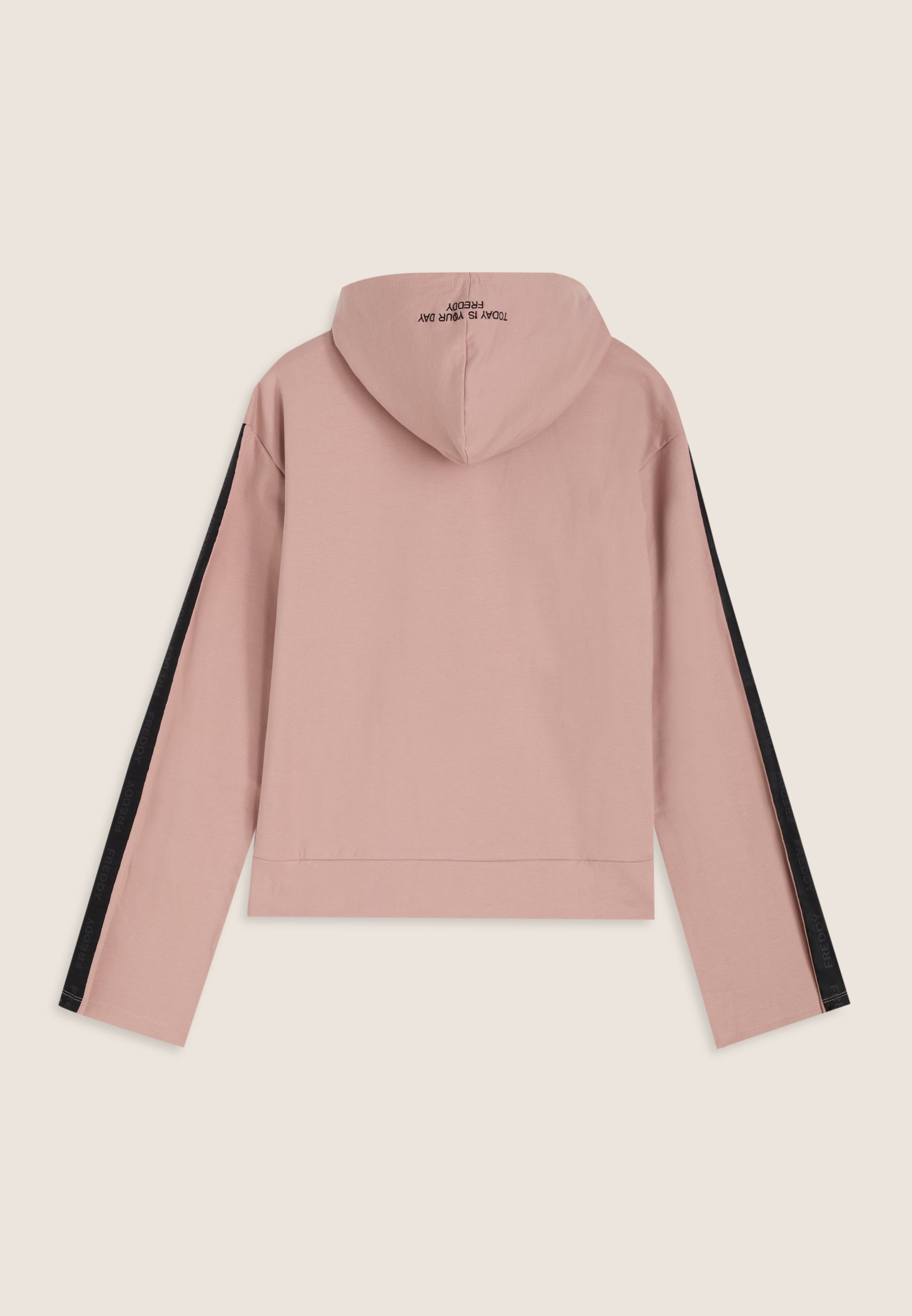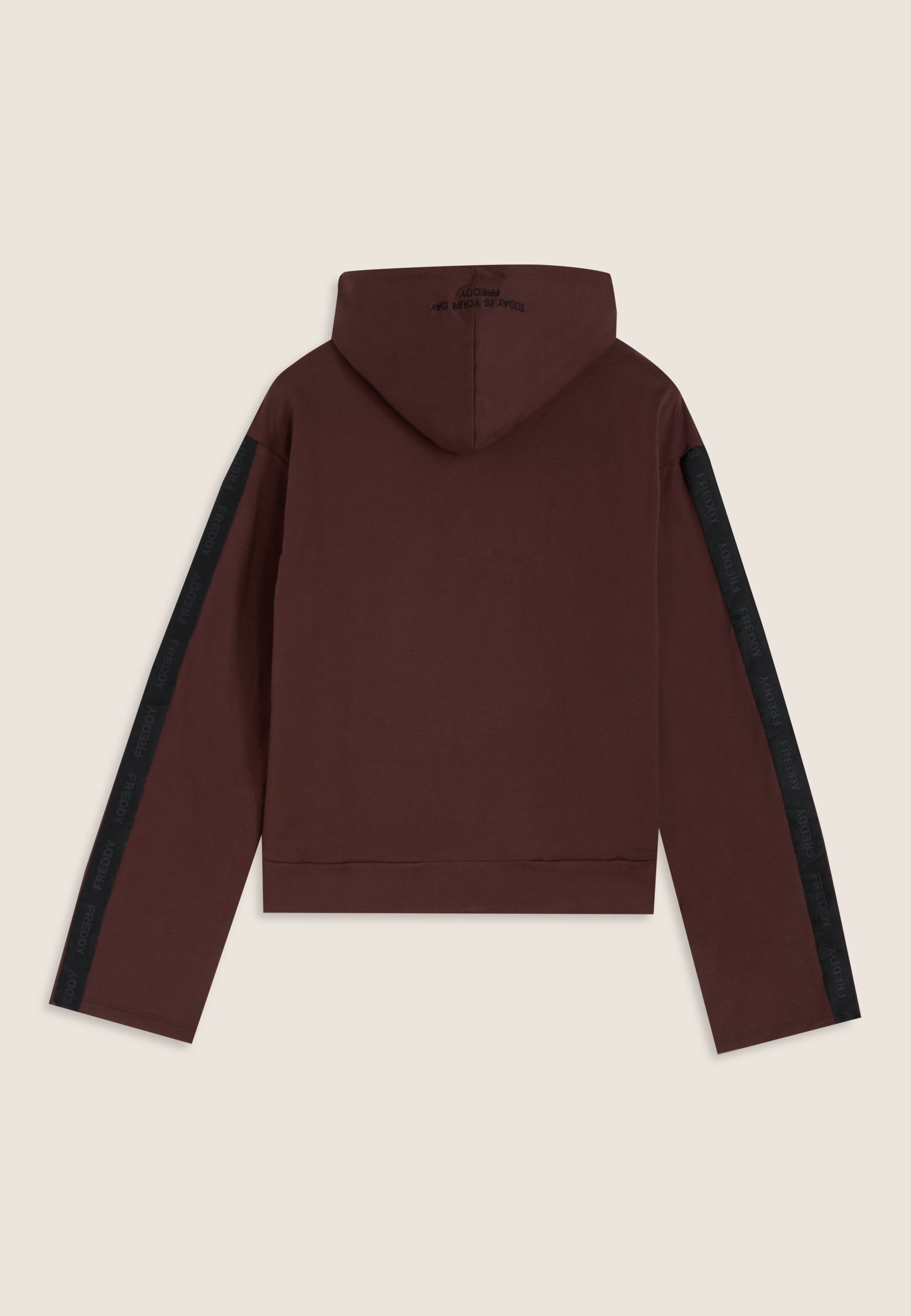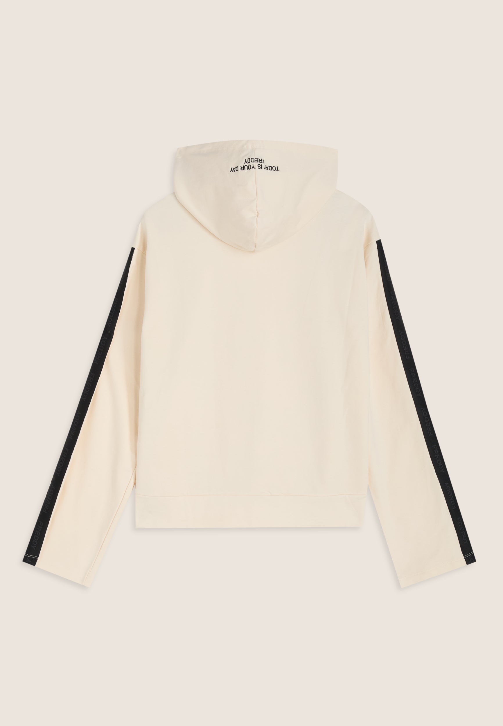 Women's regular fit sweatshirt made from stretch brushed fleece, with a wide hood and long sleeves. The embroidered “TODAY IS YOUR DAY” slogan on the hood and the logoed jacquard band running along the sleeves add a street touch.