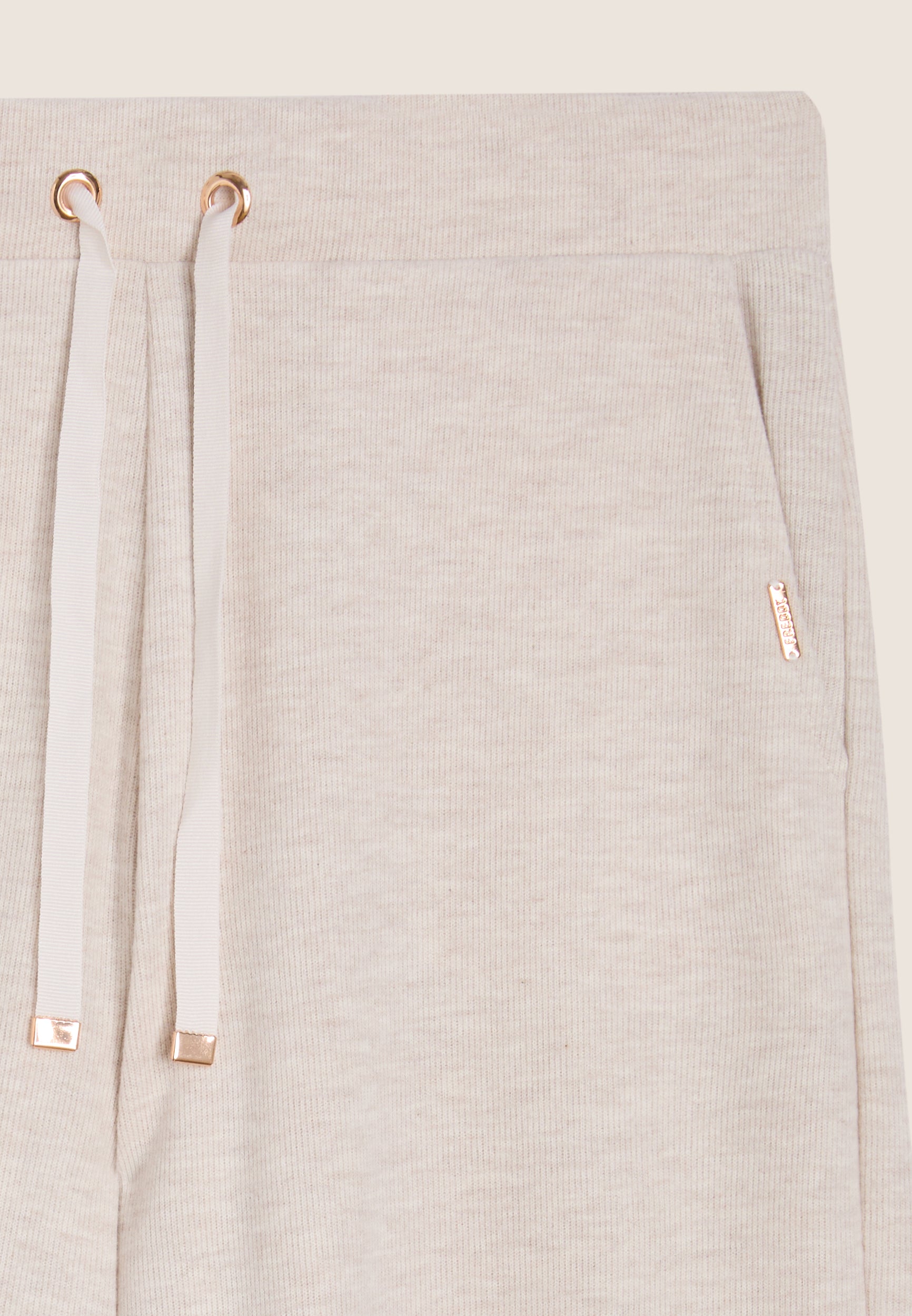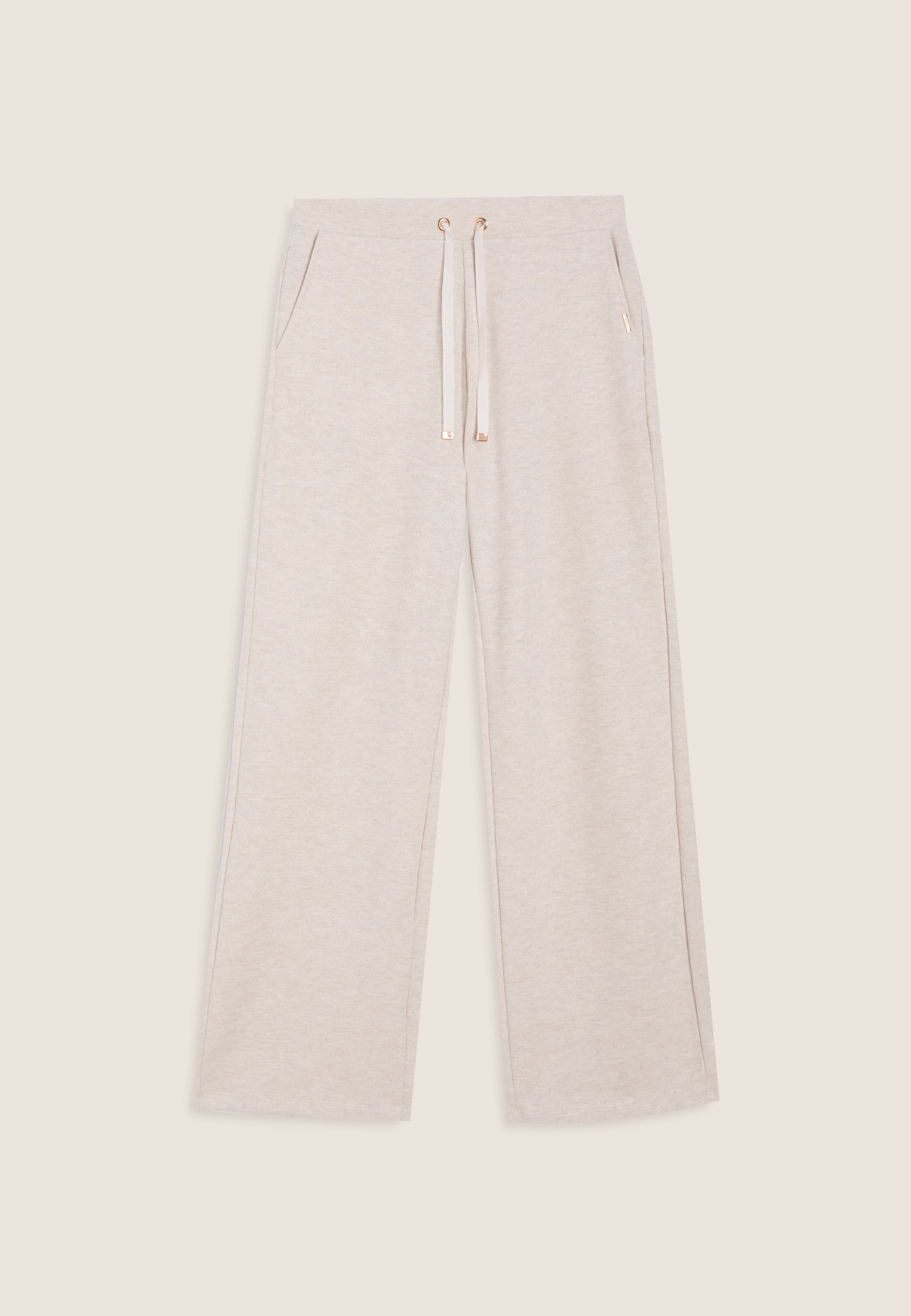 Women's wide leg trousers with loose, regular fit, made from tricot-effect stretch brushed fleece. This fabric combines softness, elasticity and the sophisticated look of knitwear, providing maximum comfort and warmth. Adjustable drawstring waist, practical besom pockets and FREDDY logo plaque on the left pocket edge.