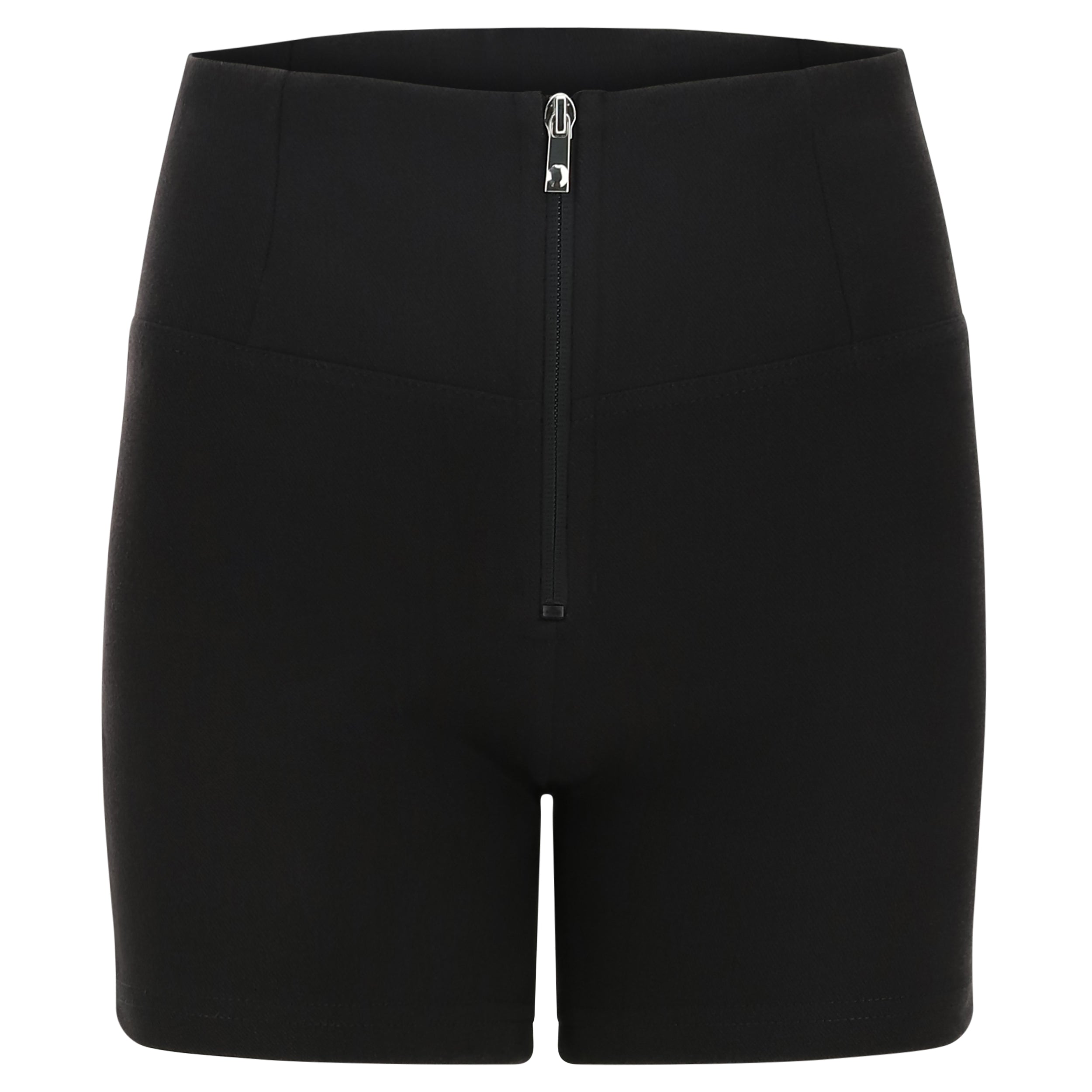 WR.UP® high waist sustainable stretch jersey drill shorts, an eco-friendly fabric obtained from recycled materials, which is strong and soft to the touch. The high waist is fastened by a front zip, accenting the waistline and the hips, while the skinny fit gently embraces the lines of the silhouette. Designed to celebrate your femininity via a carefully crafted cut, these shorts also feature Freddy's innovative, patented WR.UP® technology. This unique system of carefully placed seams and inserts naturally enhances your curves with a lifting and sculpting effect.