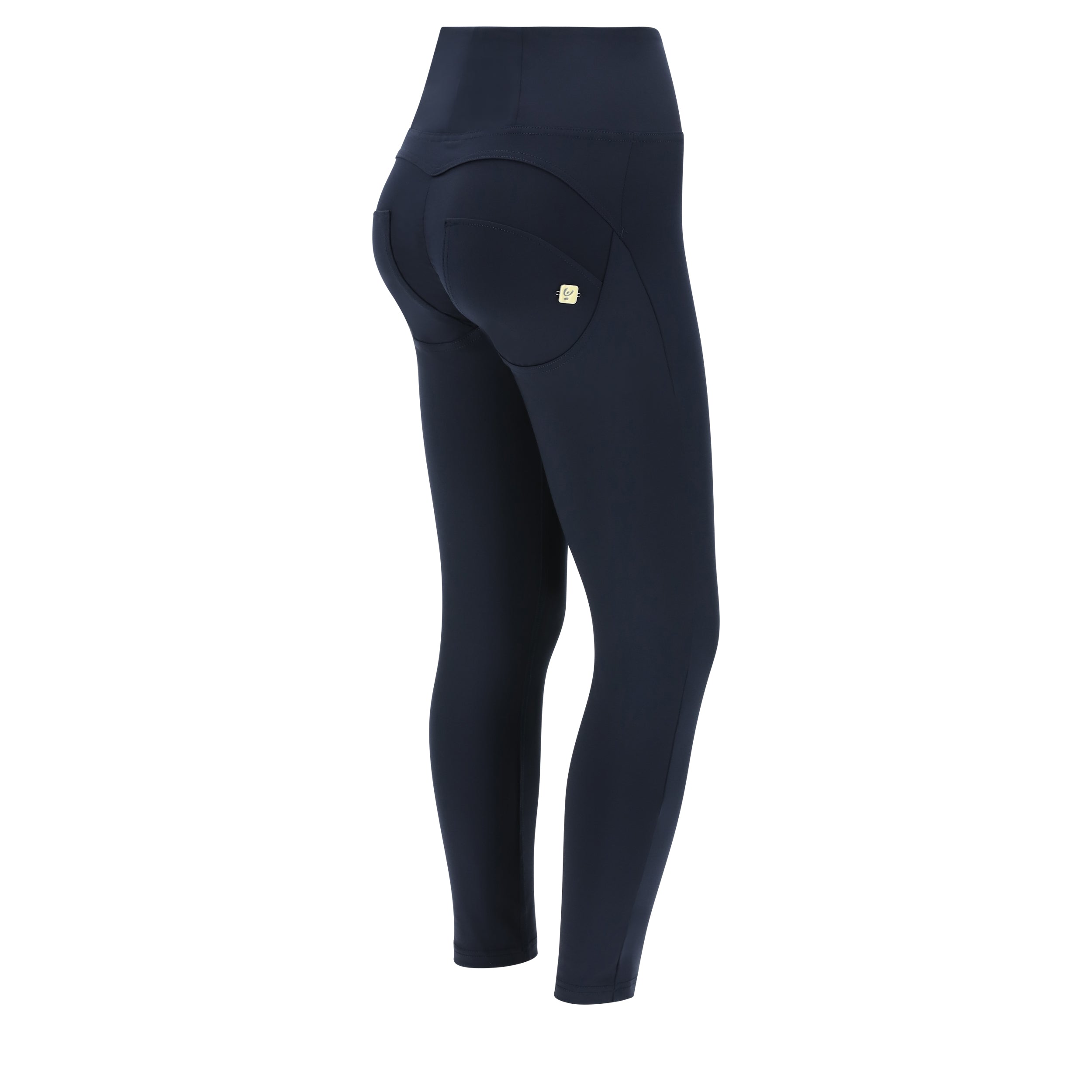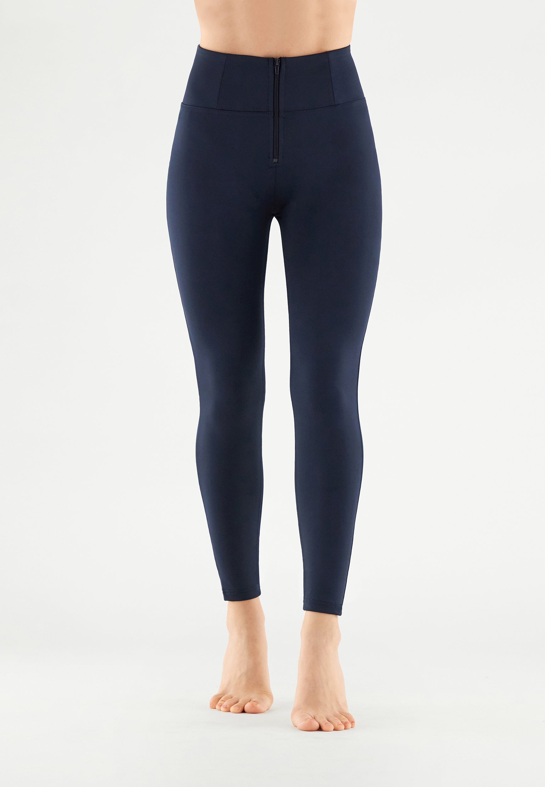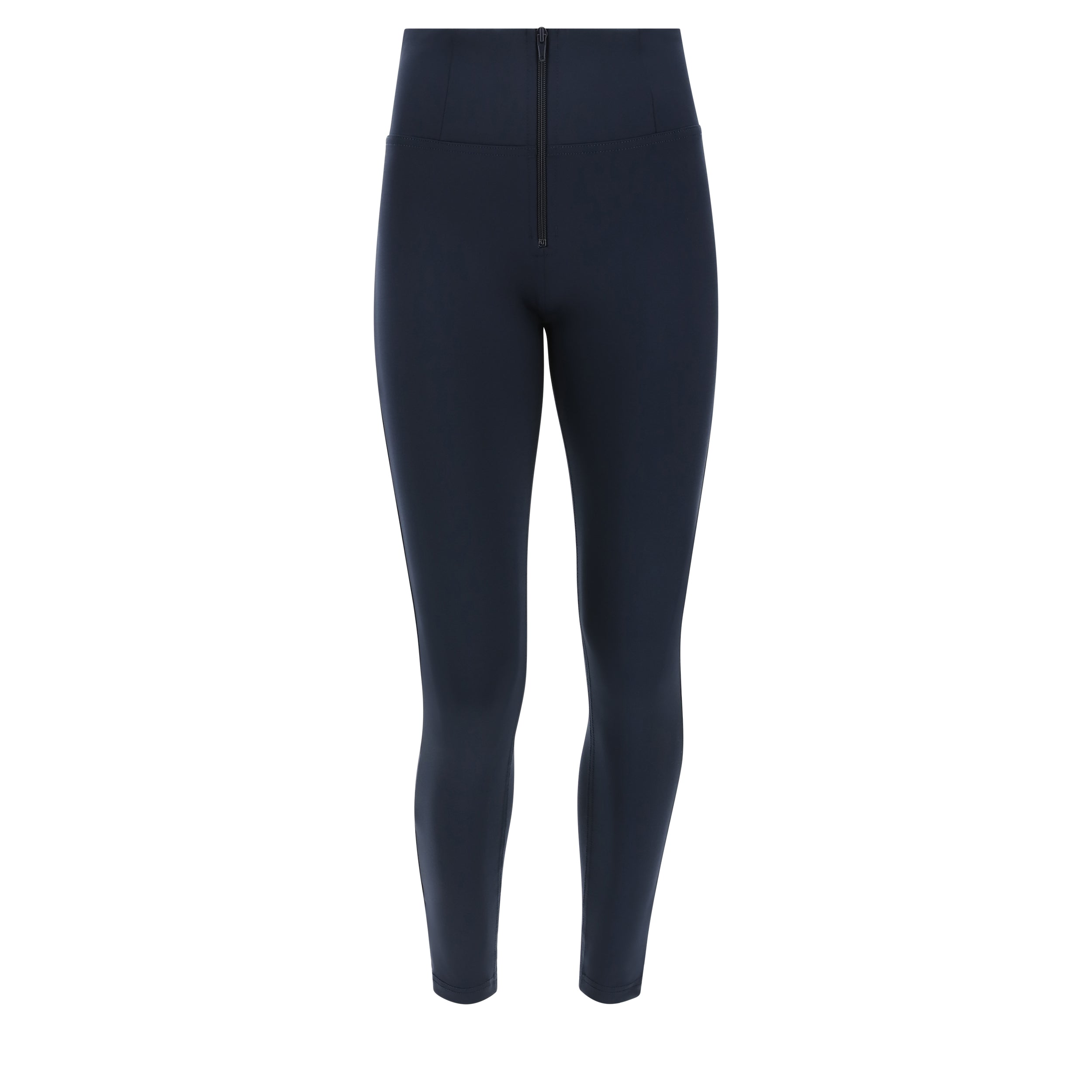 WR.UP® push up trousers with high waist and front zip fastening, that wrap around the waistline and produced in D.I.W.O.® eco-friendly, breathable fabric obtained from plastic bottles that have been turned into fibre that provides improved breathability and favours skin thermoregulation.