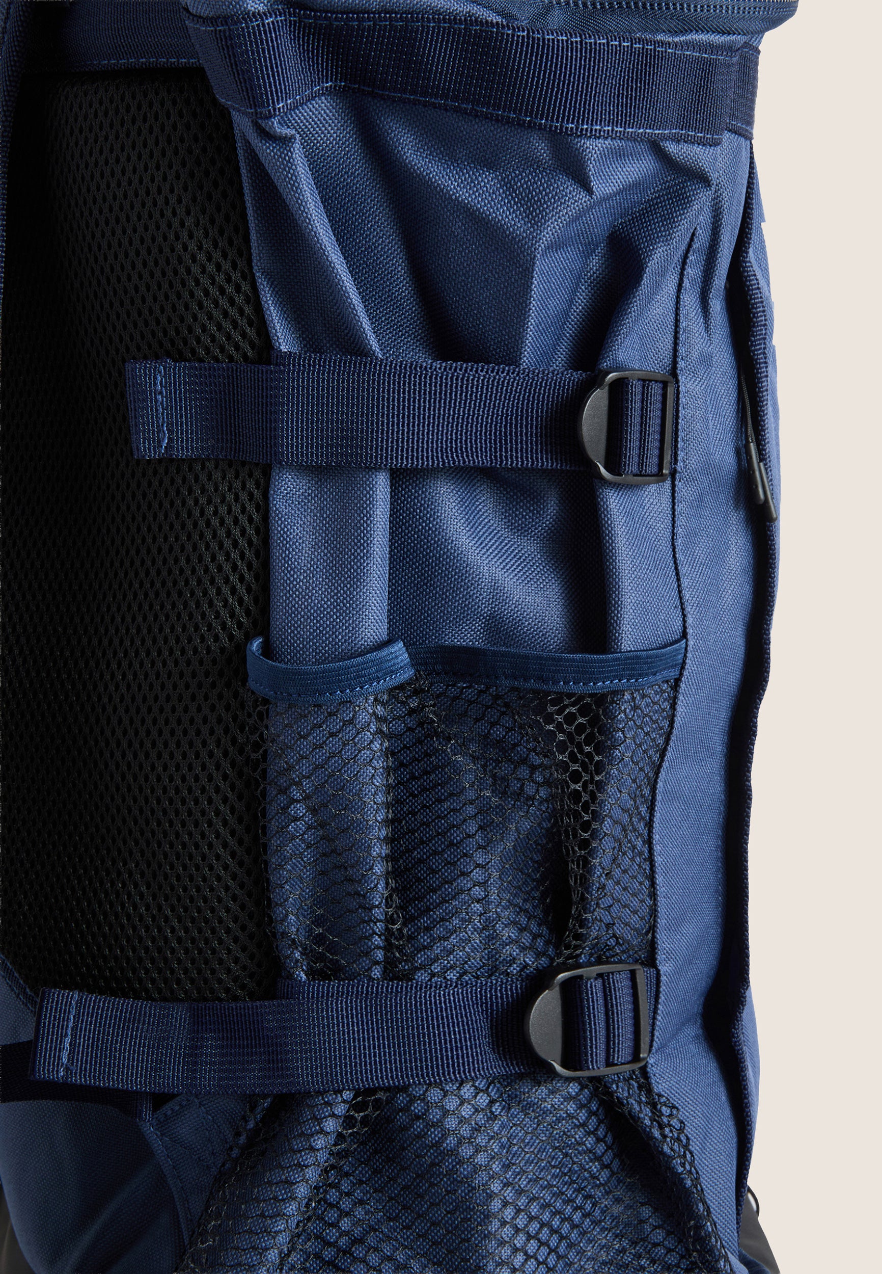 Le cinghie laterali regolabili permettono di stabilizzare il carico o comprimere il volume in base al riempimento. Per garantire il massimo comfort anche a pieno carico, lo schienale è realizzato in mesh traspirante e gli spallacci sono ergonomicamente imbottiti.