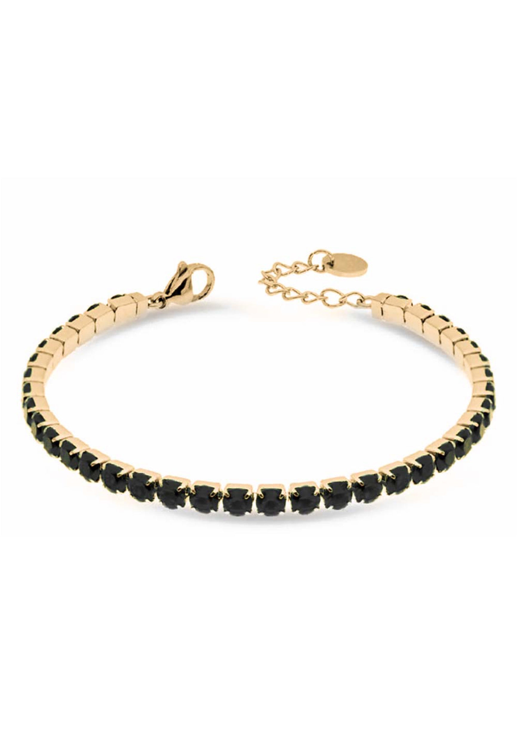 Bracciale Tennis in Acciaio Dorato con Gemme Nere