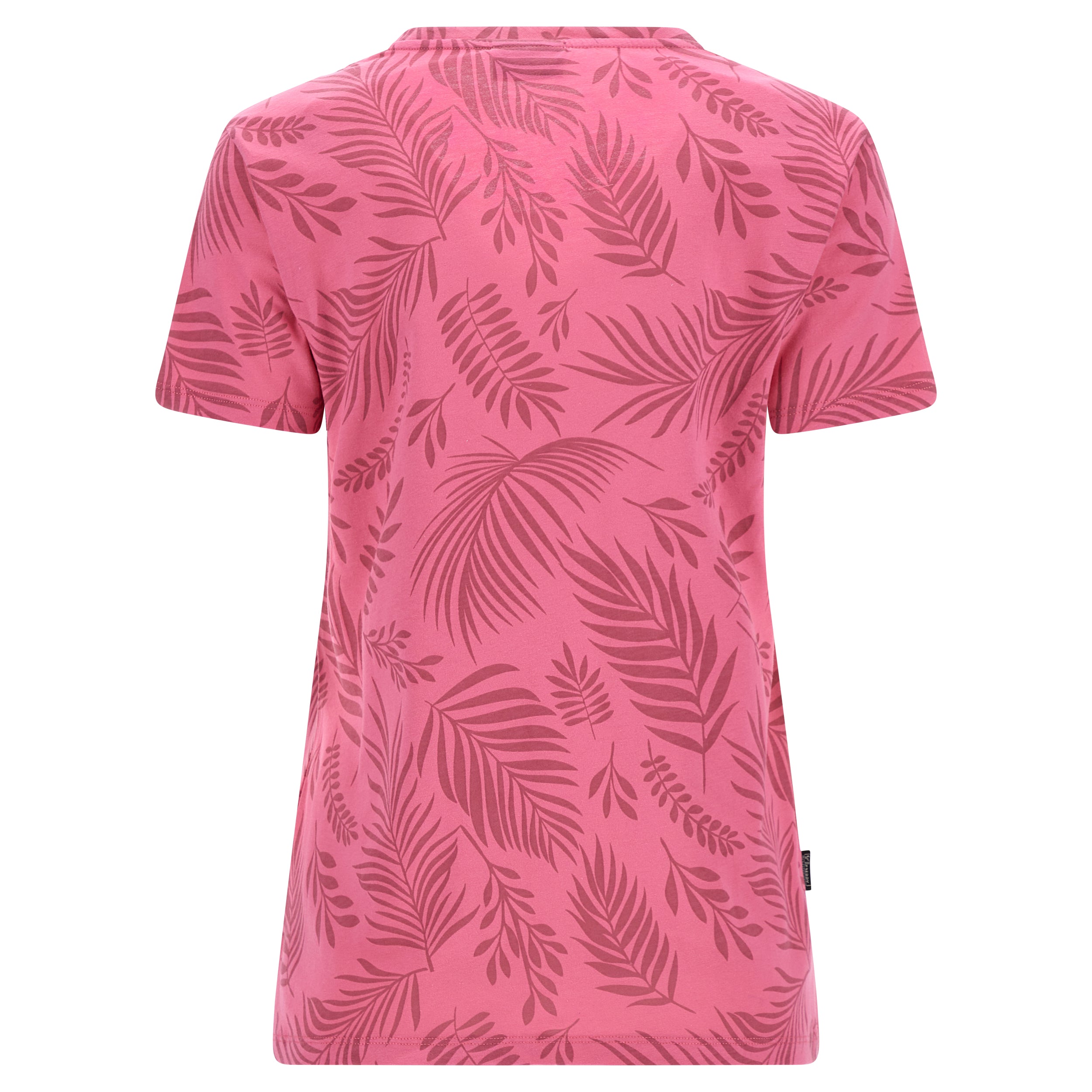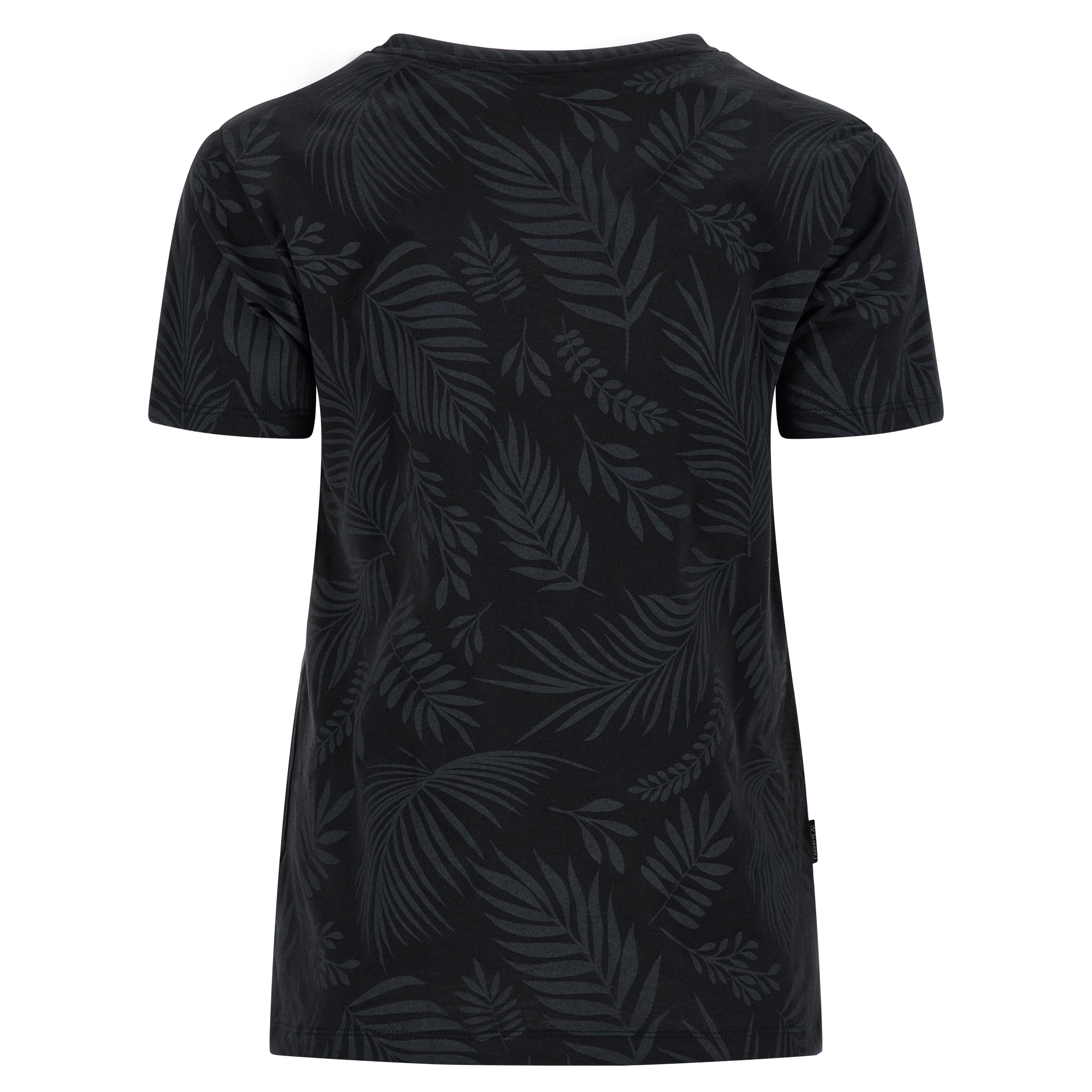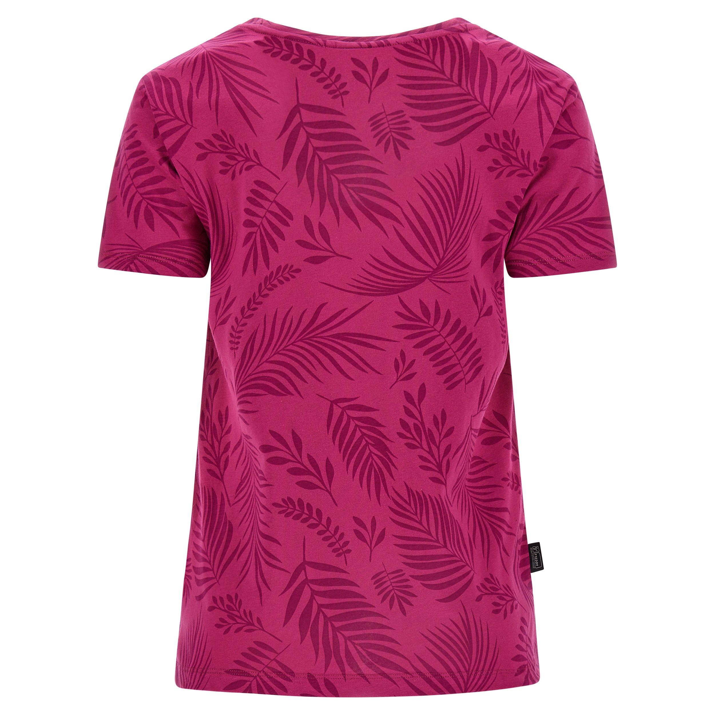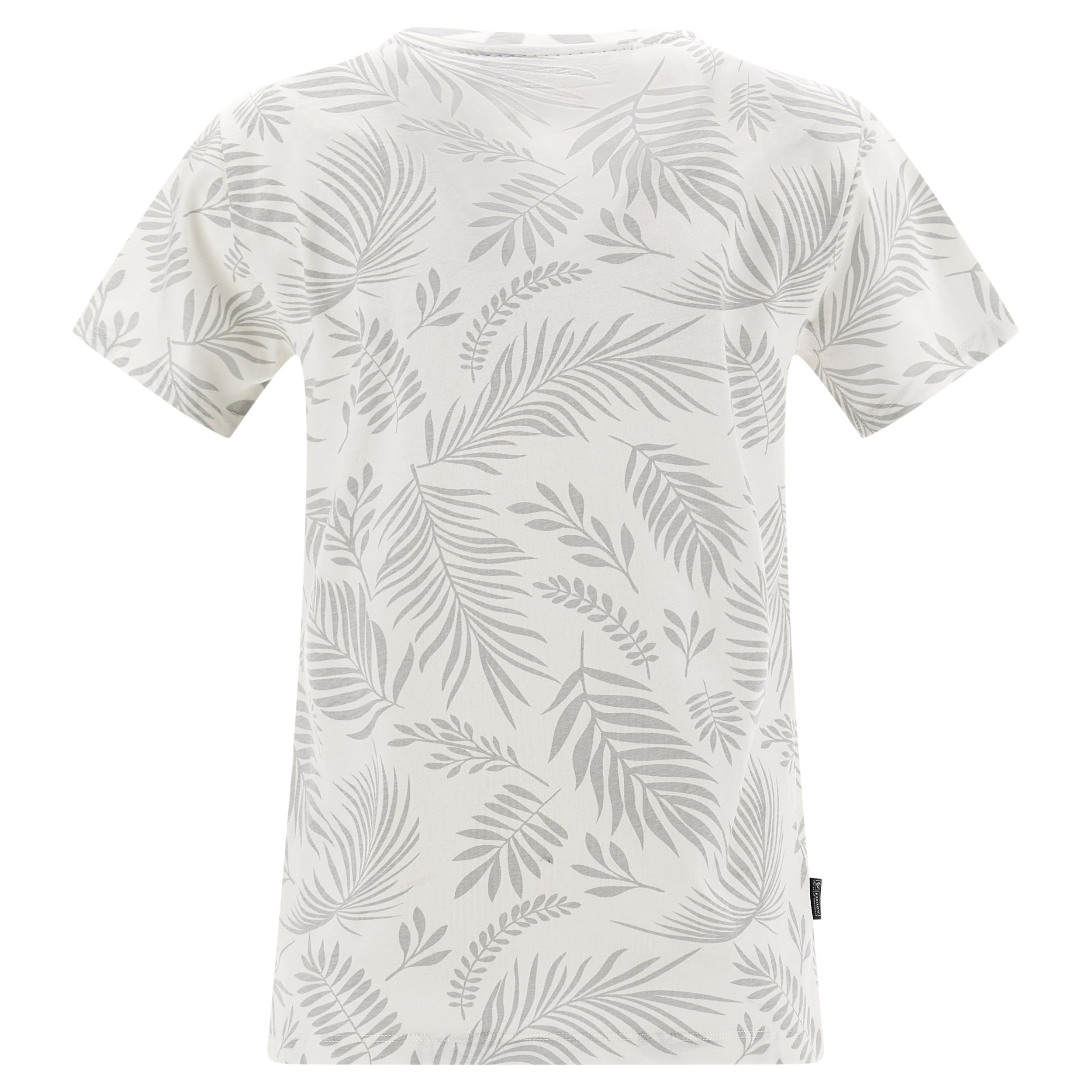 Camiseta de corte cómodo confeccionada en tejido de punto de algodón con estampado de hoja tropical en tono a juego por toda la prenda. Presenta un cuello redondo, manga corta y bajo recto con aberturas laterales. El pequeño estampado de FREDDY en color oro claro a la altura del corazón completa los detalles de estilo de esta prenda que apuesta por la comodidad, gracias a su corte amplio y a la suavidad natural de la tela. Una prenda versátil y en tonos exóticos, ideal para completar atuendos que apuestan por la libertad de movimientos.