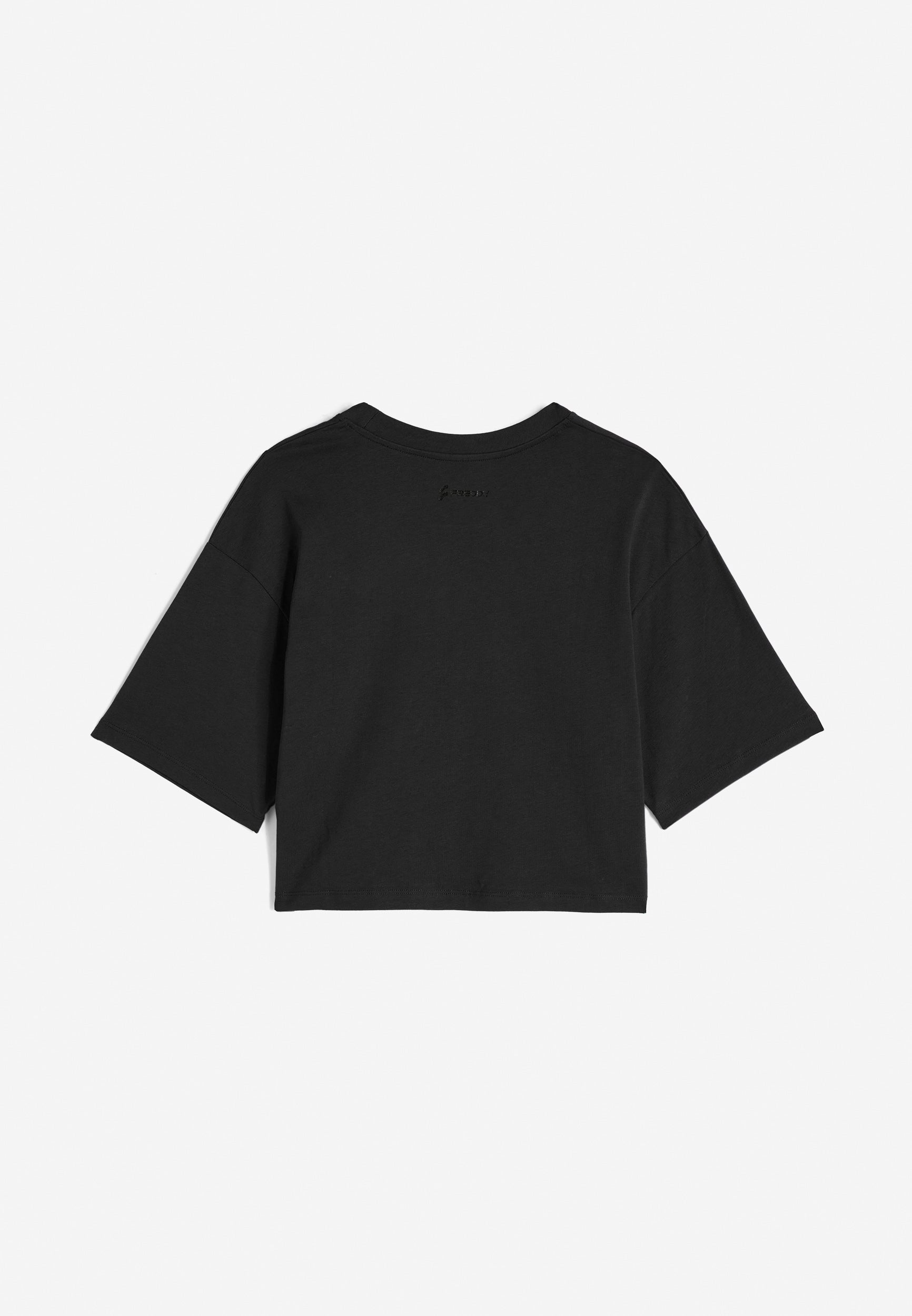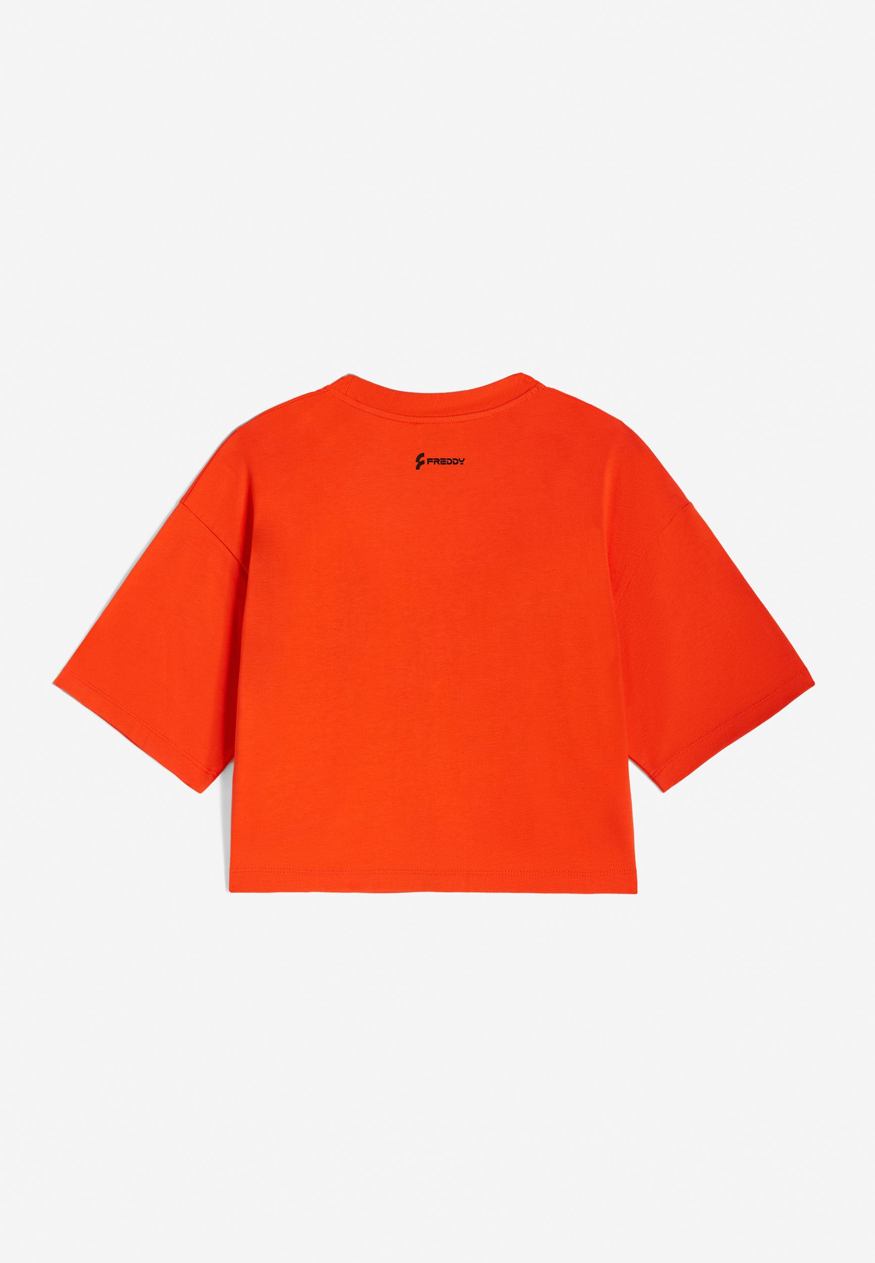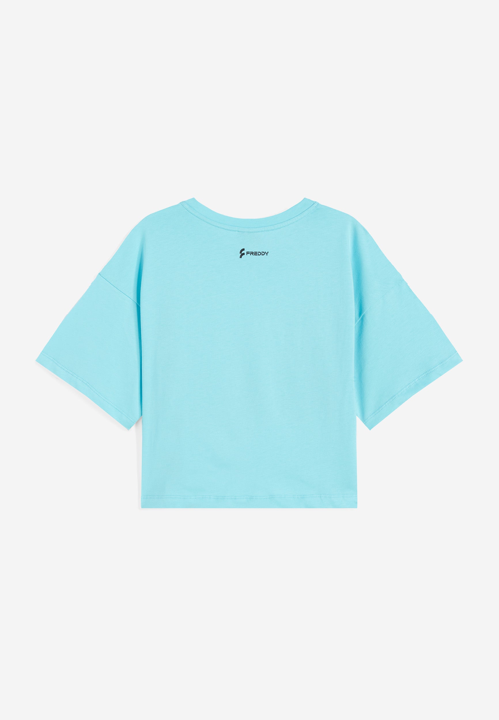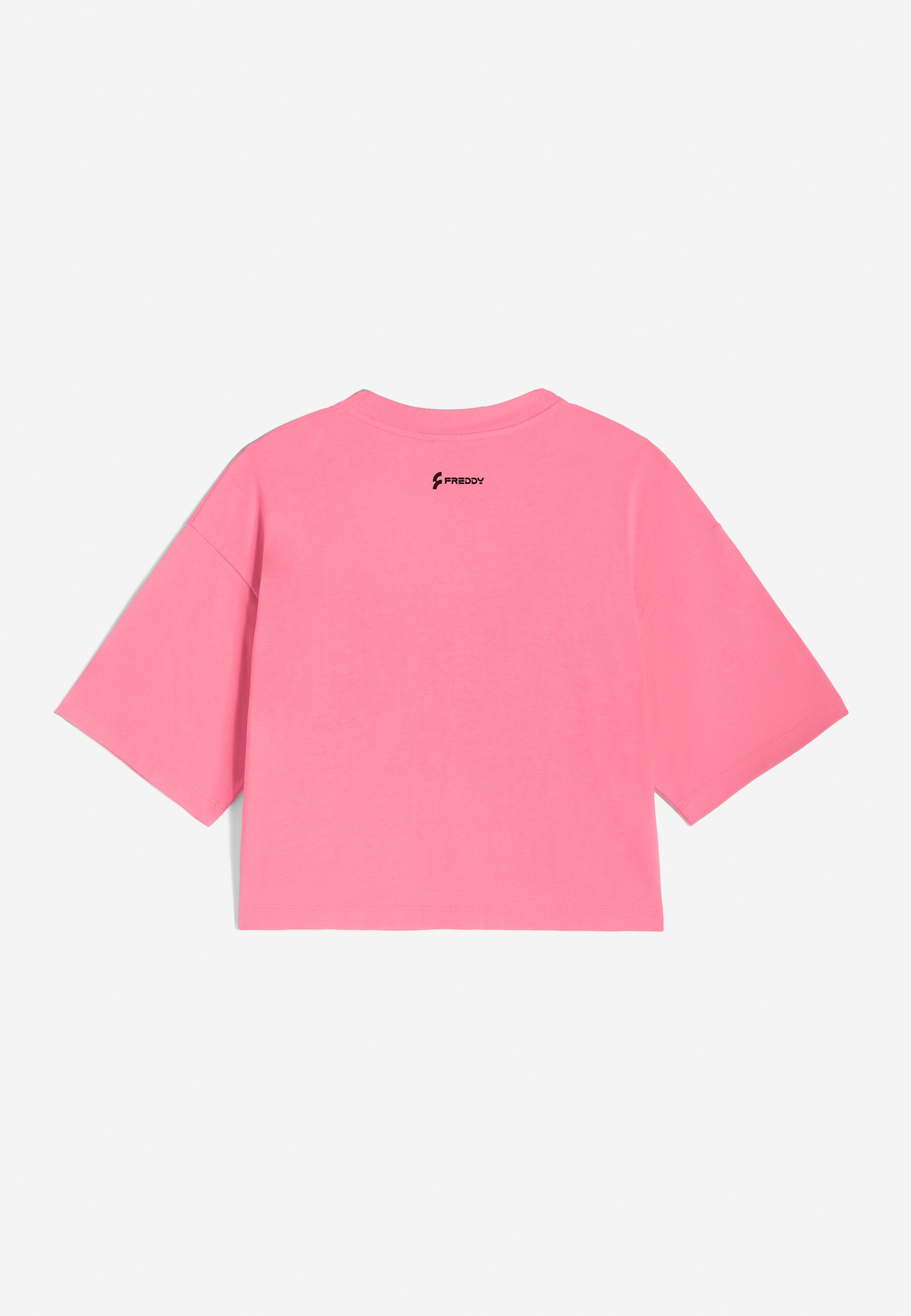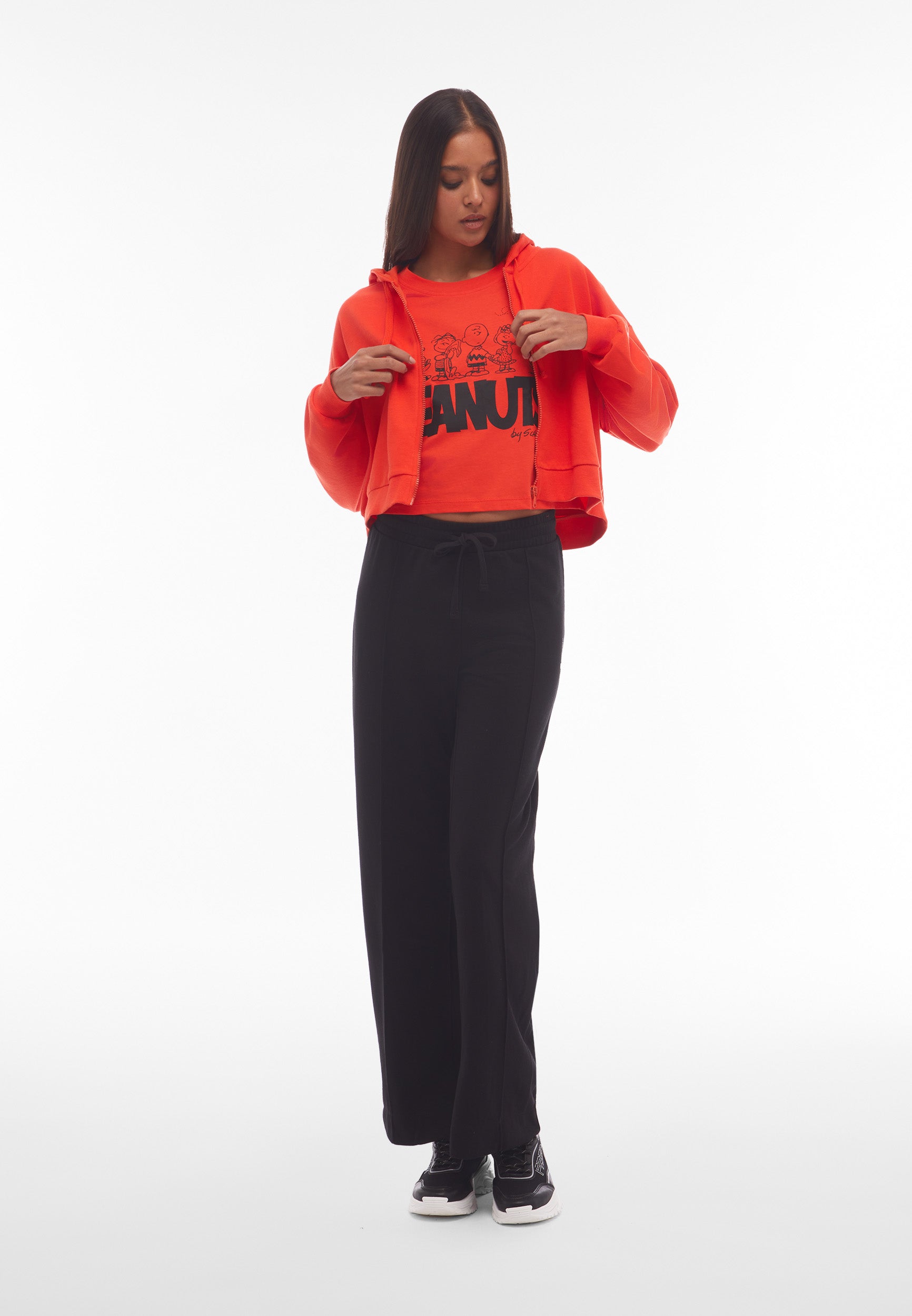 Esta camiseta de mujer tiene un corte oversize corto en la cintura para un look extremadamente actual y versátil al más puro estilo Y2K. El estampado de los protagonistas de Peanuts, el icónico cómic de Charles M. Schulz, le da un toque nostálgico y romántico.