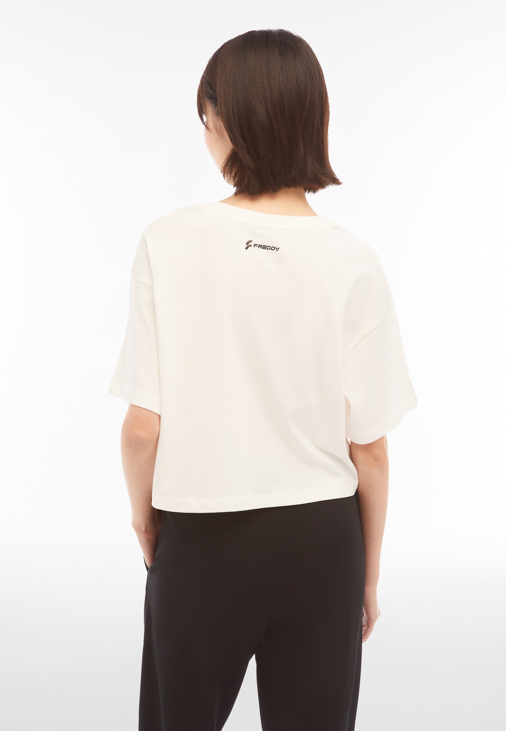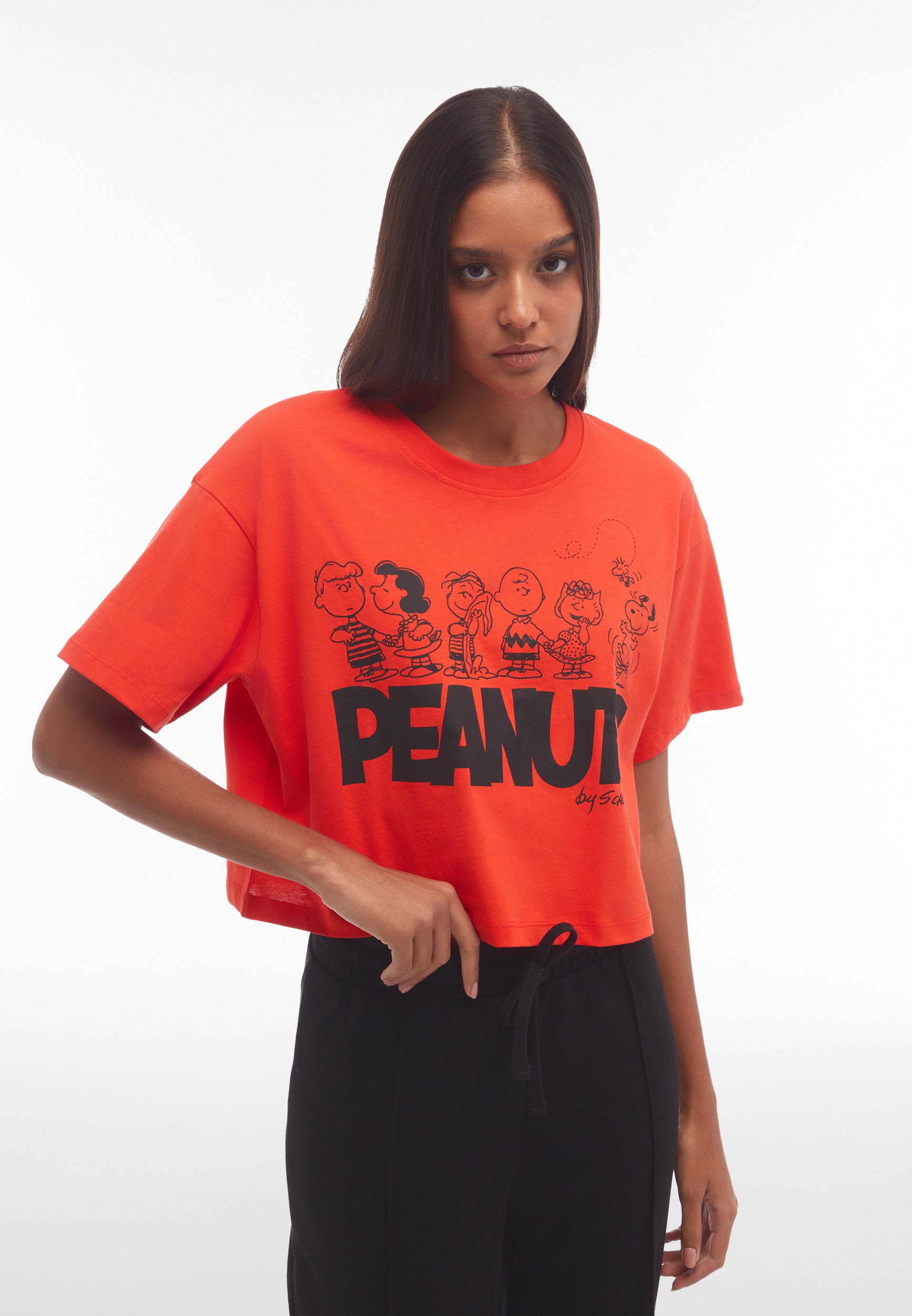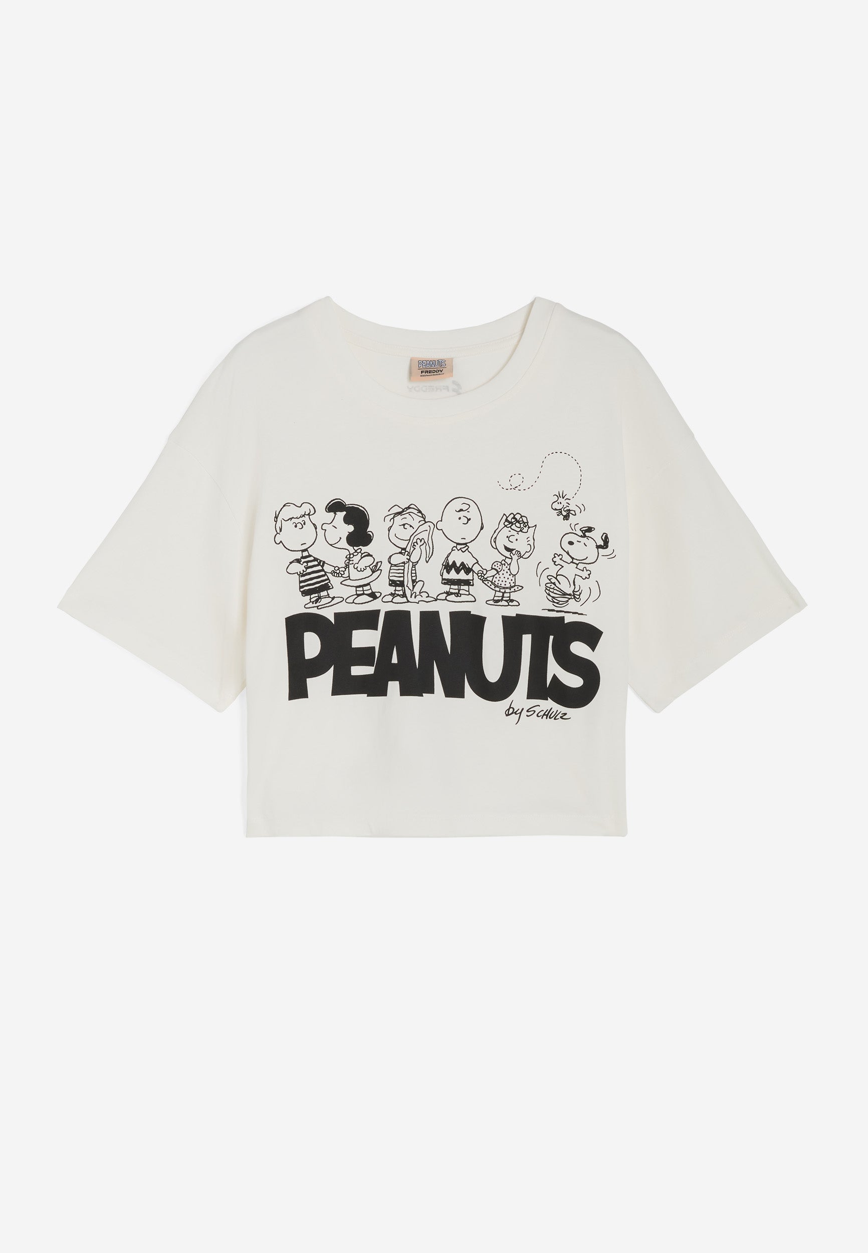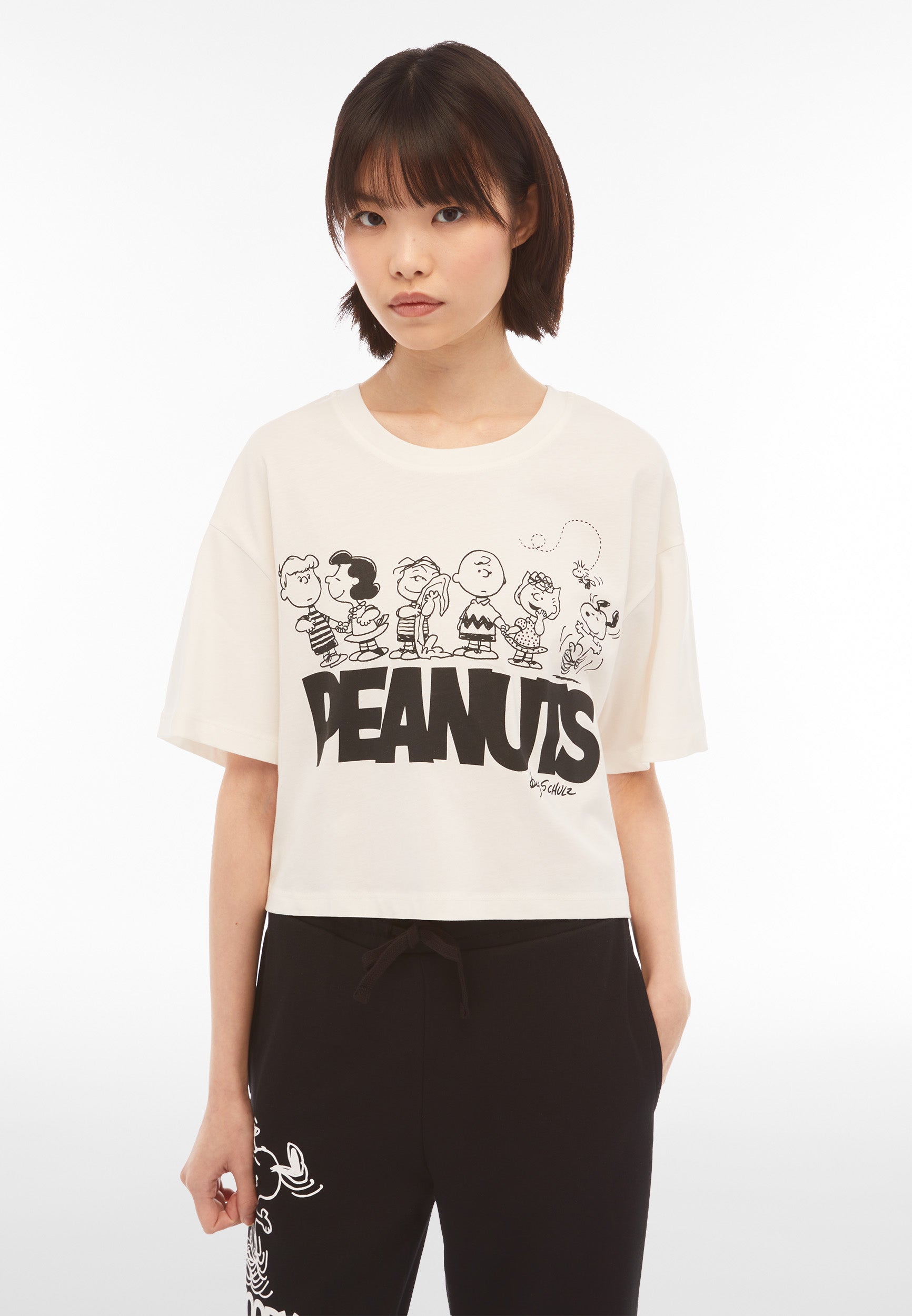 Camiseta corta de mujer en tejido de punto con gráfico Peanuts