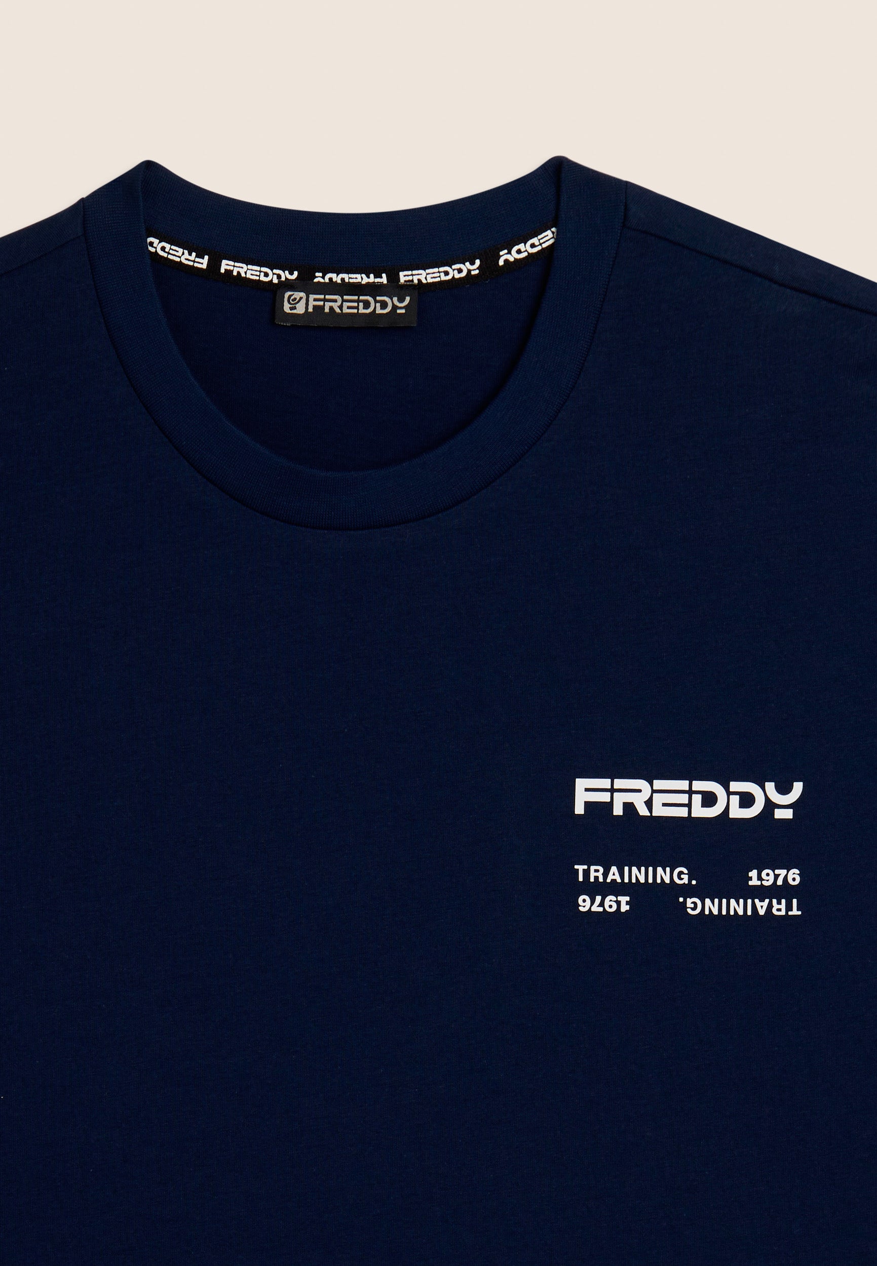 Camiseta de manga corta para hombre confeccionada en tejido de punto 100 % algodón para un ajuste ligero y transpirable. De corte clásico, con bajo recto, mangas cortas y escote redondo de canalé. El logotipo impreso en relieve en el pecho aporta un toque distintivo al diseño minimalista. Ideal para sesiones de entrenamiento de baja intensidad o para un look deportivo informal.