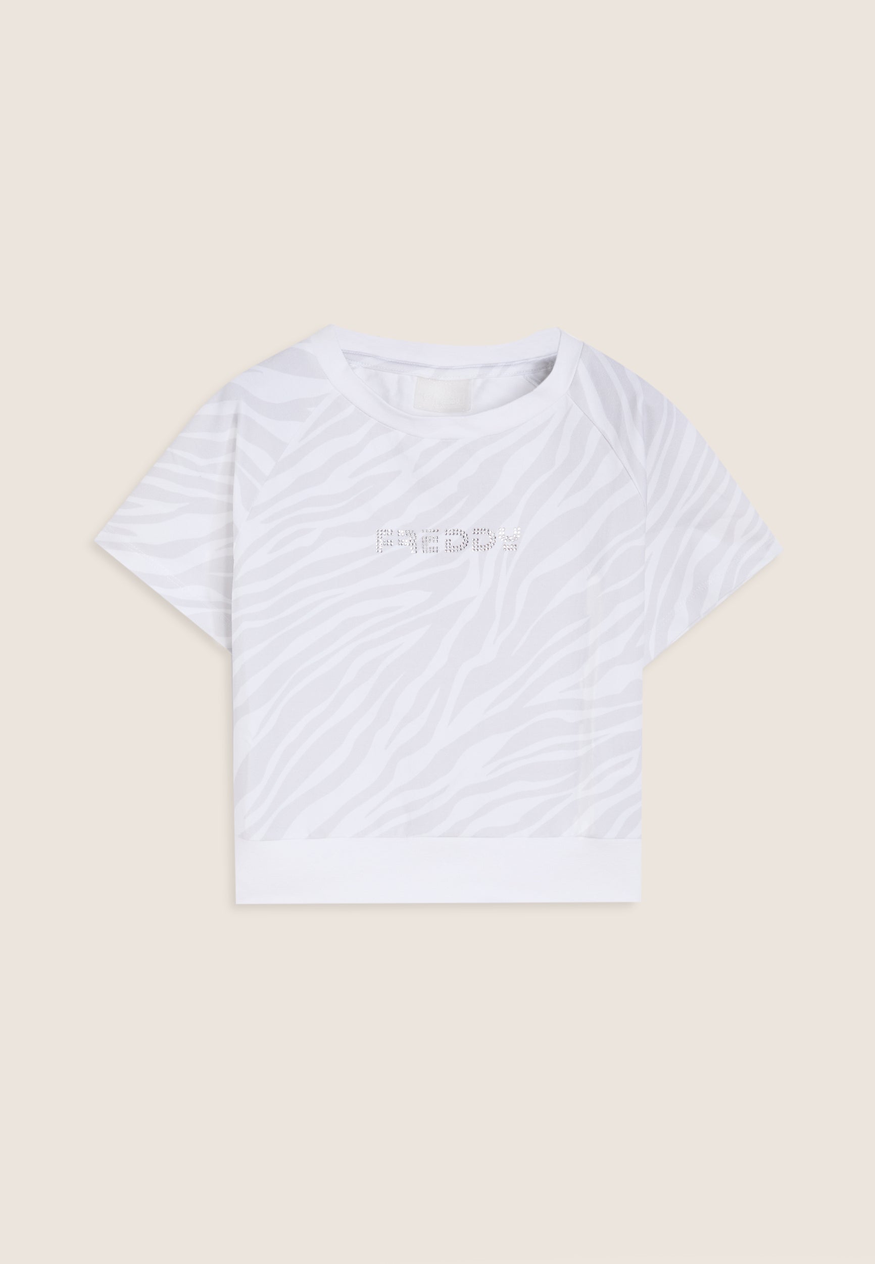 Originale e femminile, questa t-shirt da bambina in cotone elasticizzato si distingue per la fantasia zebrata tono su tono che dona movimento e personalità al look. Il design presenta maniche raglan ad aletta, scollo girocollo e una fascia sul fondo che aggiunge un tocco contemporaneo e garantisce una vestibilità stabile. A illuminare il capo, il logo FREDDY composto da strass applicato al centro, per un dettaglio brillante e curato nei minimi particolari.