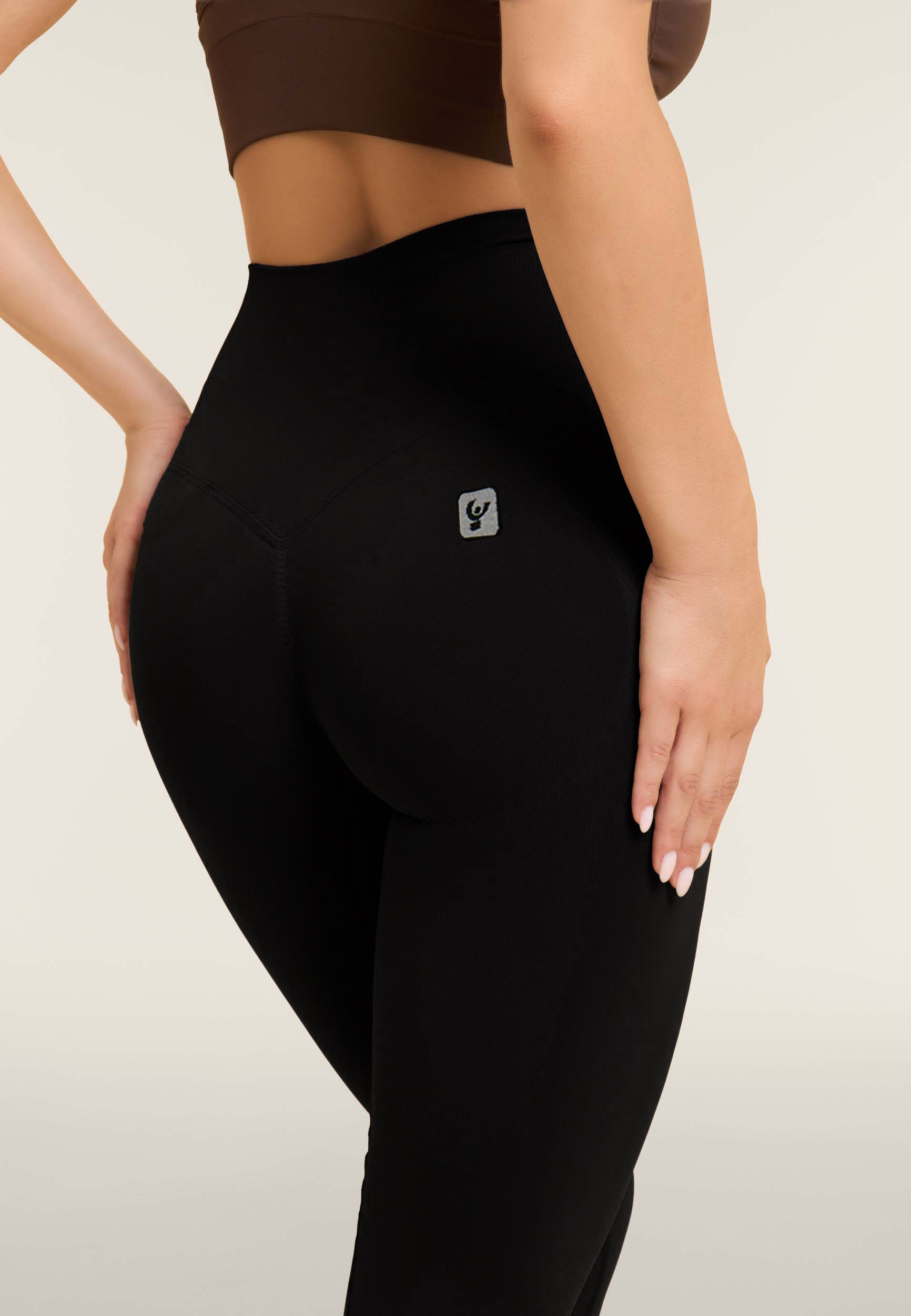 Estos leggings con corte 7/8 y pernera ajustada combinan rendimiento y estilo. El tejido técnico de punto de nailon transpirable garantiza ligereza y libertad de movimiento. La tira alta de canalé y las costuras en forma de corazón en los glúteos completan un look que esculpe y sigue las líneas del cuerpo.