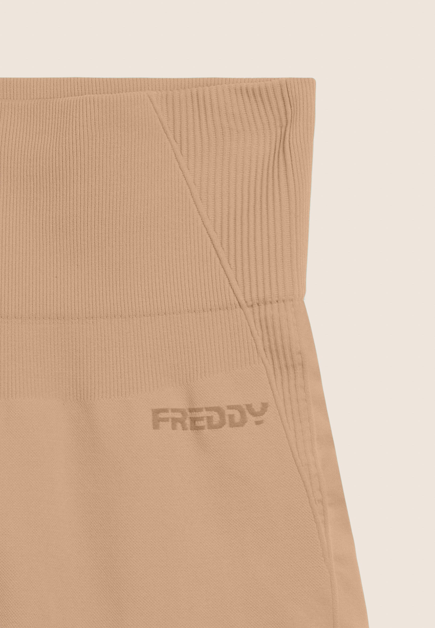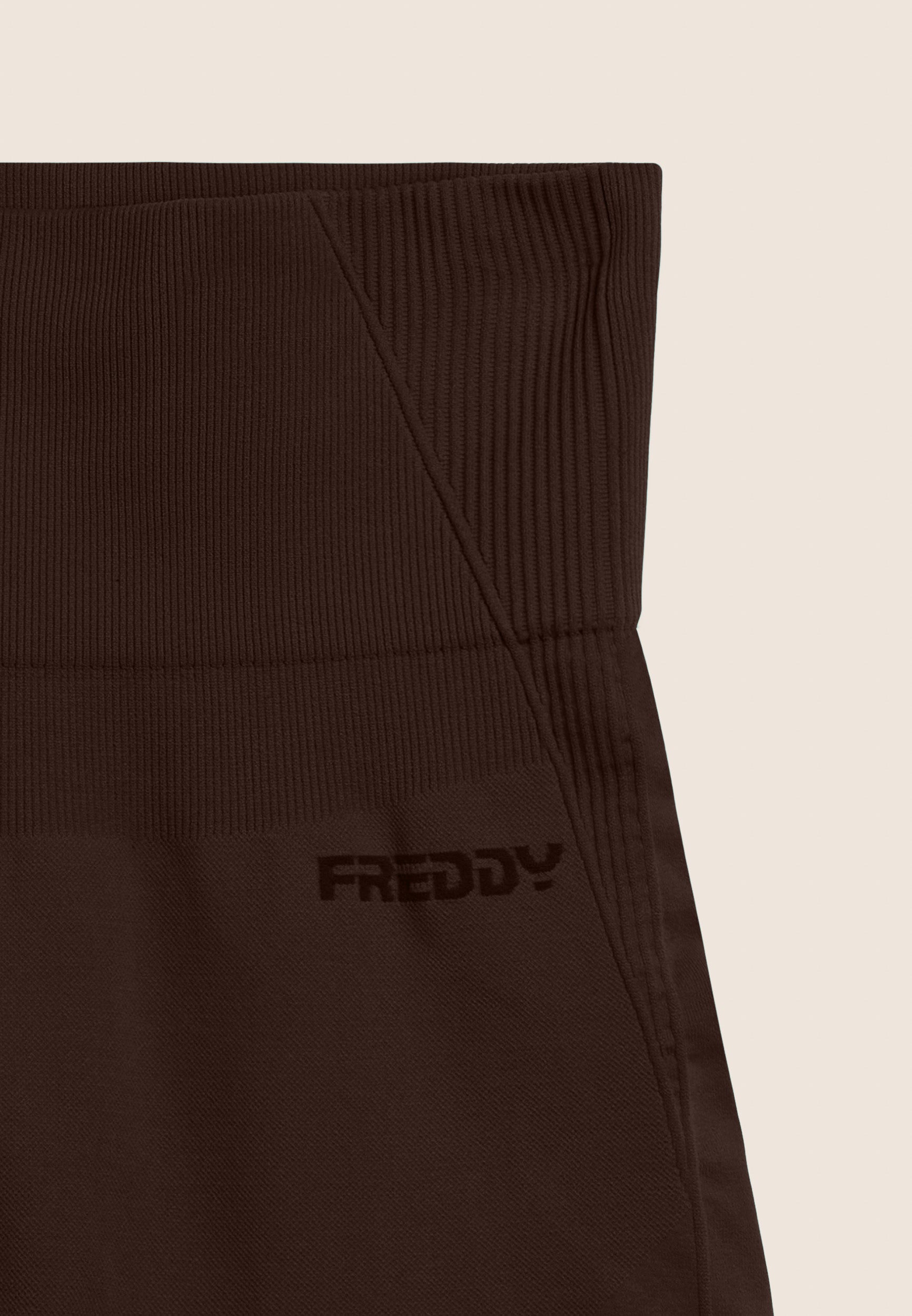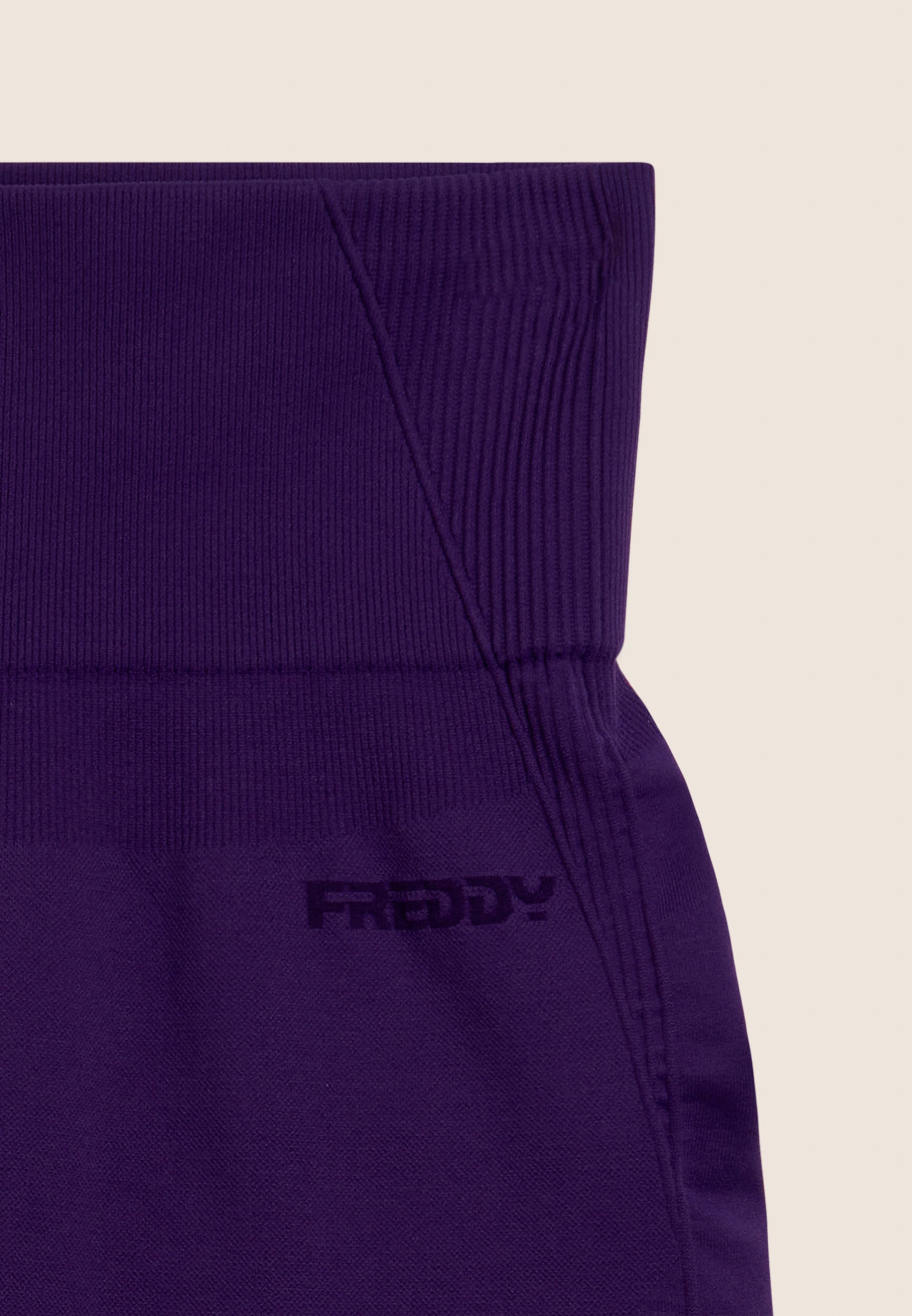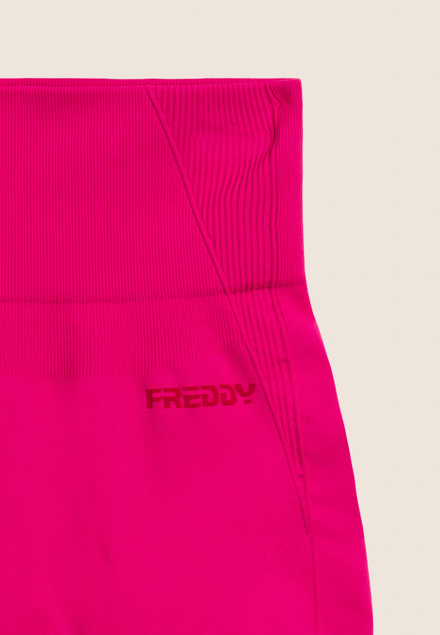 Questi leggings corti seamless sono pensati per un perfetto fit aderente durante l'attività sportiva. La vita alta con fascia in costina offre supporto e comfort, mentre gli inserti in costina sul retro modellano e sostengono delicatamente le curve femminili. Il logo FREDDY sul fianco anteriore e l'iconico "omino" sul fianco posteriore completano il design sportivo e dinamico. Un capo ideale per chi cerca stile e funzionalità durante lo sport.