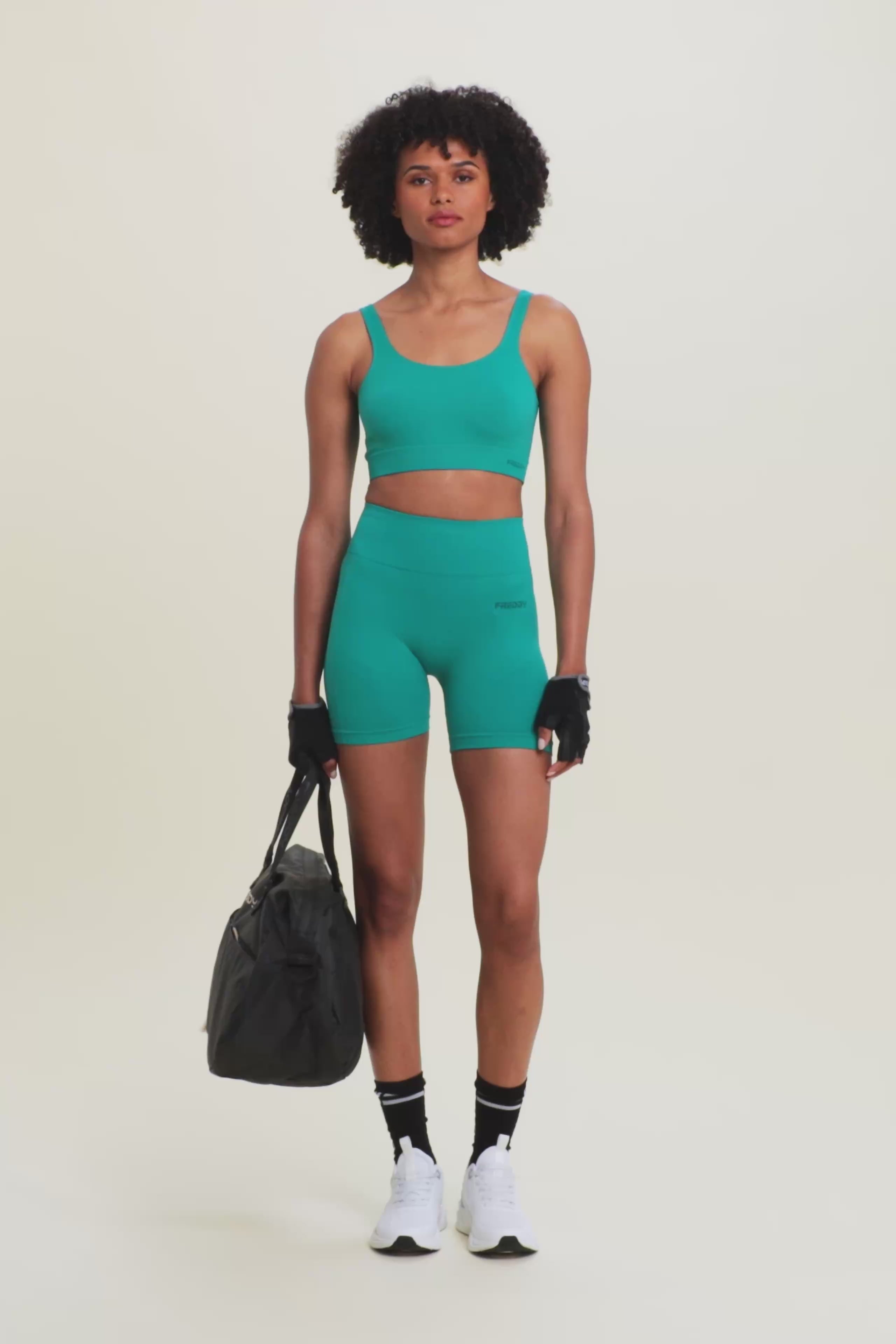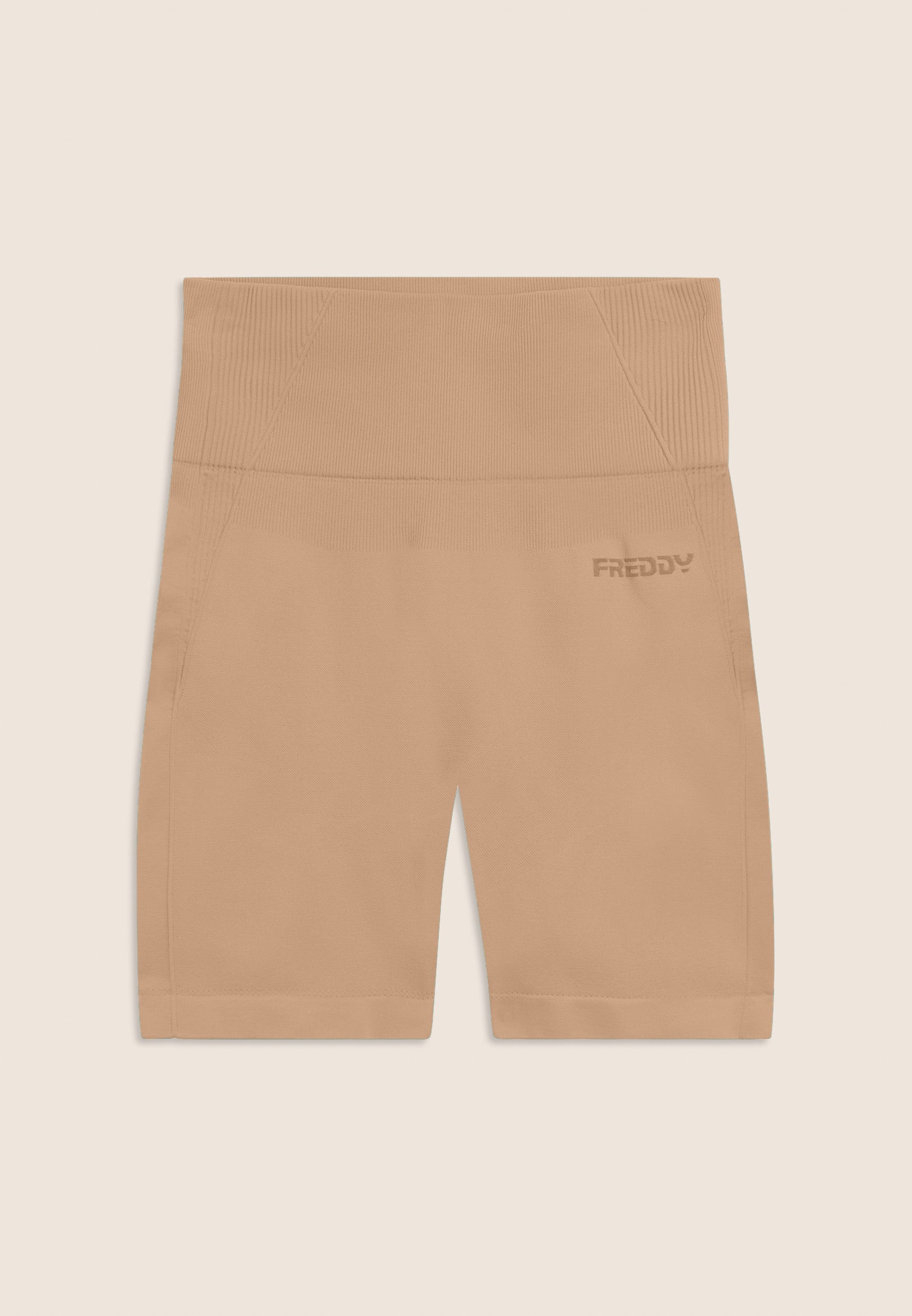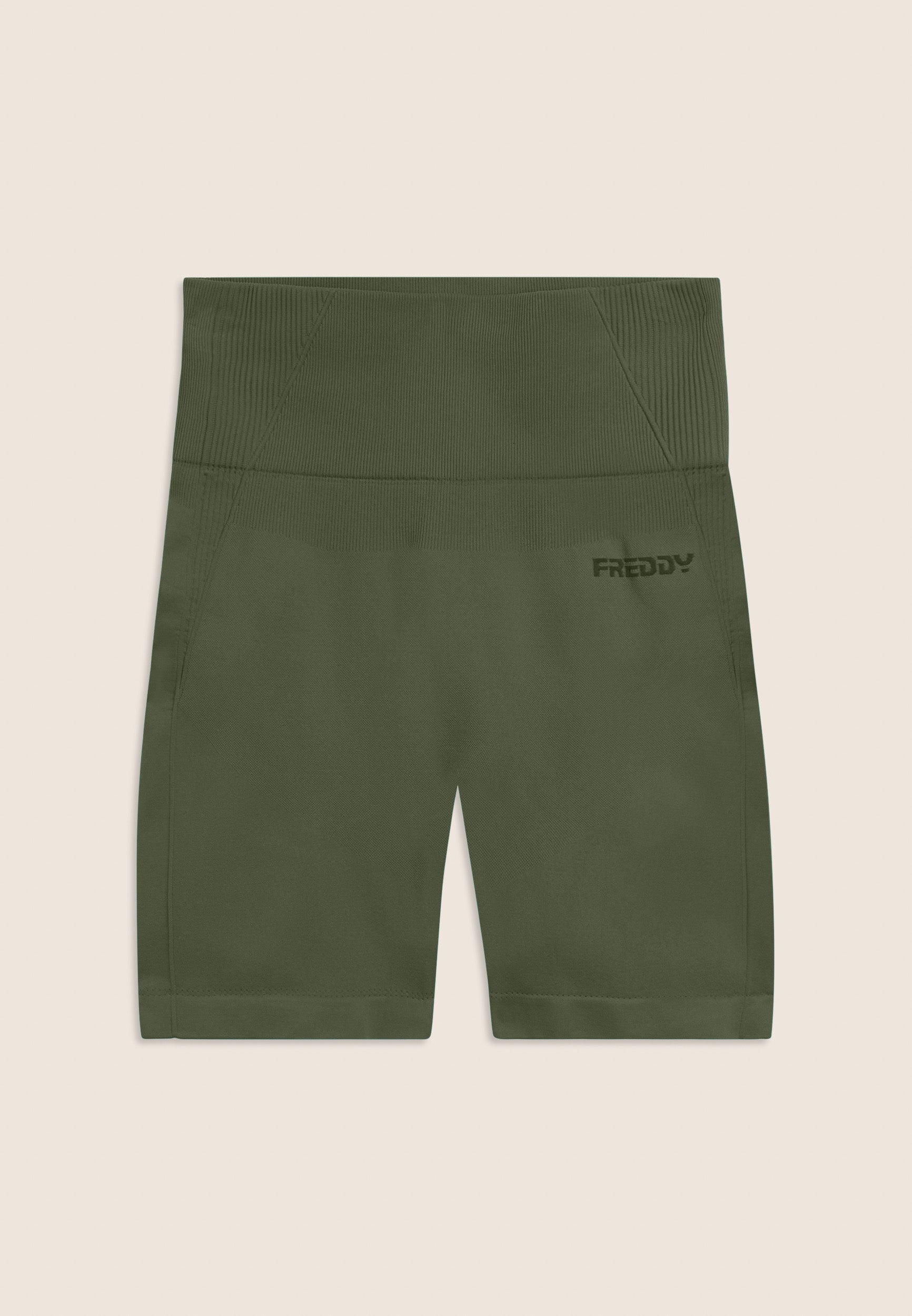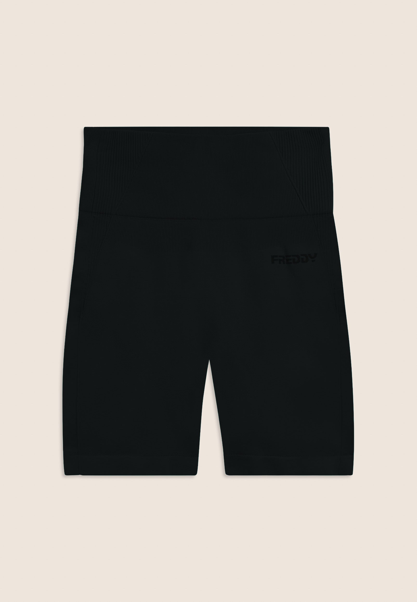 Questi leggings corti seamless sono pensati per un perfetto fit aderente durante l'attività sportiva. La vita alta con fascia in costina offre supporto e comfort, mentre gli inserti in costina sul retro modellano e sostengono delicatamente le curve femminili. Il logo FREDDY sul fianco anteriore e l'iconico "omino" sul fianco posteriore completano il design sportivo e dinamico. Un capo ideale per chi cerca stile e funzionalità durante lo sport.