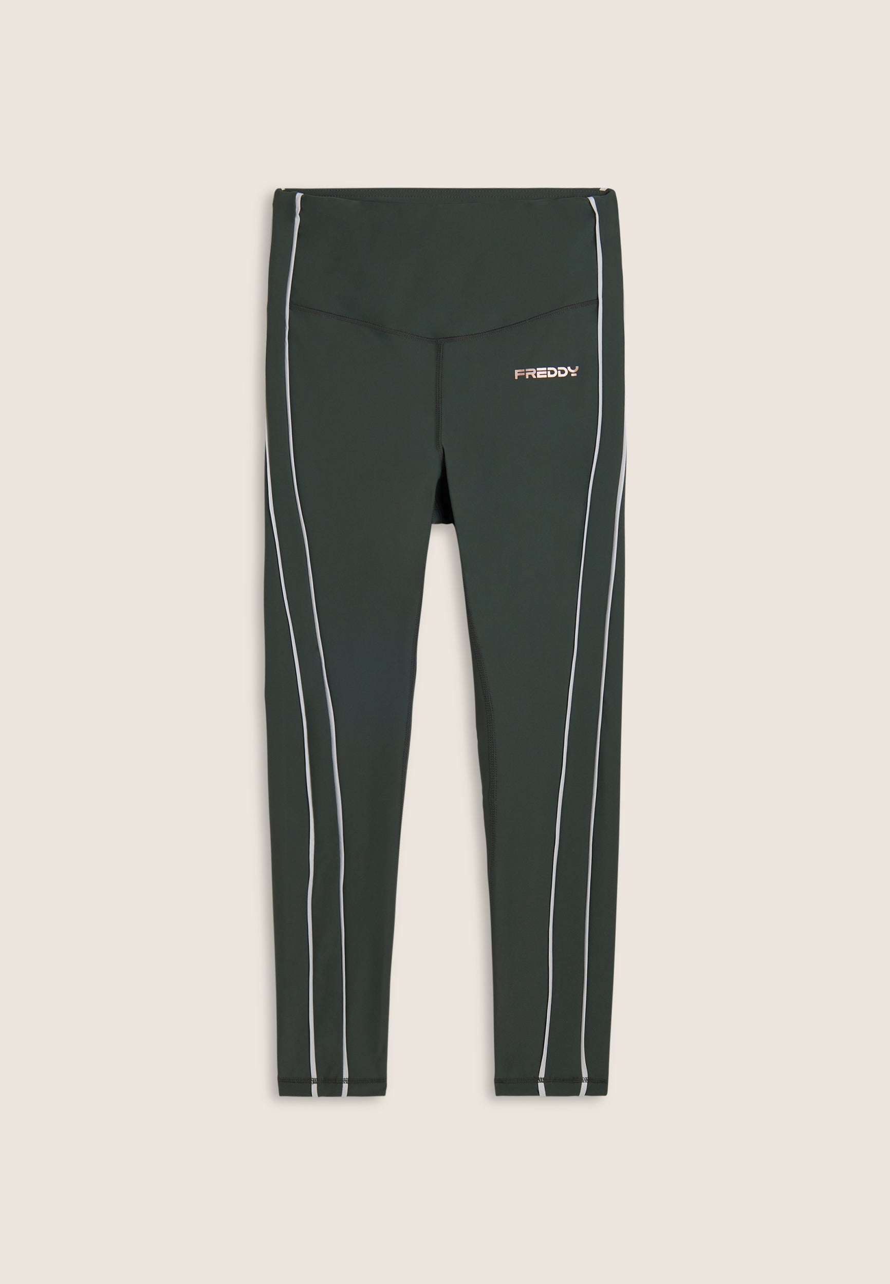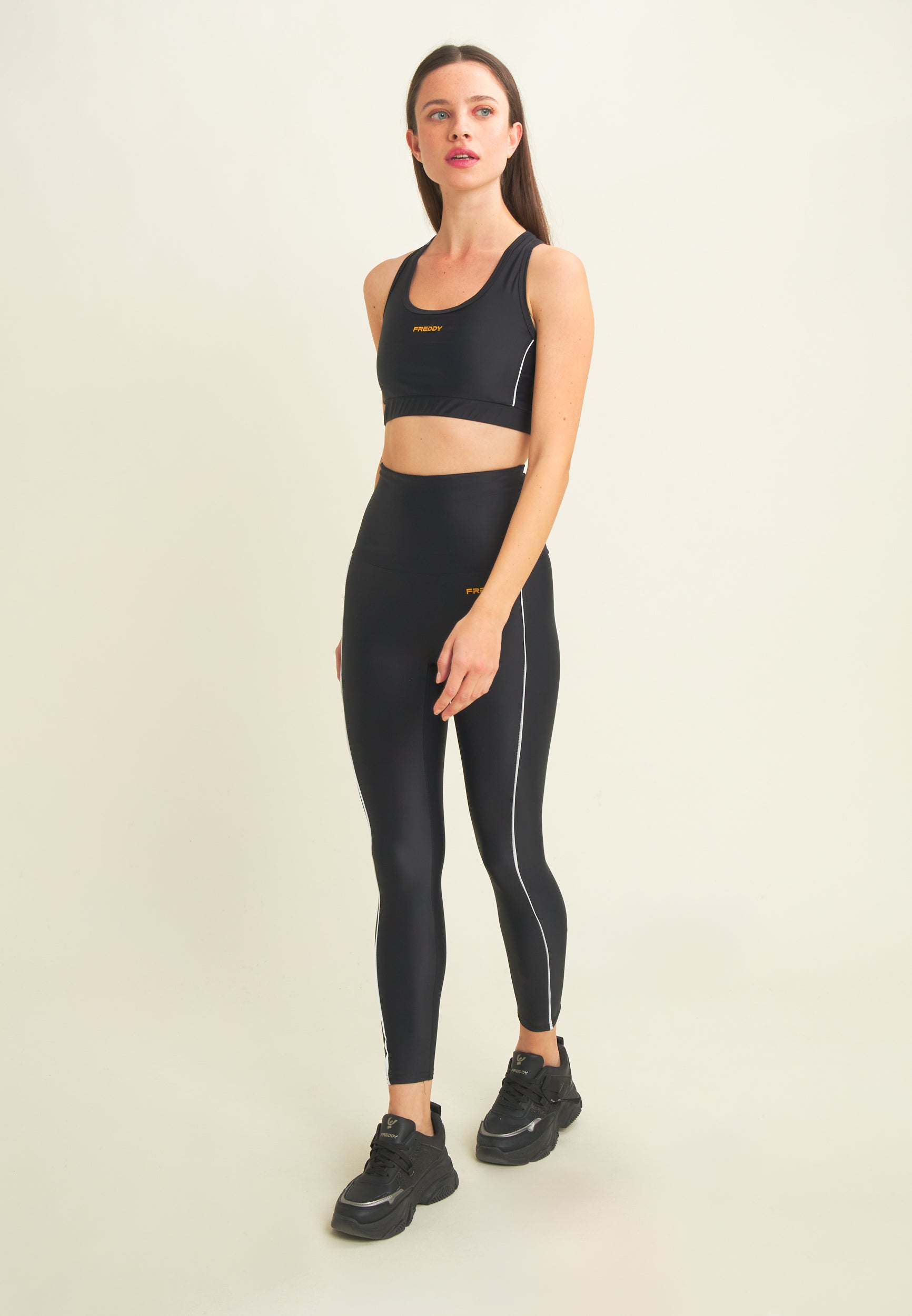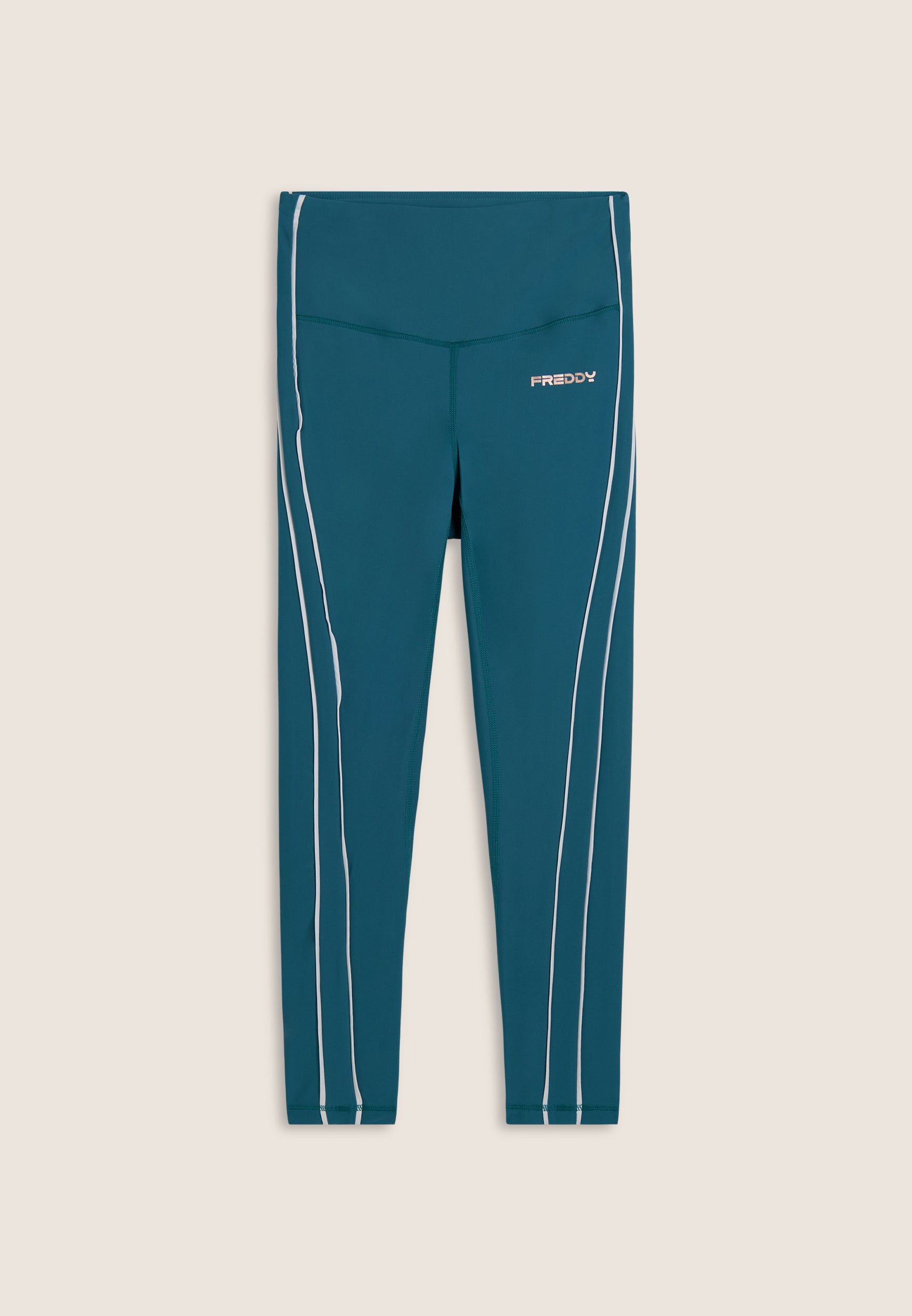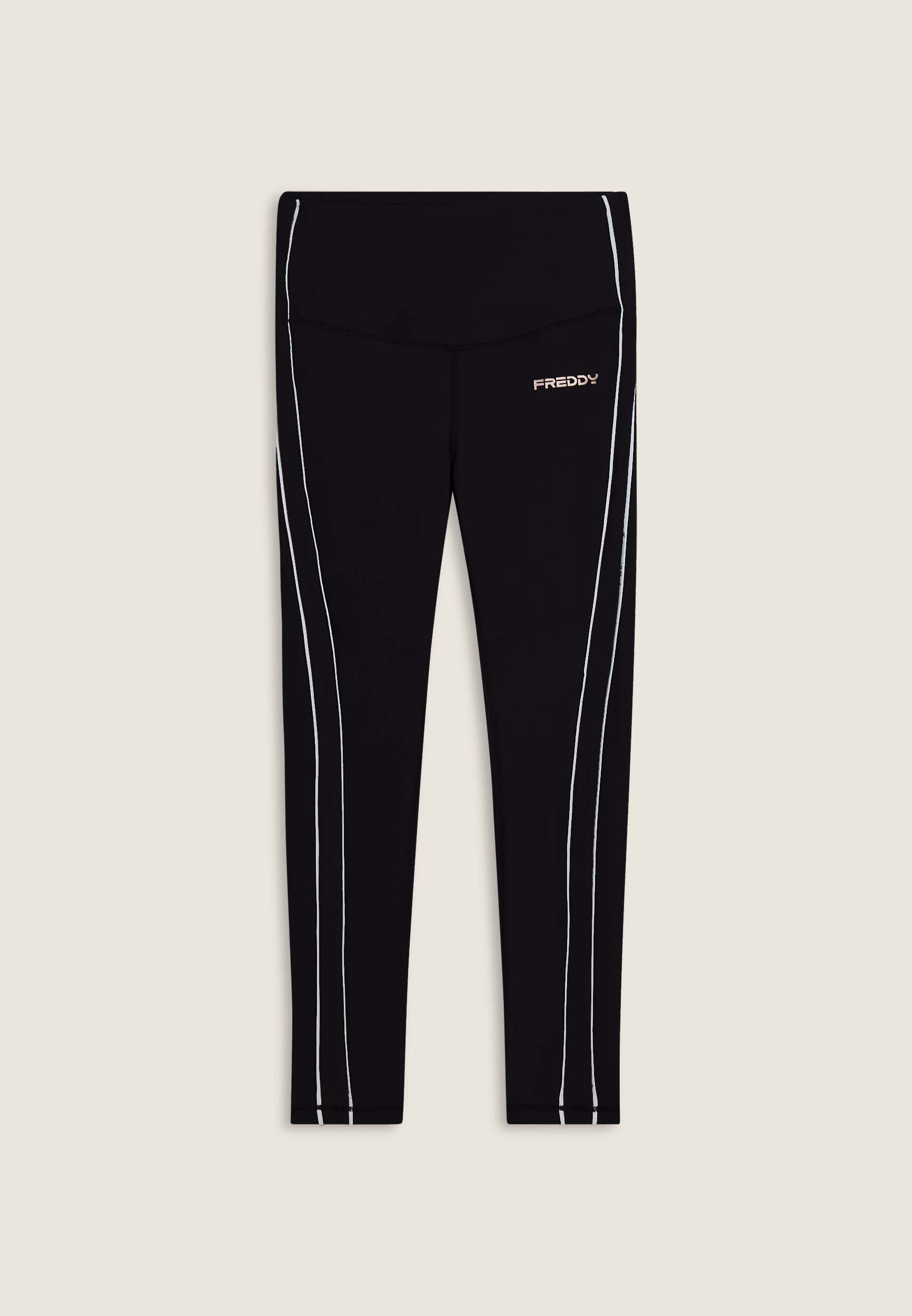Leggings ajustados con largo 7/8 y cintura muy alta para un ajuste ceñido y cómodo. El tejido técnico de punto de nailon garantiza transpirabilidad y ligereza, mientras que los ribetes blancos a contraste estilizan la pernera. El bolsillo lateral externo es perfecto para llevar el móvil o pequeños objetos.