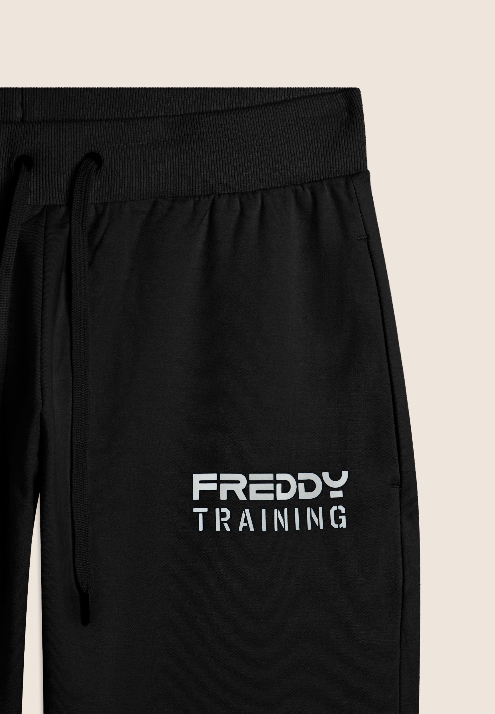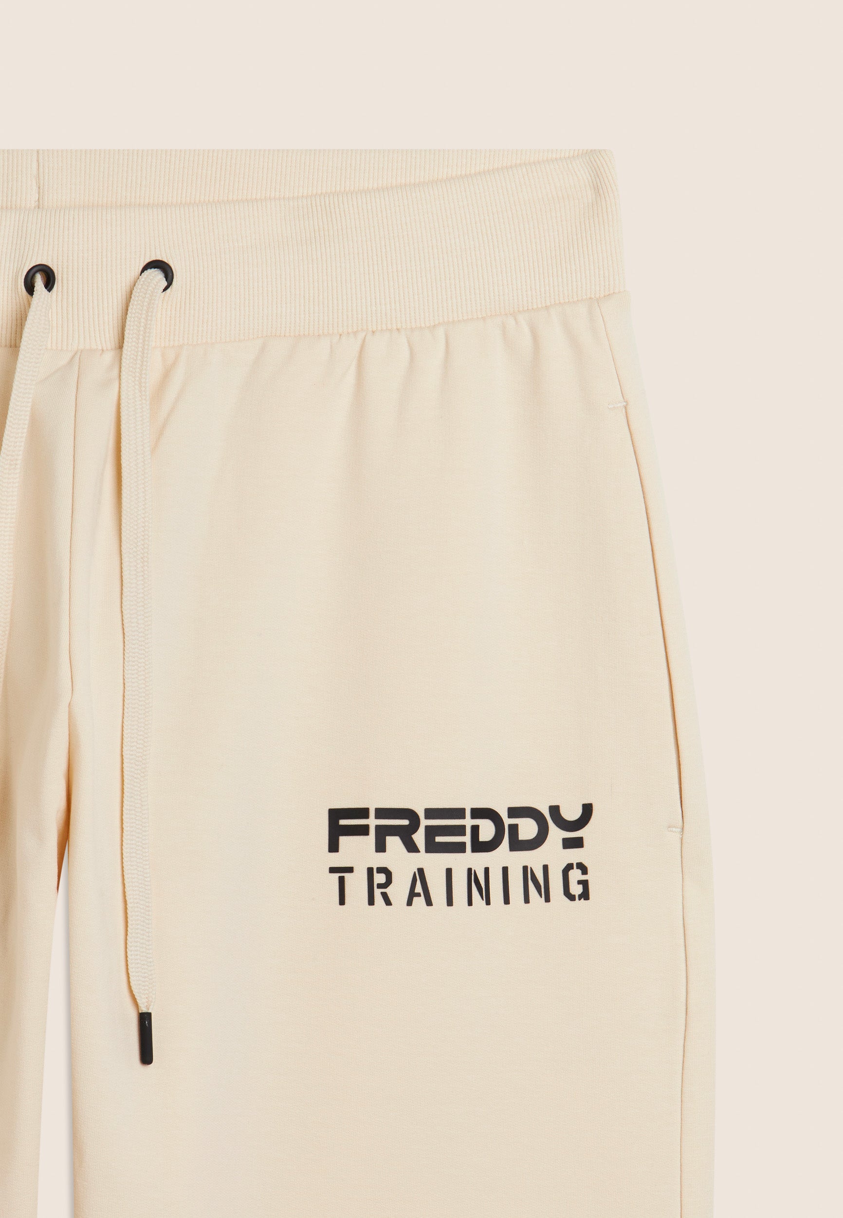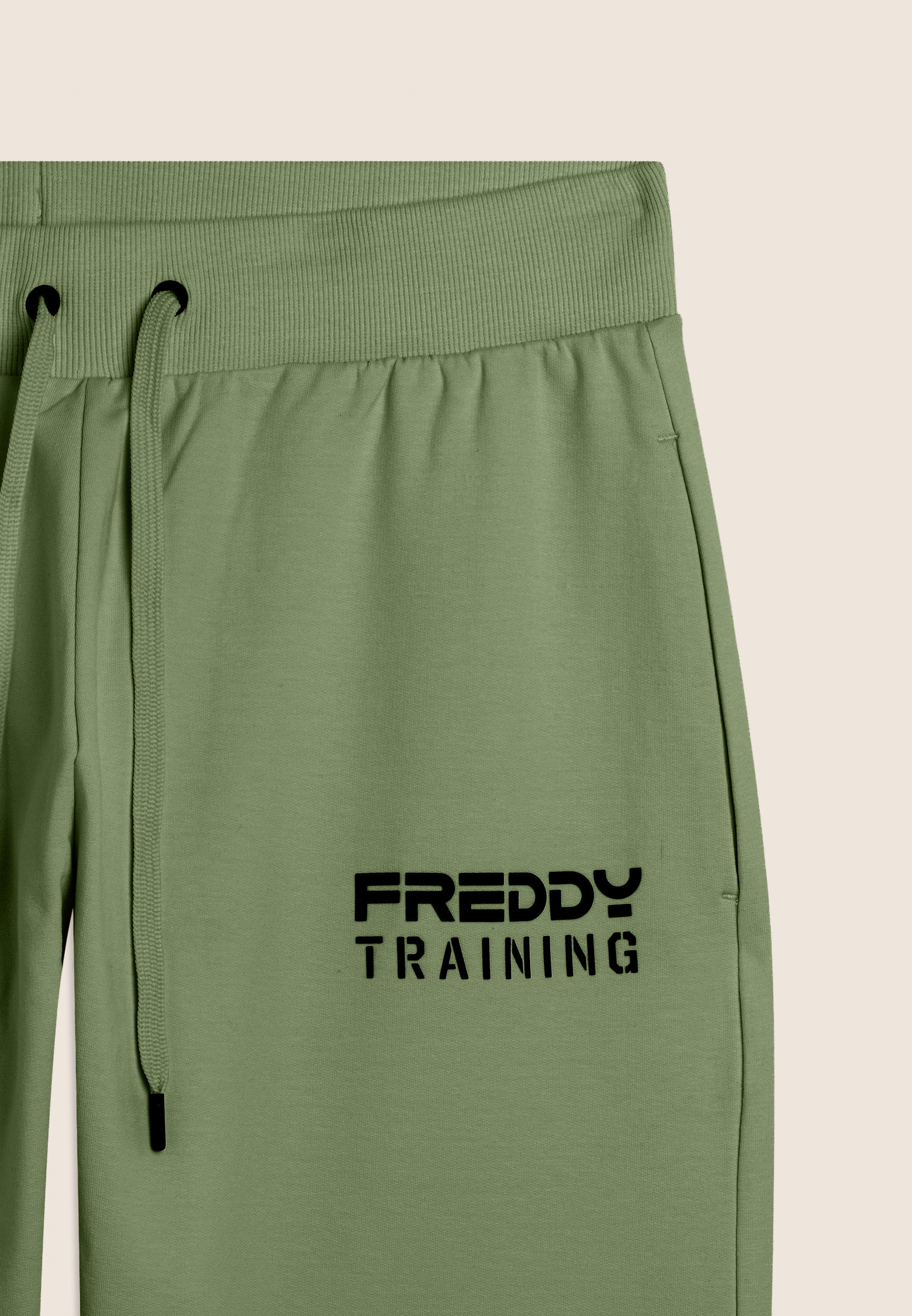 Pantalón deportivo de corte ceñido y largo recortado, ideal para entrenar o para días activos. La cintura regular de canalé está dotada de cordón para un ajuste regulable. La pernera ceñida termina con un bajo recto en la parte delantera y una inserción acanalada en la parte posterior, un detalle técnico que combina estilo y funcionalidad. El estampado «FREDDY TRAINING» en relieve en el lado izquierdo confiere personalidad a la prenda. Completan el diseño los bolsillos delanteros interiores y el bolsillo posterior con cremallera. Confeccionado en felpa francesa ligera para el máximo confort.